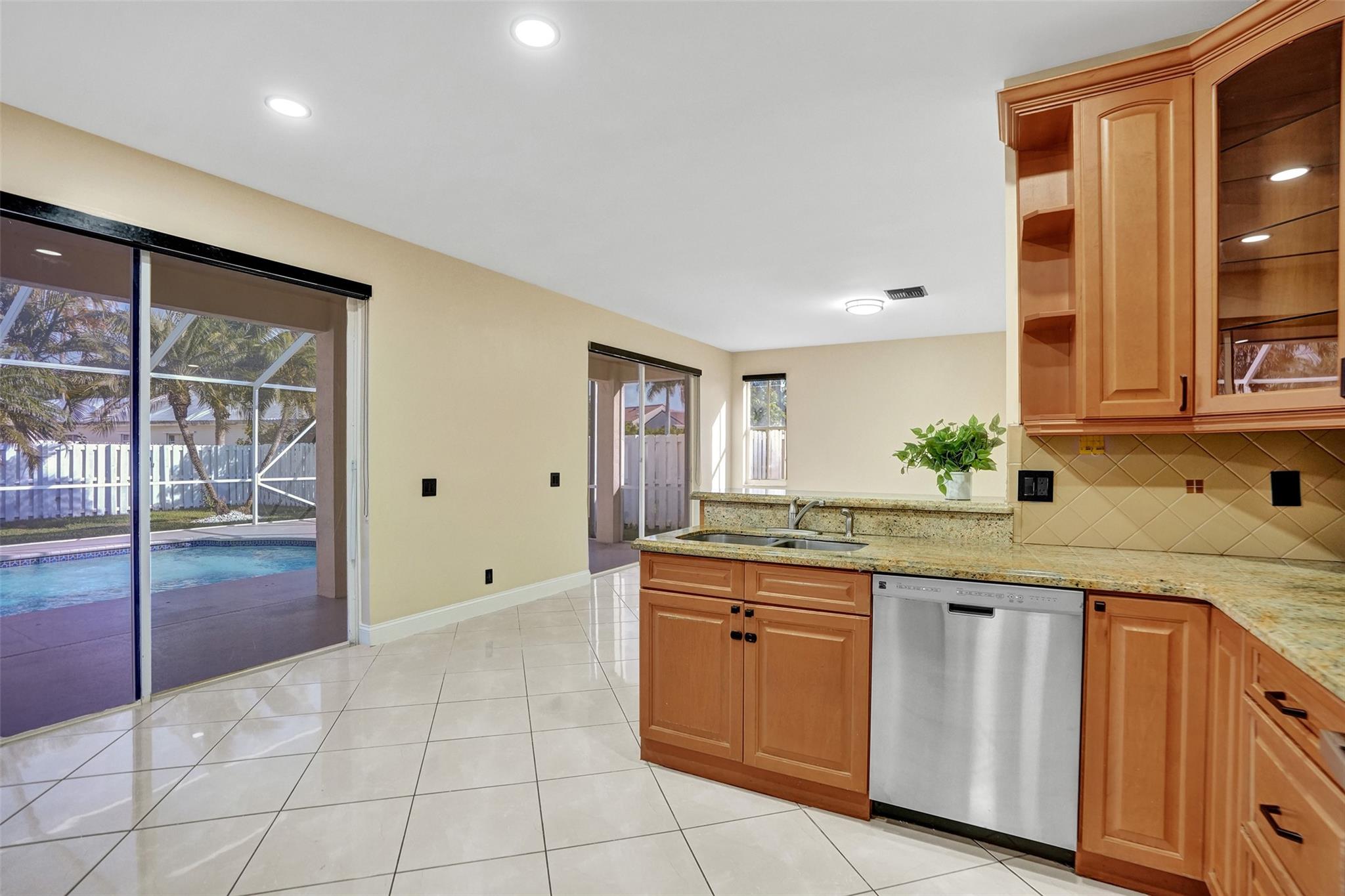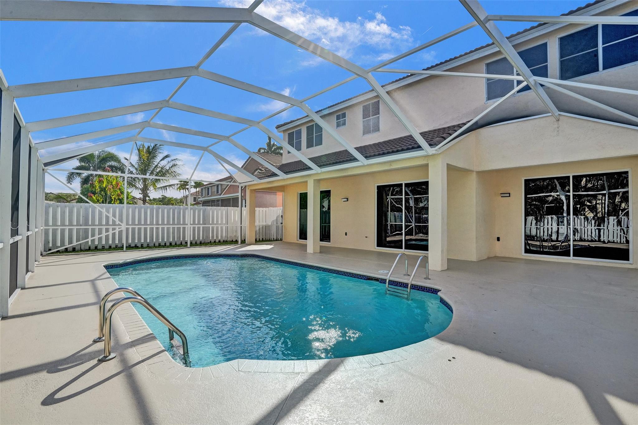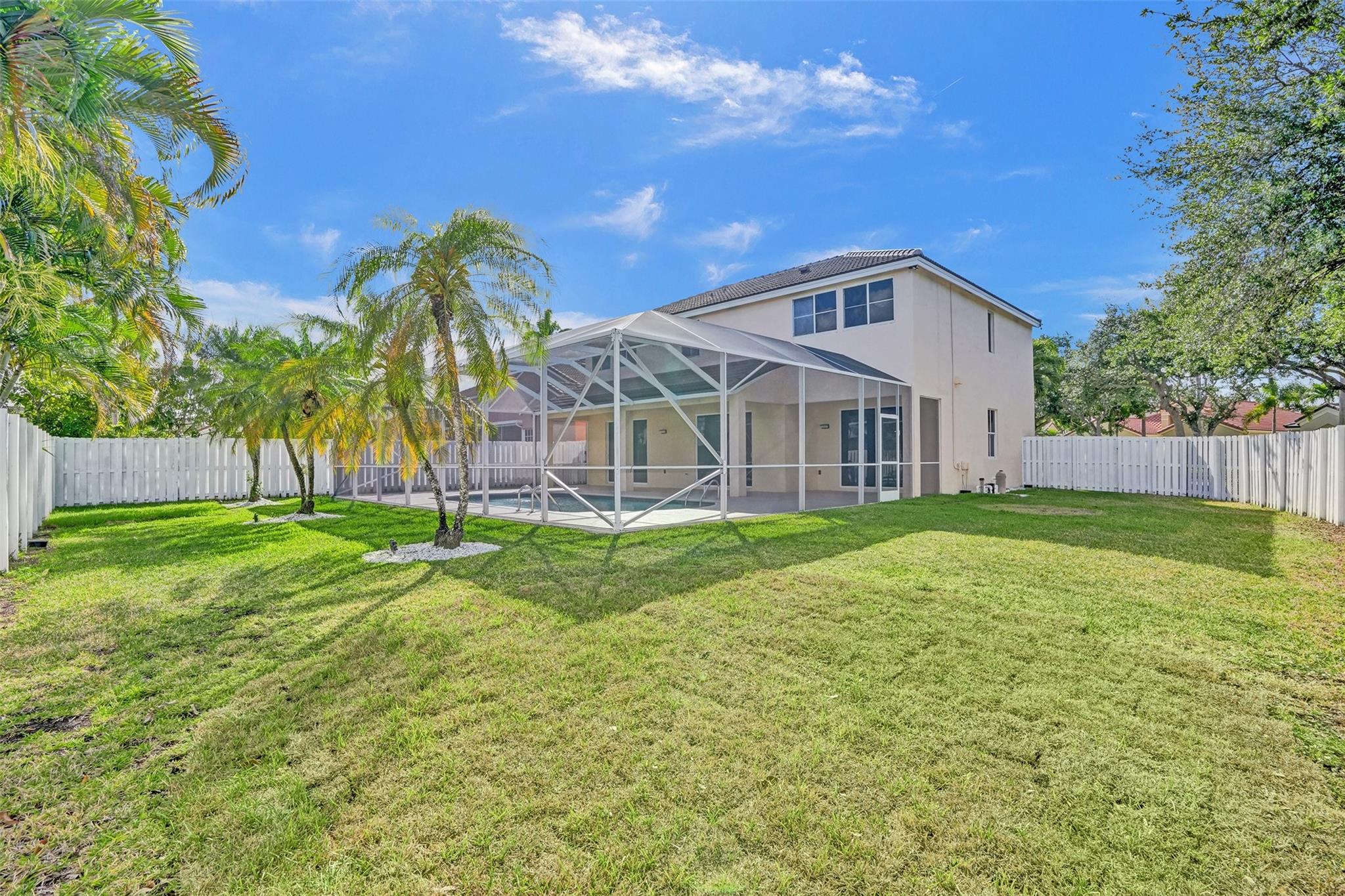 Beautiful Weston 5 bedroom / 3 full bathroom salt water pool home in the exclusive gated community of 'The Falls'. 2022 S-tile roof! First floor den can be converted to 5th bedroom. Primary Bedroom has 2 walk-in closets, ensuite bathroom with dual sinks, a separate shower and Roman size Jacuzzi tub. Brick paver walkway leads to your double door entry. Dramatic volume living ceilings make this home feel extra spacious. Large eat-in kitchen with plenty of cabinets and pantry, granite counters, and stainless appliances. Huge private fenced backyard great for a play area and pets. Fully screened pool with safety fence and covered patio. Walking distance to Eagle Point Elementary and Tequesta Trace Middle schools. Zoned for Cypress Bay High. Great schools and a neighborhood to raise a family!