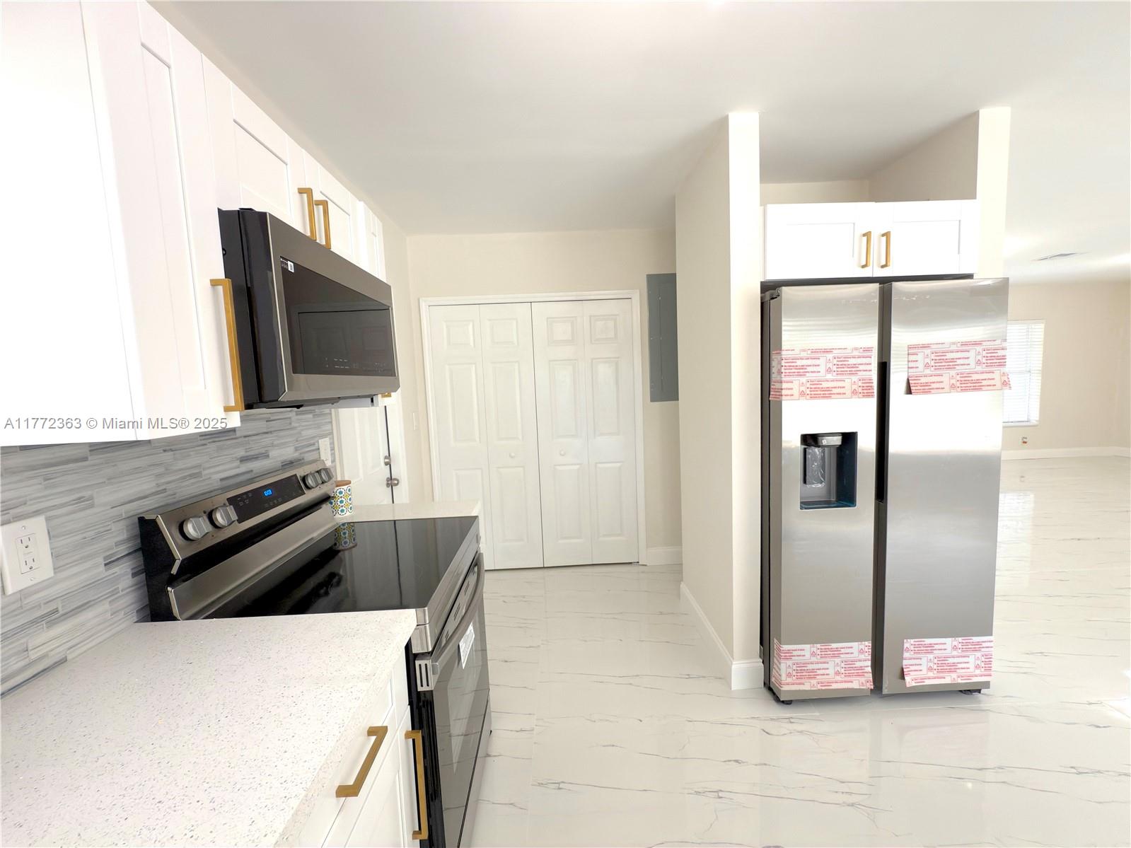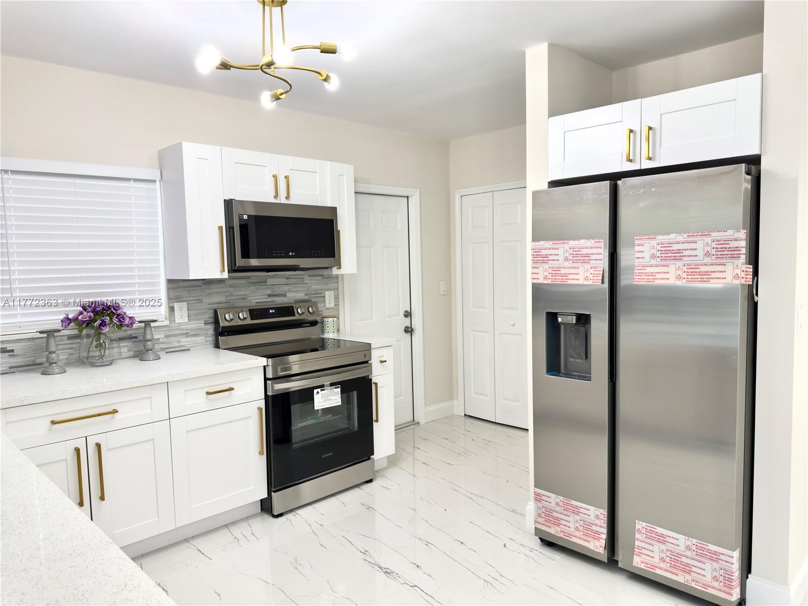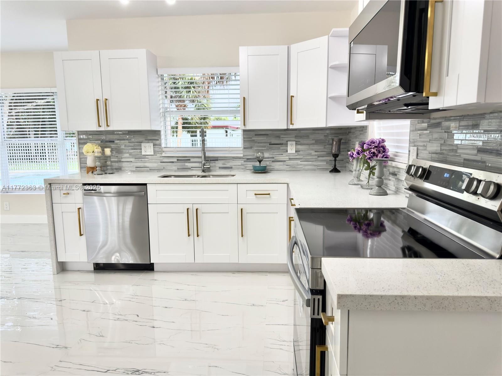This unique GEM is in a league of its own in heart of Melrose Park. Luminous elegant one story pool home with 4 bedroom and 2 bathroom. The house featured with New roof with permit.Full interior remodeling, New flooring & new kitchen with hardwood cabinet on quartz countertop and new SS appliances.New A/C and A/C duct entire the house.New water heater.New interior Elec. panel with New wiring entire the house.New smoke detectors. New water pipe entire the house and sewer pipe connected to city sewer.New ceiling insulation entire the house.New interior and exterior doors.New blinds and baseboard. New electrical and Plumbing fixtures. Interior and exterior new paint.New sprinkler piping and equipment.New Stucco. New sod and landscaping.New driveway asphalt.