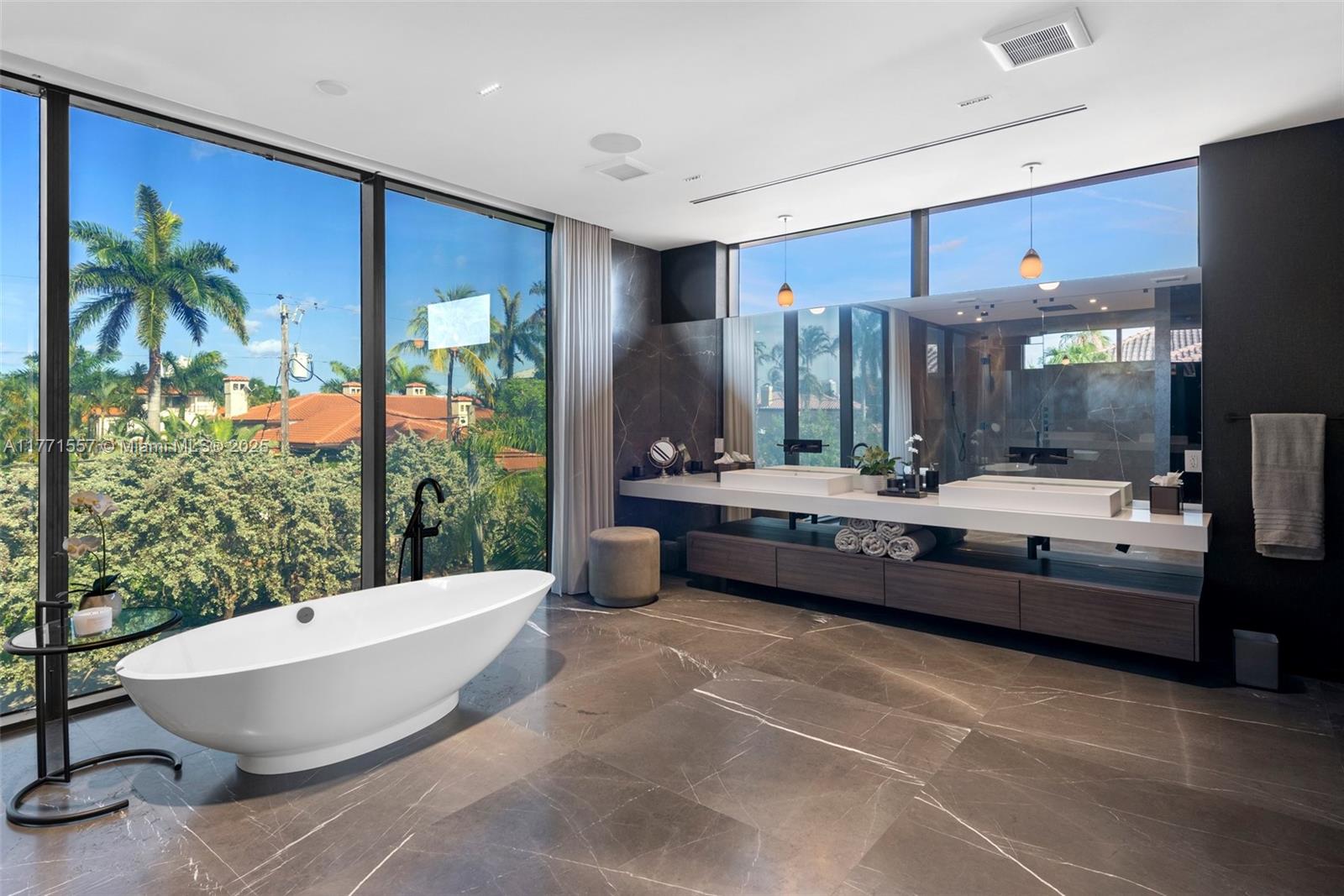 Masterfully crafted, this modern waterfront estate in Las Olas Isles showcases elegant architectural design. Offering 5 beds & 6.5 baths, this private oasis with dramatic soaring ceilings spans 6,619 SF of luxurious living space w/ 100’ on the water. Natural light pours through floor-to-ceiling windows & sliding glass doors creating a bright & airy living area, wet bar, & chef’s kitchen with pro-grade appliances and large pantry. This contemporary estate is made for entertaining w/ an expansive covered outdoor dining & living area, summer kitchen, heated saltwater pool, sauna, and private dock. The oversized primary suite features a spa bath, custom closets, & panoramic water views. Highlights include full home generators, elevator, Savant smart home, 3 car garage w/ 2 lifts & EV chargers.