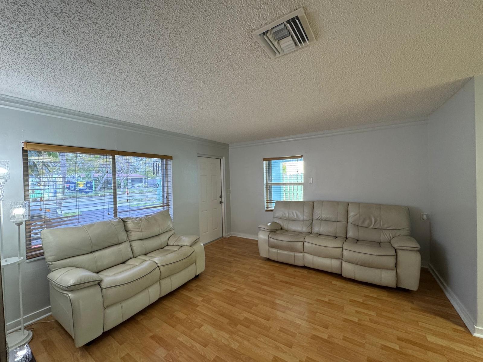 2 beds 2 baths plus a Florida room with extra closet that can be your 3rd bed. Newer contemporary kitchen wood cabinets with granite countertops & newer SS appliances. Tile floors in kitchen, baths and bedrooms. Laminate wood floors in living areas. New air conditioning & ducts installed in 2024. New Roof installed 12/21 baths remodeled about 3 years ago. Fenced back yard with large patio, several fruit trees. Circle driveway & carport that fit up to 5 cars. The house comes with hurricane shutters. New water heater. Crown molding. Linen closet in the hallway & inside laundry room. Updated electrical panel. French doors to the Florida room. Access to the patio by the laundry room and the Florida room. Great location on a quiet avenue, close to shopping, gym, restaurants and coffee shops.
