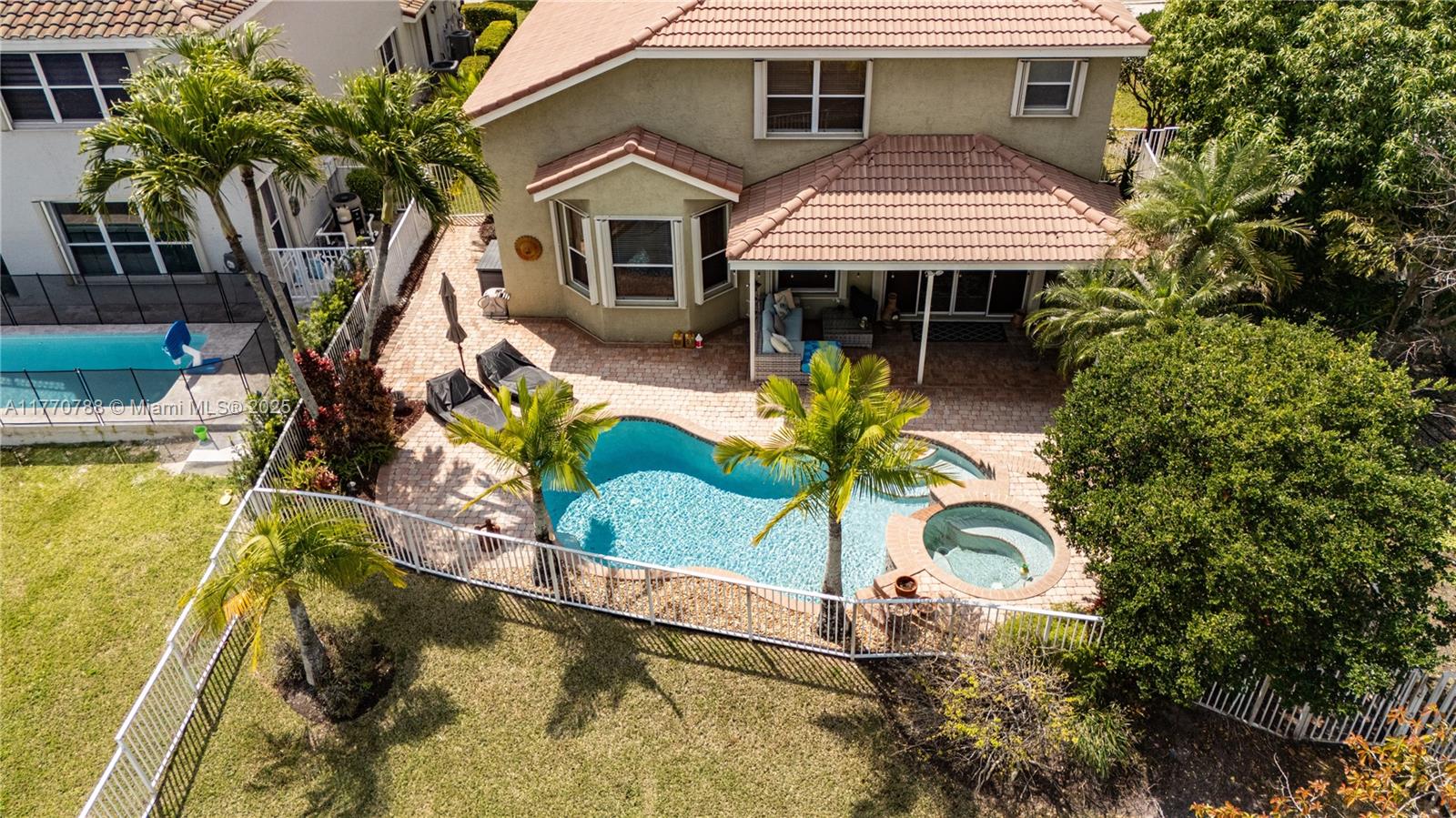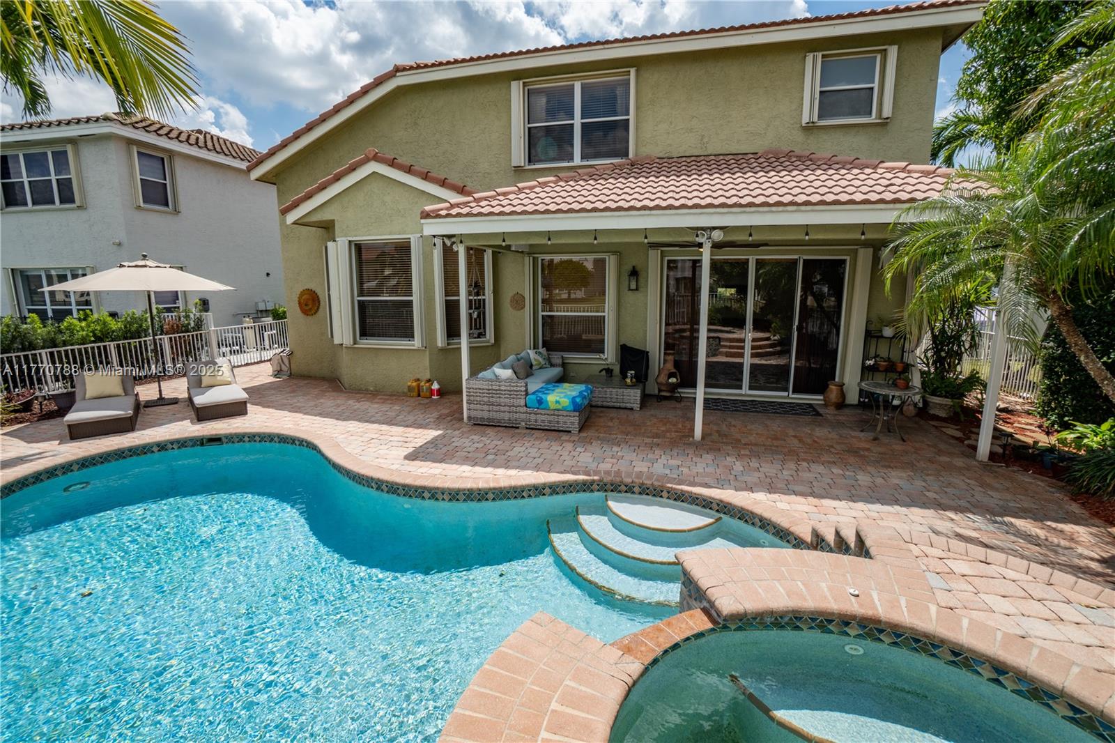 Stunning two-story home in the desired Silver Isles community offers spacious living area with plenty of natural light. Enjoy a unique multi-level layout featuring a convenient downstairs bedroom and full bath. The primary suite has walk-in closets and a split main bathroom with two toilets, two vanities, a soaking tub, and a shared shower. The kitchen offers stainless steel appliances and granite countertops. Enjoy a view of the pool and the lake from the breakfast area. Step outside to a sparkling pool, jacuzzi, and tranquil waterfront views. With a 300A electrical panel, accordion shutters, and a 2-car garage, this home is both stylish and practical. The community has a pool, gym, and playgrounds. Close to hospital, highways and shopping. Don't miss this amazing opportunity!
