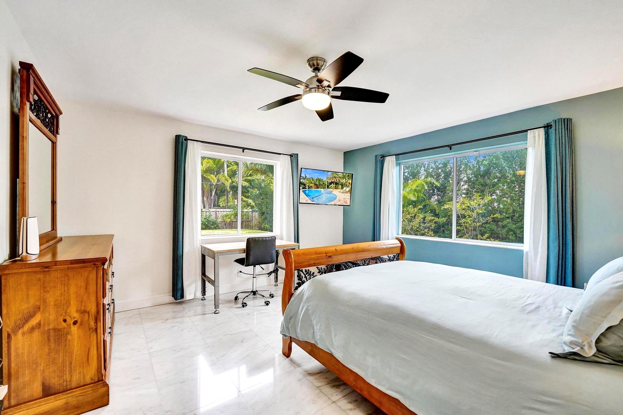 Live half a mile from Hollywood Beach and the Broadwalk! This beautiful 4 bed/3 bath pool home in Hollywood Lakes is on a quiet block, 2 blocks from South Lake and 1.5 miles to the ArtsPark and Downtown Hollywood. Property has over $400k in upgrades, including total pool/backyard renovation, solar panels w battery for hurricane backup, new AC/ductwork, gated back carport and newer appliances. They also added permitted bedroom, bathroom and laundry room. The private backyard (on a double lot!), features a heated saltwater pool, jacuzzi, toddler pool, outdoor shower and tropical landscaping with palms and fruit trees. Conveniently located 6 miles to FLL airport, 5 miles to Dania Pointe and 9 miles to Downtown Ft Lauderdale.