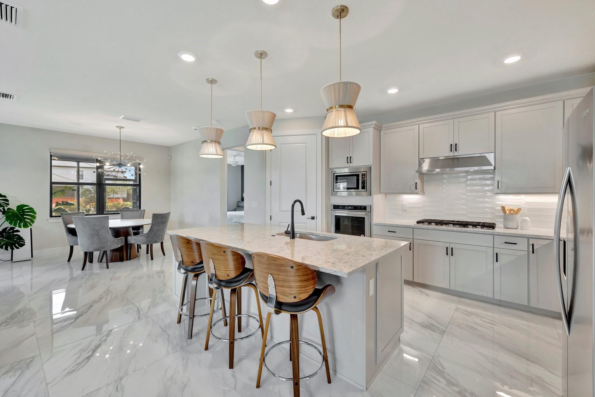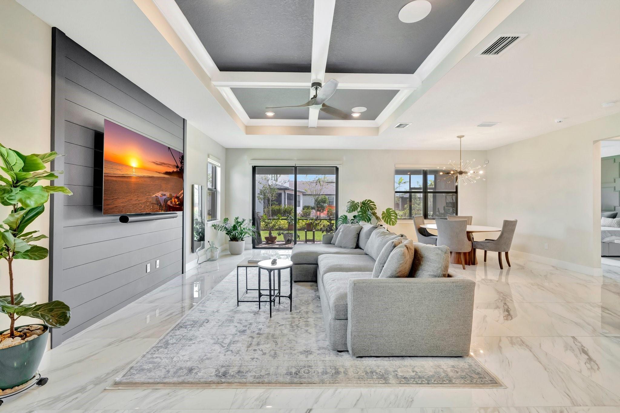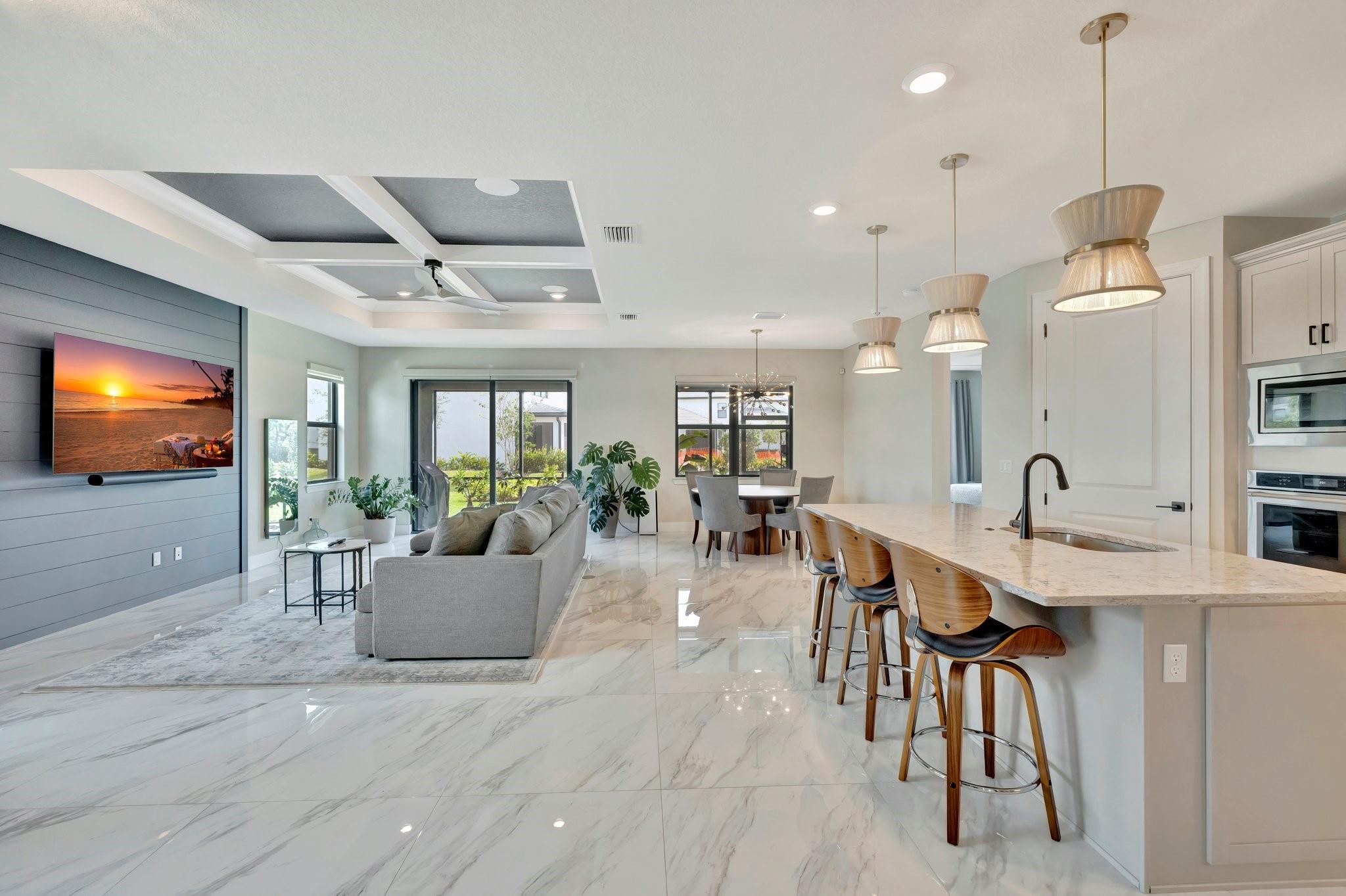 This stunning newer construction offers a perfect blend of modern luxury and functional design. Boasting 3 spacious bedrooms, 2 elegant bathrooms, and an additional den/office space, this residence is ideal for families or professionals. The upgraded flooring throughout the house adds a touch of sophistication and durability. The open-concept living area seamlessly integrates ready state-of-the-art Sonos sound system, wired with zones throughout the house, providing an immersive audio experience for entertainment lovers. The double garage offers ample storage and parking space. Located in a vibrant community with resort-style amenities, you'll enjoy access to a fully-equipped gym, pickleball courts, a cozy fire pit, and more. This home is not just a place to live—it's a lifestyle upgrade.