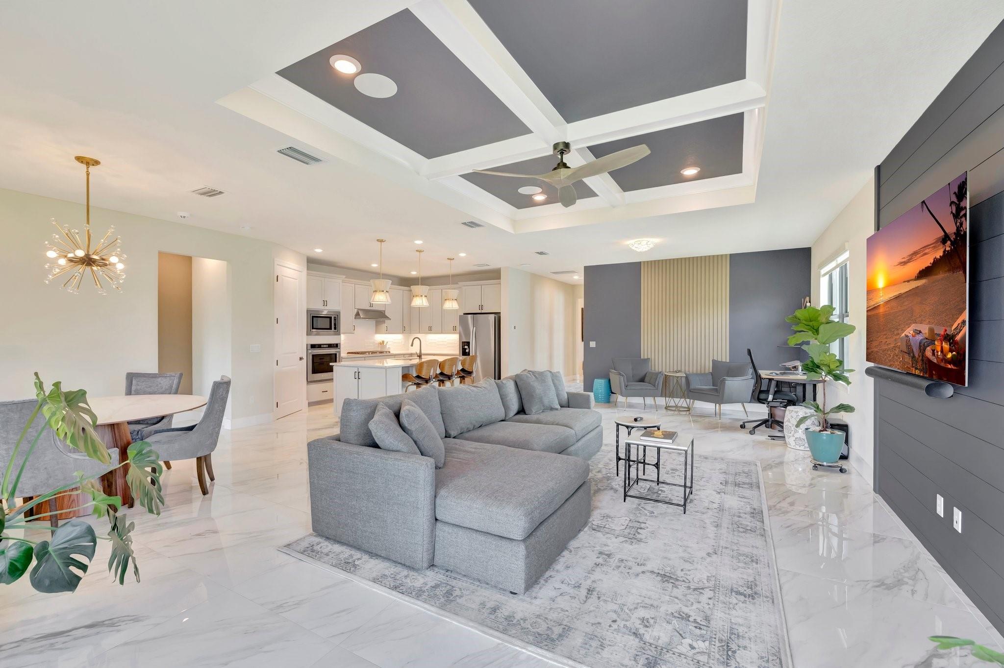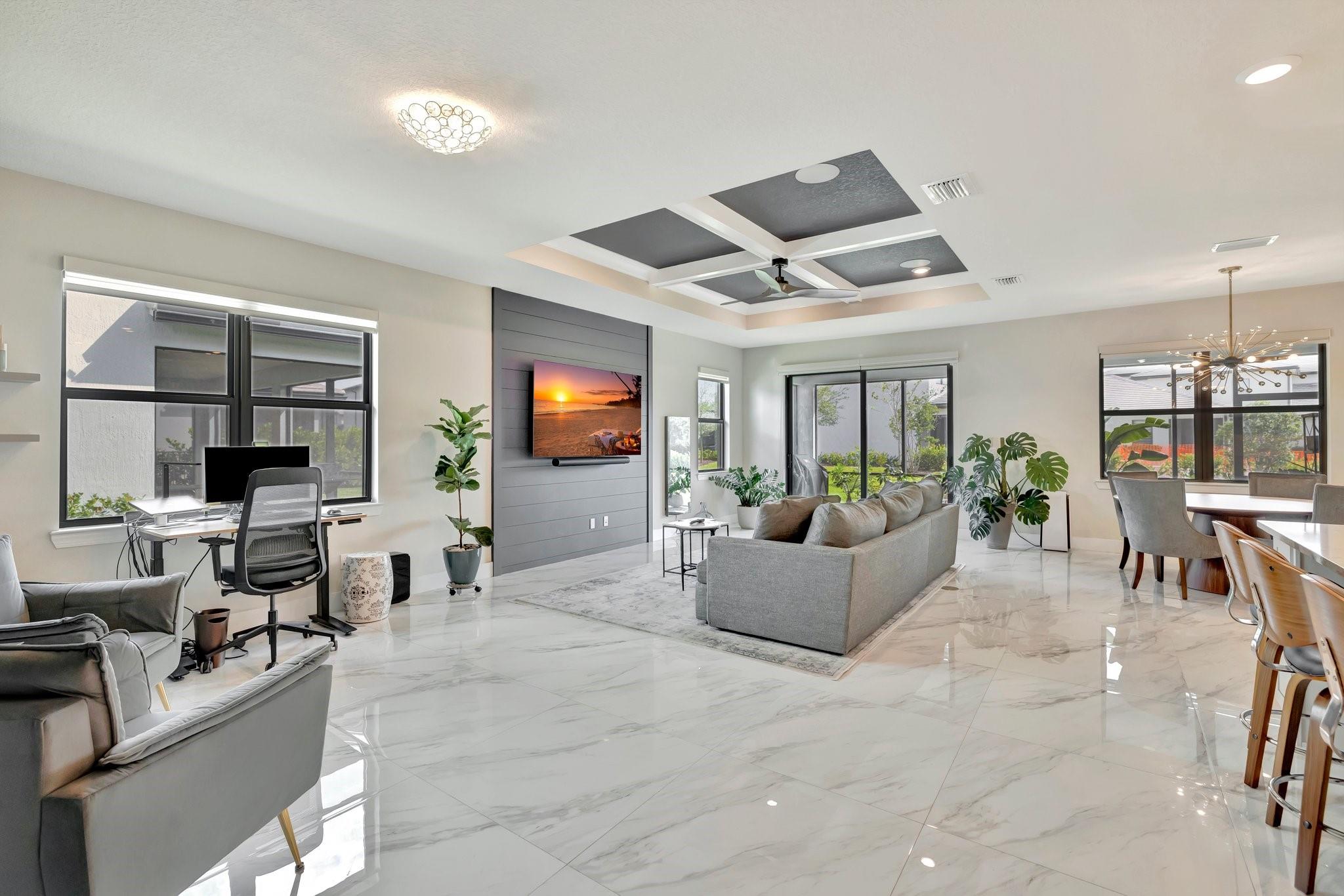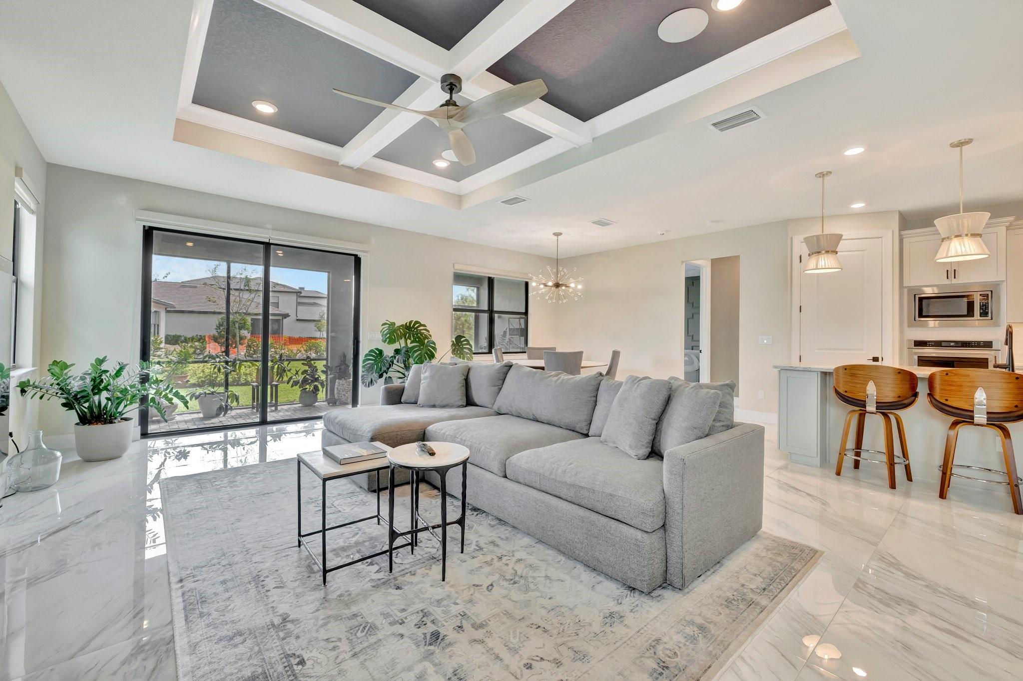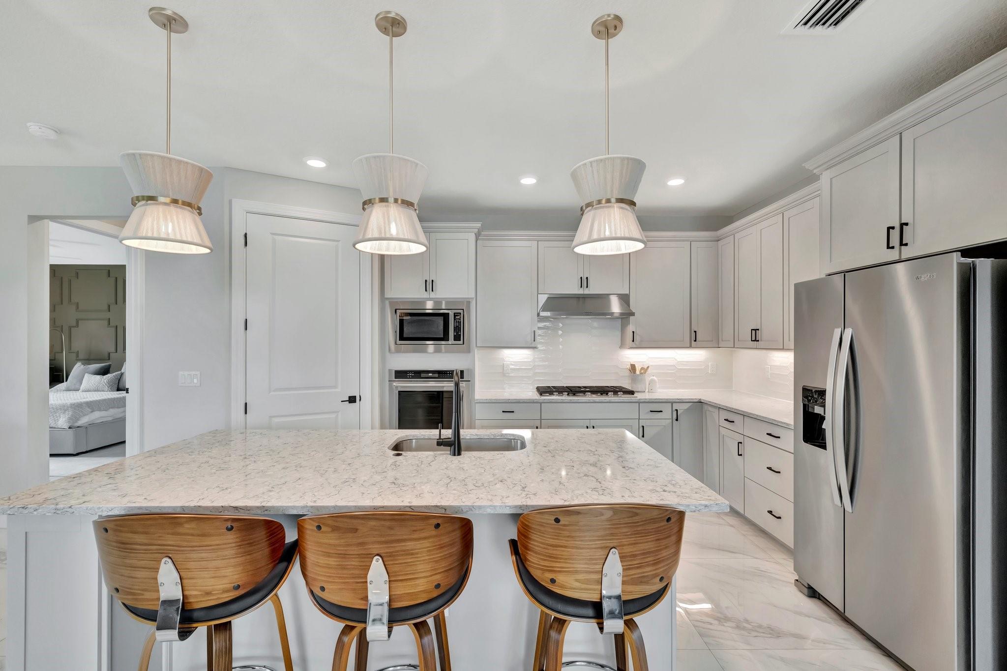 This stunning newer construction offers a perfect blend of modern luxury and functional design. Boasting 3 spacious bedrooms, 2 elegant bathrooms, and an additional den/office space, this residence is ideal for families or professionals. The upgraded flooring throughout the house adds a touch of sophistication and durability. The open-concept living area seamlessly integrates ready state-of-the-art Sonos sound system, wired with zones throughout the house, providing an immersive audio experience for entertainment lovers. The double garage offers ample storage and parking space. Located in a vibrant community with resort-style amenities, you'll enjoy access to a fully-equipped gym, pickleball courts, a cozy fire pit, and more. This home is not just a place to live—it's a lifestyle upgrade.