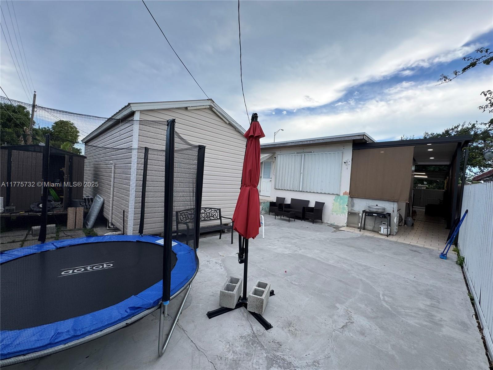 Charming 3 Bedroom, 2 Bathroom with some upgraded. This home has the potential to be divided into a 2/1 and 1/1, only have to close a door. Addition in the back has a shed of 24*12 feet converted in a beautiful efficiency. Some impacts windows and the others have accordion shutters. Most of plumbing are PVC. New: ROOF and A/C. Washer and Dryer .It is completely fenced in with automatic car gate. Enough space in the back yard for multiple uses. NO HOA. Excellent Location and perfect for commuters.