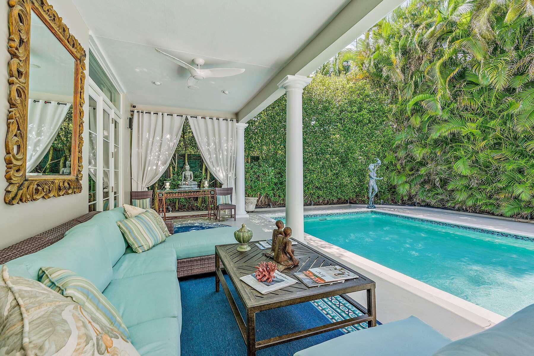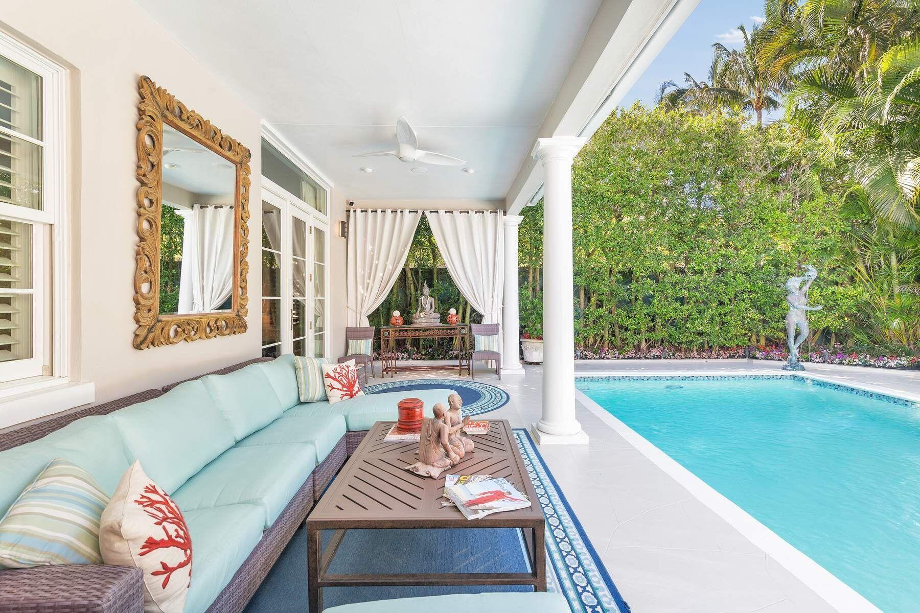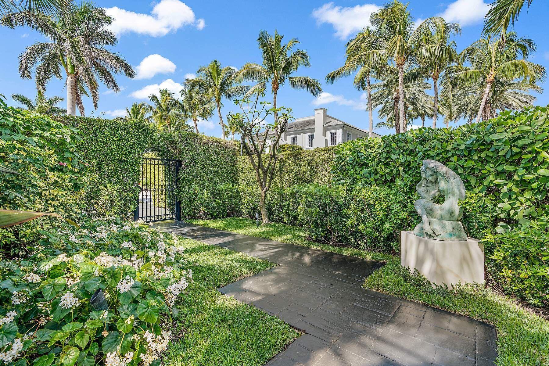 IMPRESSIVE, 1 story, Palm Beach Regency, refined & updated, w approx. 14' ceilings in the great room & high ceilings throughout. This near north Gem, on Corner lot, just south of The Beach Club is 300' from an accessible beach. The 4BR, 3.1BA home has 2 primary bedrooms w ensuite baths. A 3rd bedroom, w ensuite bath, may be shared, w the 4th BR/office w murphy bed. Loggia overlooks stunning, saltwater pool & bronze fountain-ideal for entertaining, flows beautifully from all major rooms. This estate's floor plan is versatile & lends itself to suit your needs, offering a sophisticated residence, that's a turnkey alternative to a condo. Secured w gates, walls/hedges & security system/cameras, w impact windows/doors & Full House Generator. 3 car AC garage & motor court.
