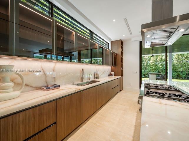 Stunning new home located on beautiful Granada Blvd.. Its grand entrance with spectacular swivel front door, exterior and interior water features and a 25 ft travertine wall sets the tone for the sophistication within. This breathtaking home offers a keystone fireplace, stone floors, elevator & mud room. Its jaw dropping kitchen is a culinary dream, with a butler's pantry & separate wine closet. Living areas overlook the outdoor oasis with pool & summer kitchen, perfect for alfresco dinning and entertaining. The family/man cave room includes a dazzling bar that is a work of art. Gorgeous primary suite and with covered terrace and spectacular bath with steam shower, free standing tub, and outside shower that transcends you to a 5 star hotel. Come see this masterpiece and make it yours.