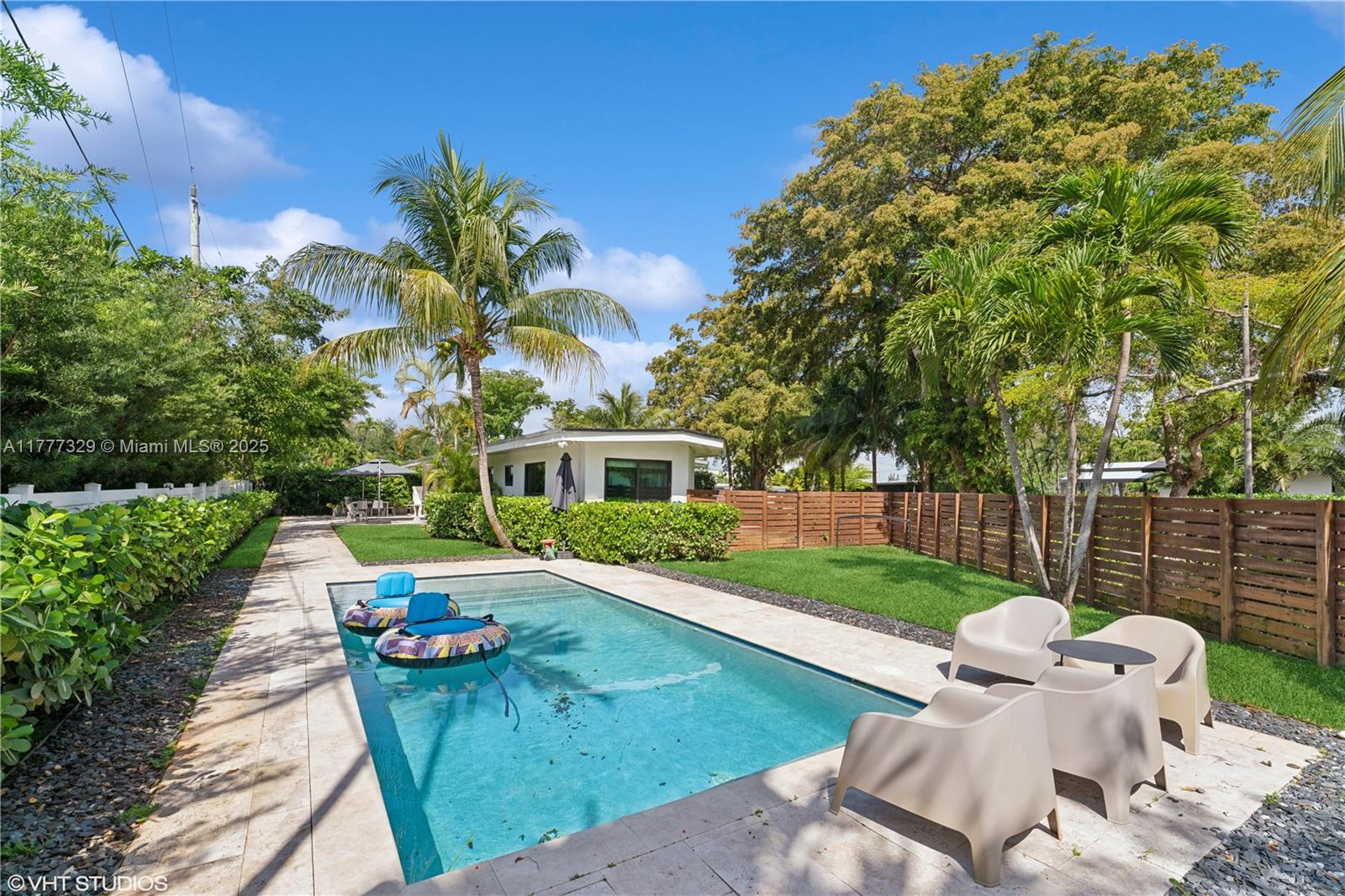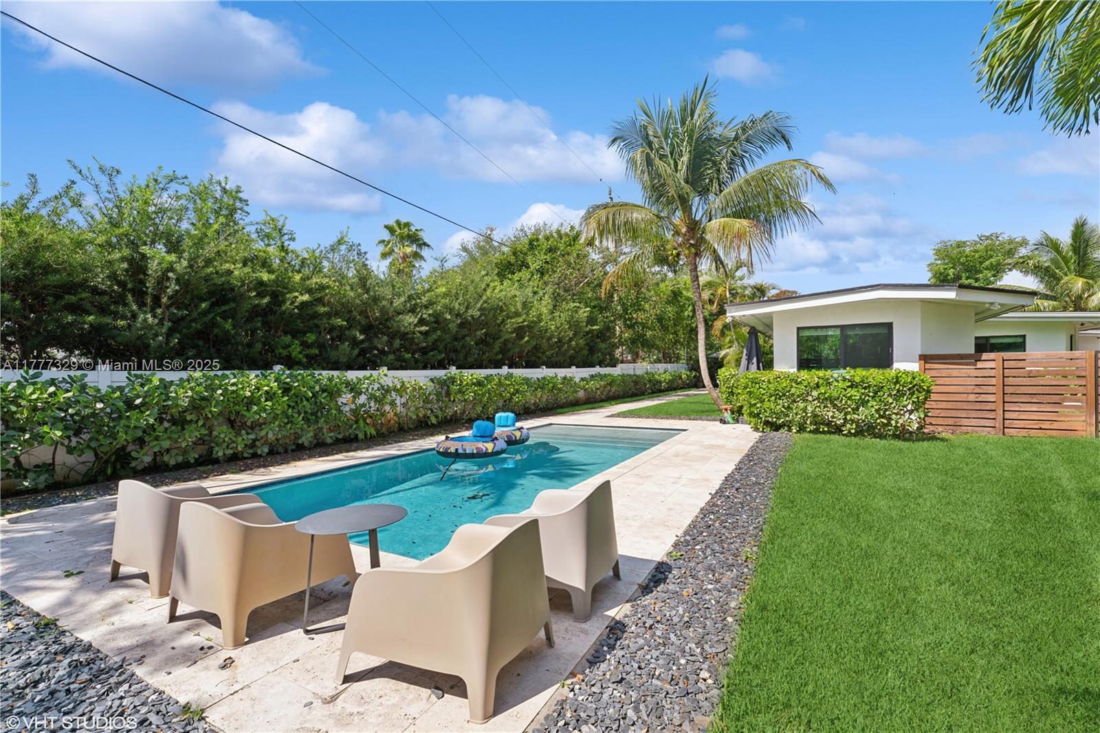 Elevate your lifestyle in this recently renovated three-bedroom, three-bathroom home nestled in the serene ambiance of Sky Lake. Exuding elegance, the home features marble travertine accents throughout, Italian doors, an Italian impact-resistant and acoustically insulated front door, upgraded bathrooms and kitchen equipped with state-of-the-art appliances, ceiling speakers strategically placed throughout the residence and impact windows that enhance the home’s energy efficiency. The pièce de resistance is the expansive backyard, complete with salt water refreshing pool, providing an idyllic setting for relaxation and entertainment with manicure landscaping.