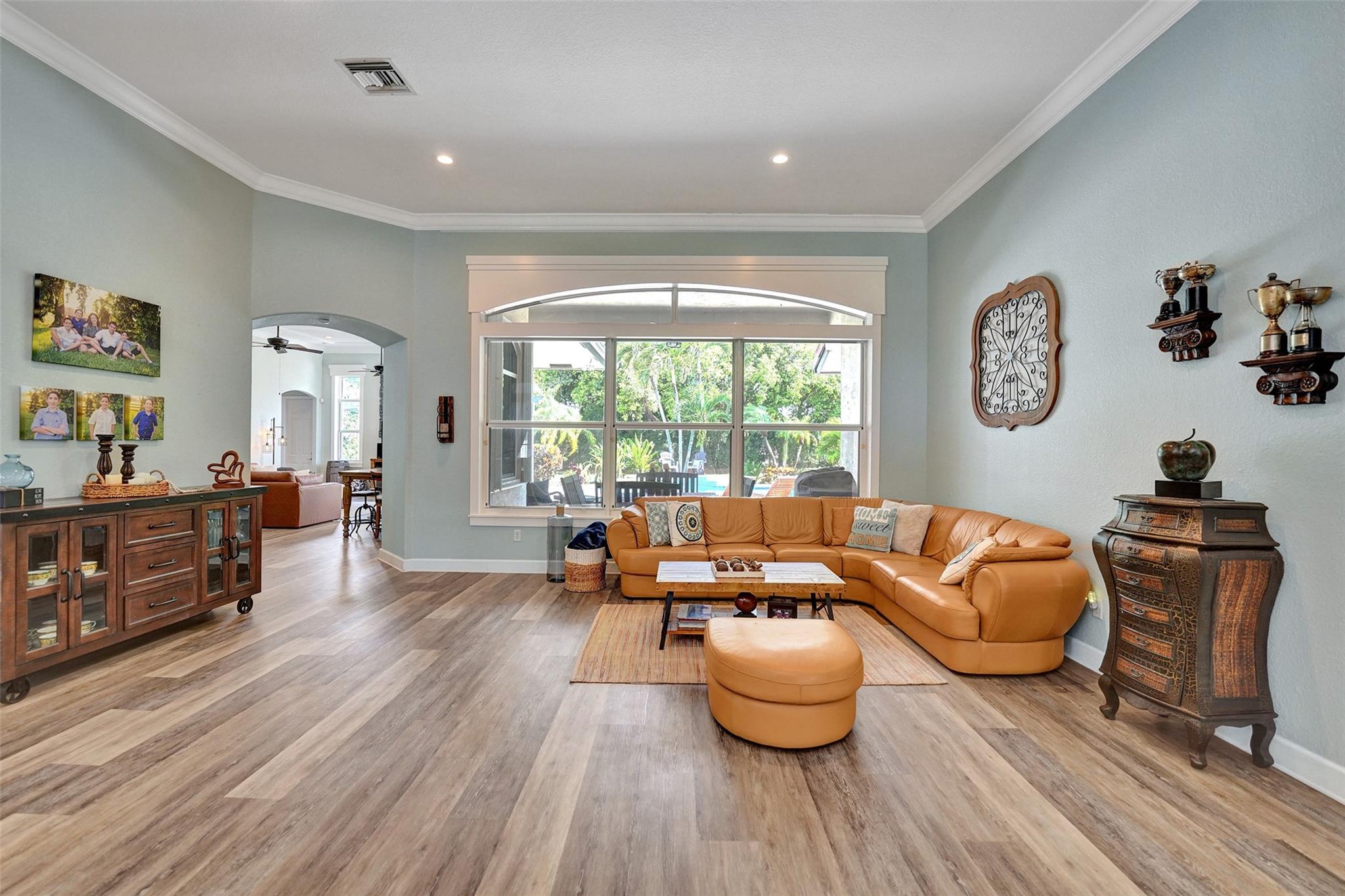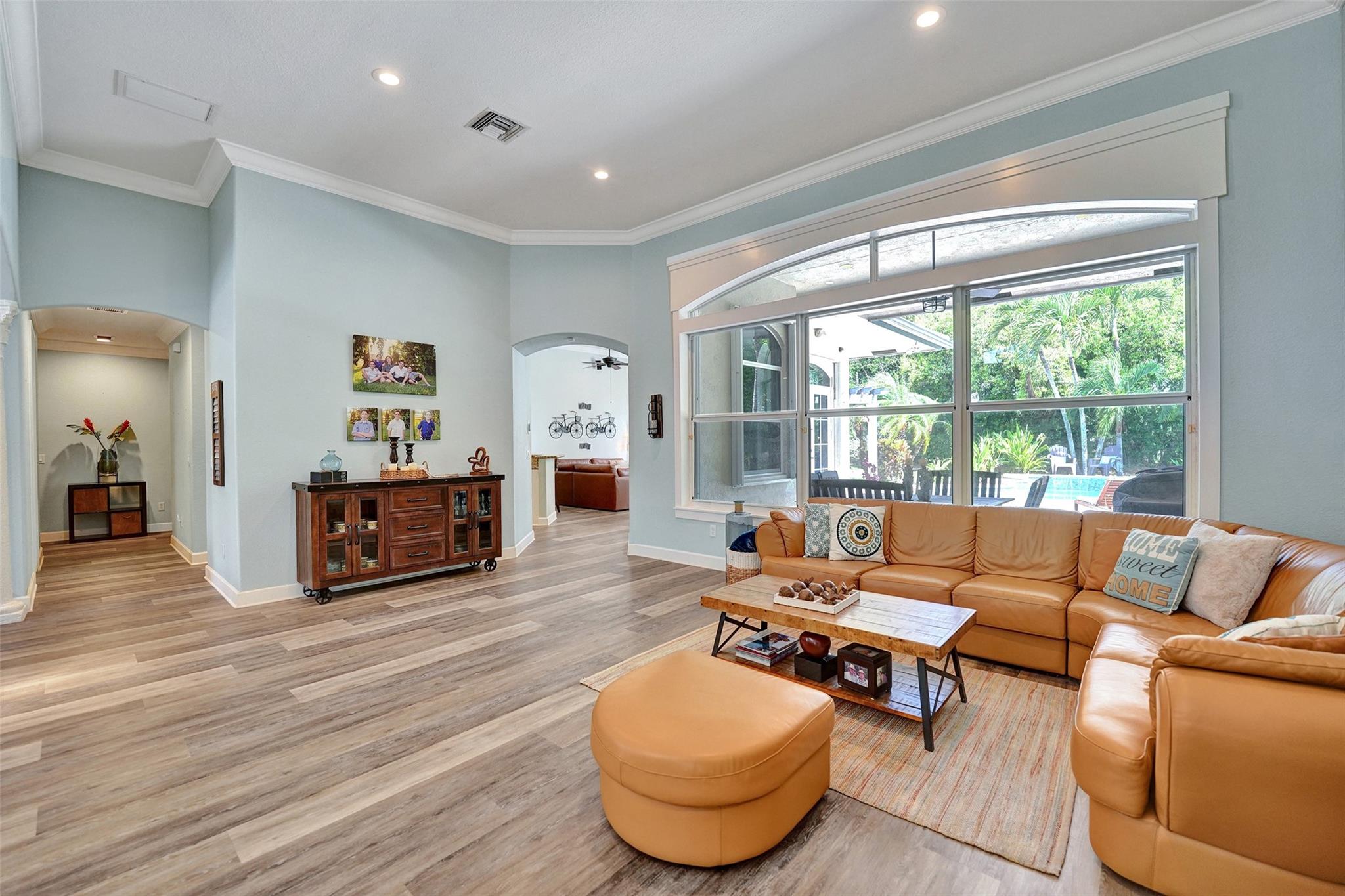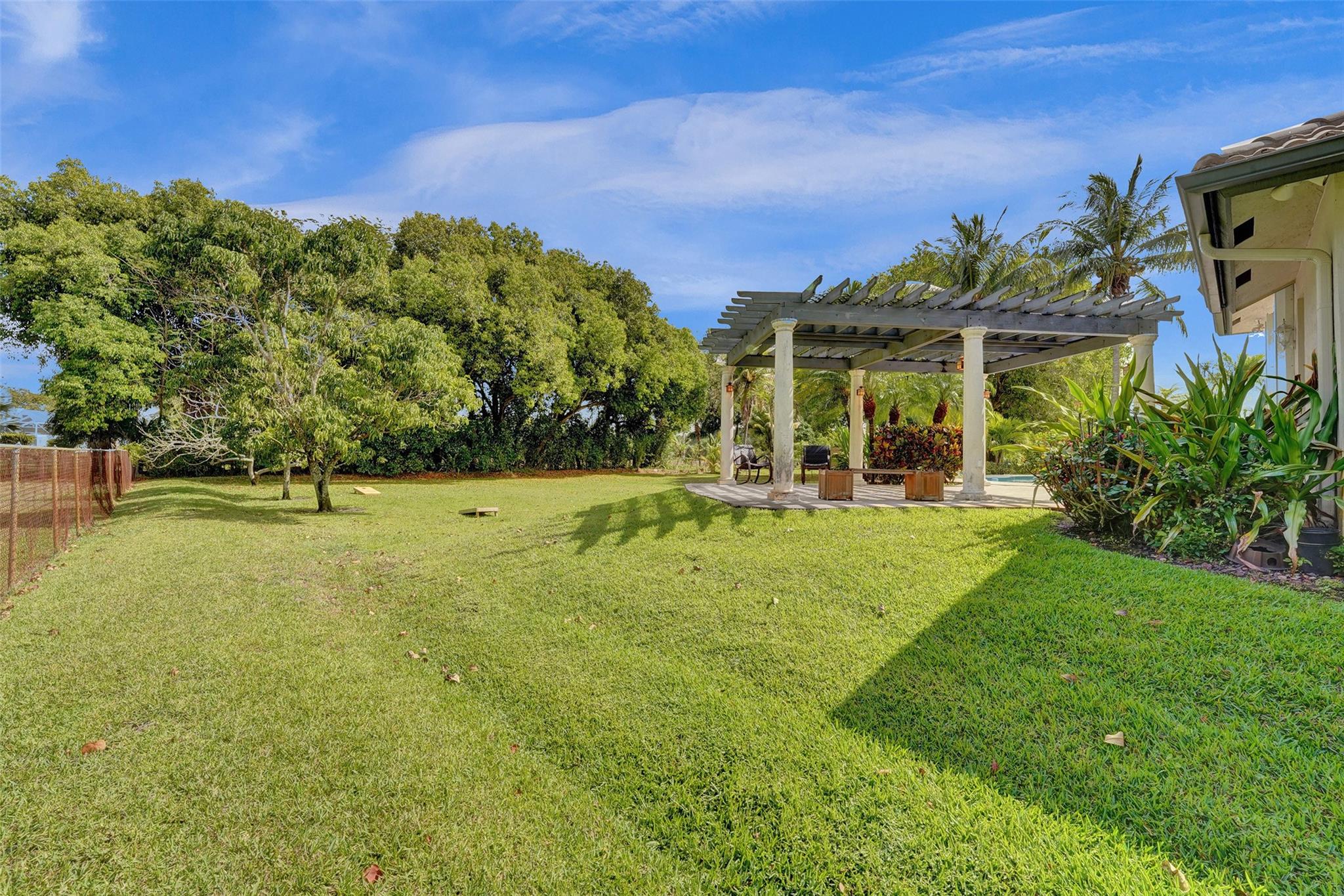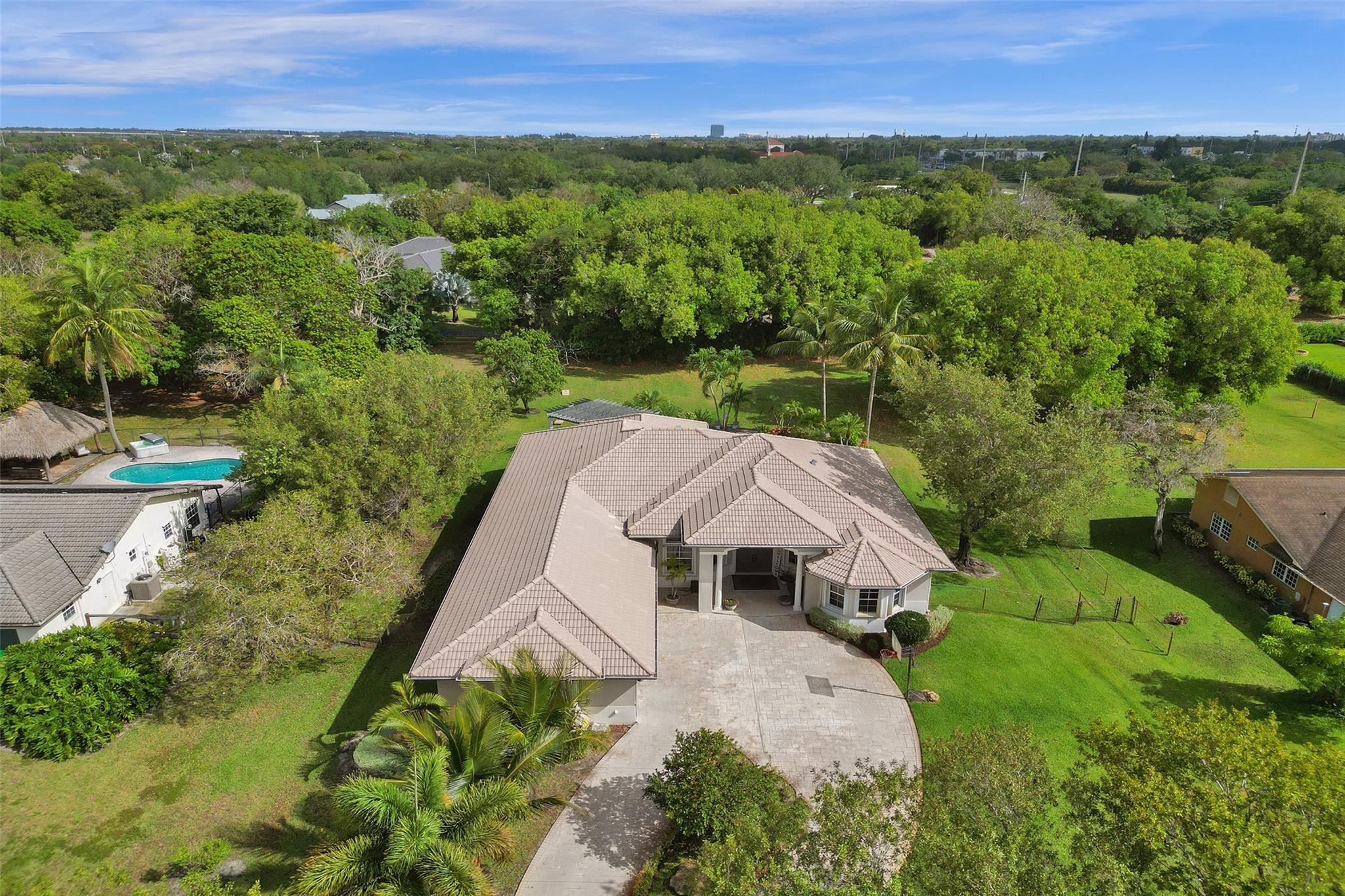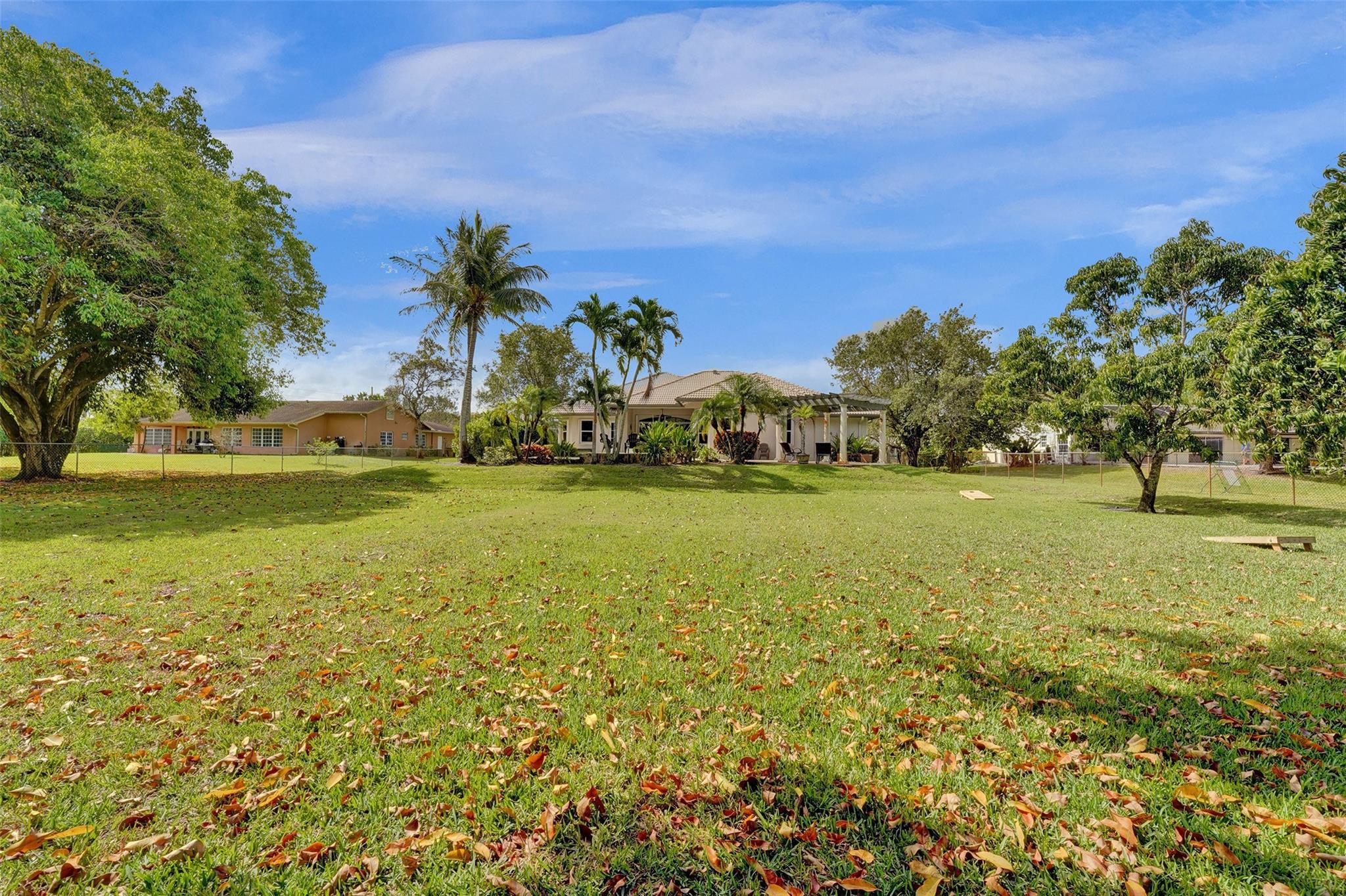 Tropical Paradise in this charming estate pool home with over $200K in upgrades! It's nestled in the sought after West Davie community of custom homes on almost one full acre lot. Step into a meticulously clean & bright "triple split" floor plan that boasts 5 true bedrooms, plus office area, & 3 full baths. Super spacious chef's kitchen featuring crisp white cabinetry with stylish backsplash & SS appliances. Luxury vinyl flooring thru out! Designers touch with soaring ceilings, recessed lighting, textured walls, decorative crown & window trim finishes. Your own tropical oasis awaits with a covered patio, pergola, & tranquil pool w/ waterfall with lush landscaping & mature trees. Conveniently fenced yard for boat/RV parking. Large circular driveway w/ 3 car garage. Top schools. No HOA