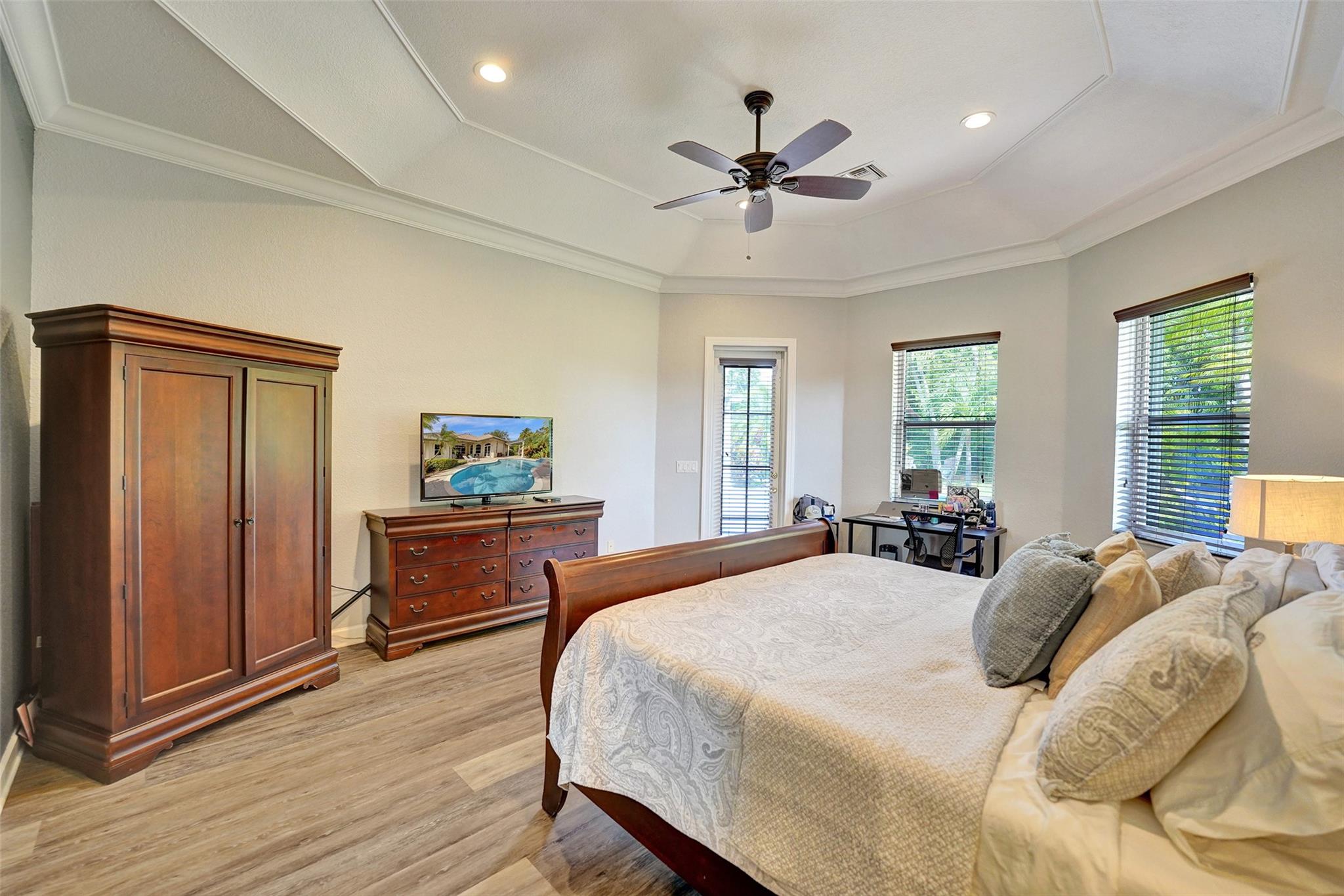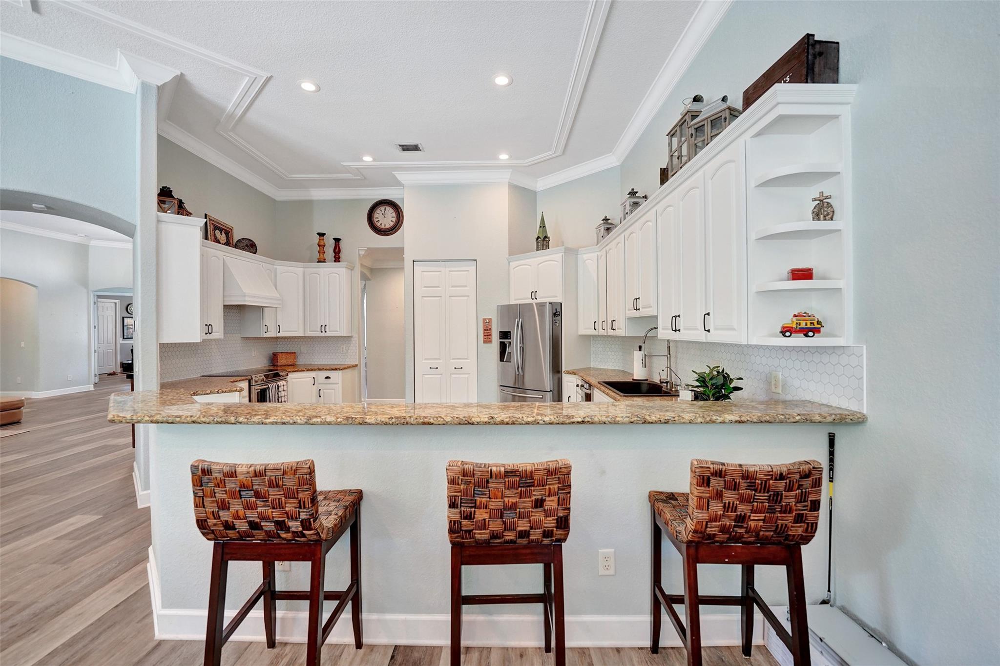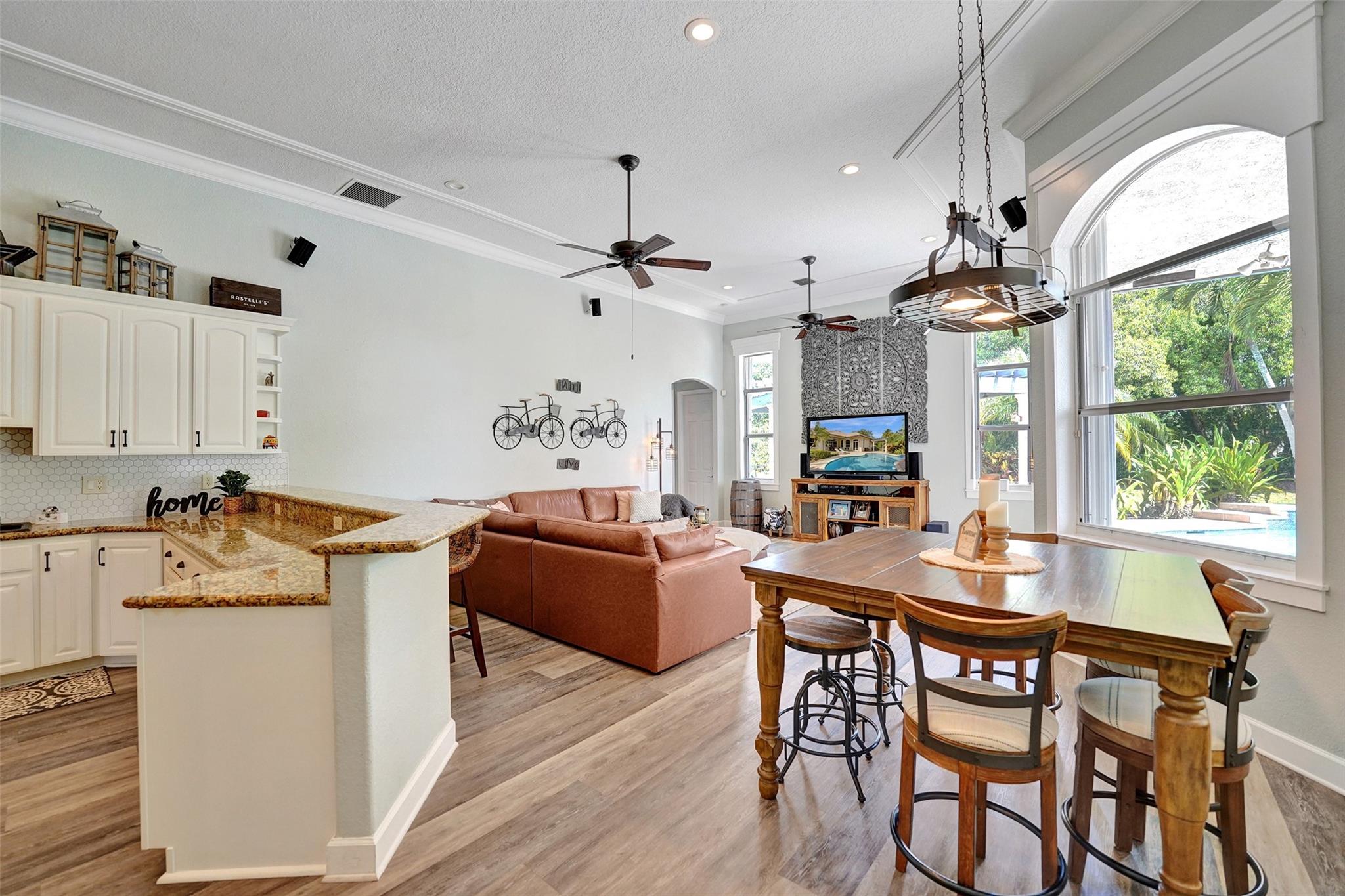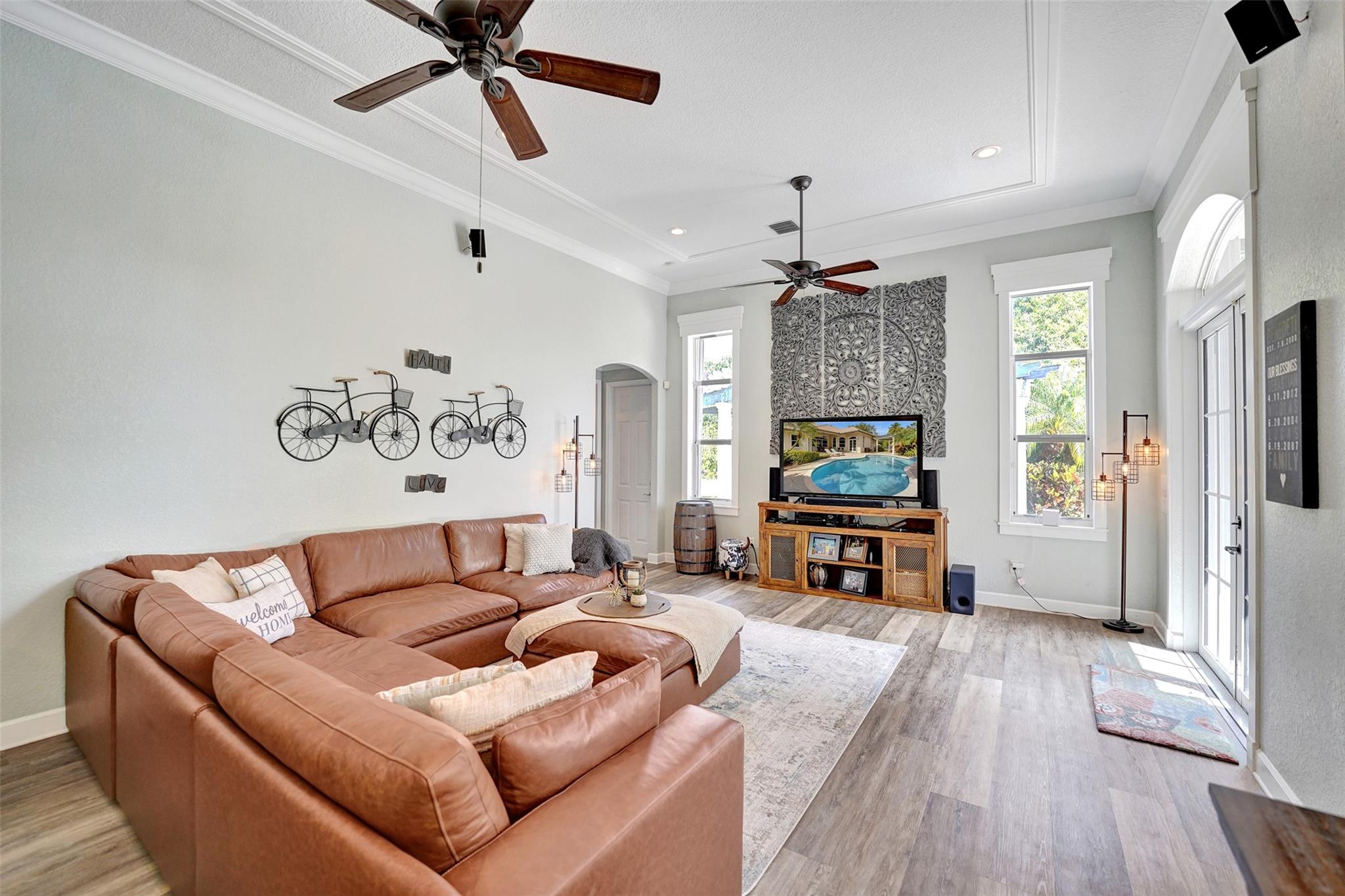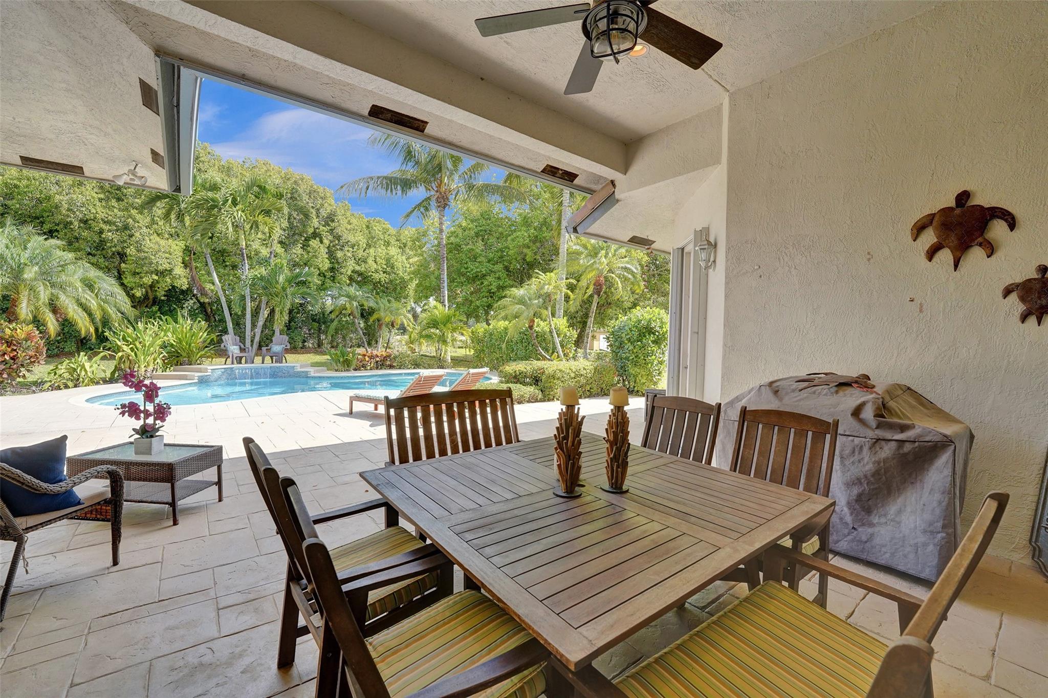 Tropical Paradise in this charming estate pool home with over $200K in upgrades! It's nestled in the sought after West Davie community of custom homes on almost one full acre lot. Step into a meticulously clean & bright "triple split" floor plan that boasts 5 true bedrooms, plus office area, & 3 full baths. Super spacious chef's kitchen featuring crisp white cabinetry with stylish backsplash & SS appliances. Luxury vinyl flooring thru out! Designers touch with soaring ceilings, recessed lighting, textured walls, decorative crown & window trim finishes. Your own tropical oasis awaits with a covered patio, pergola, & tranquil pool w/ waterfall with lush landscaping & mature trees. Conveniently fenced yard for boat/RV parking. Large circular driveway w/ 3 car garage. Top schools. No HOA