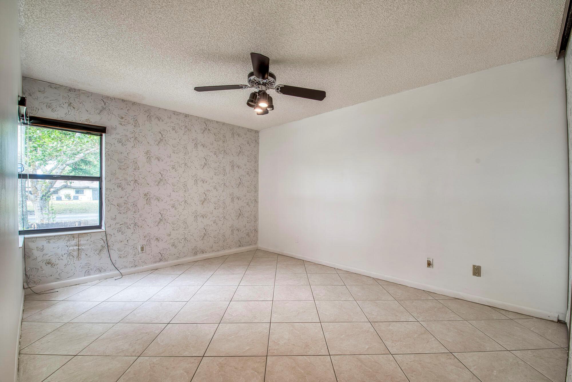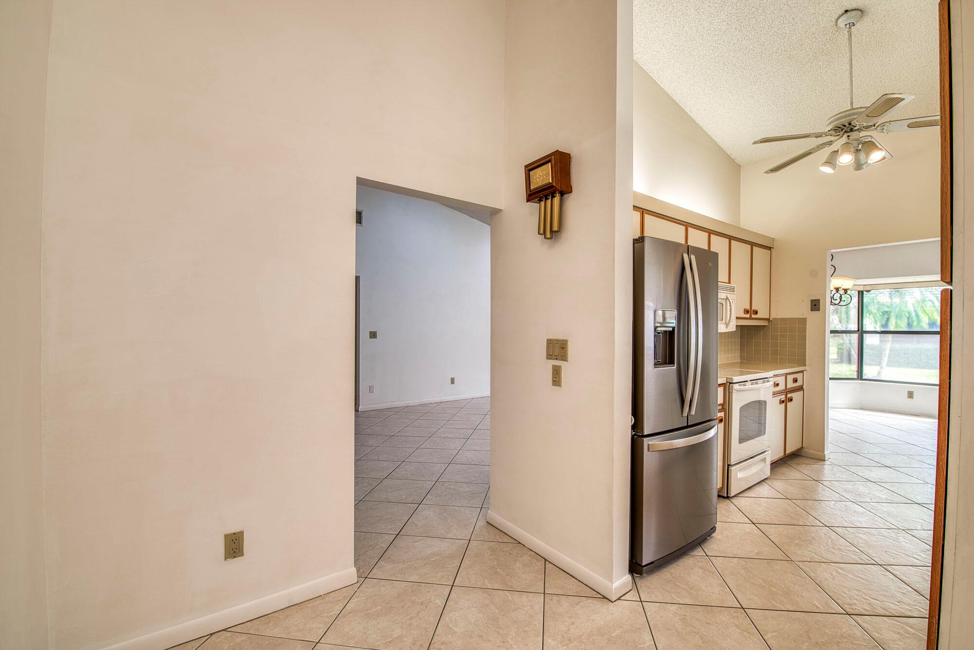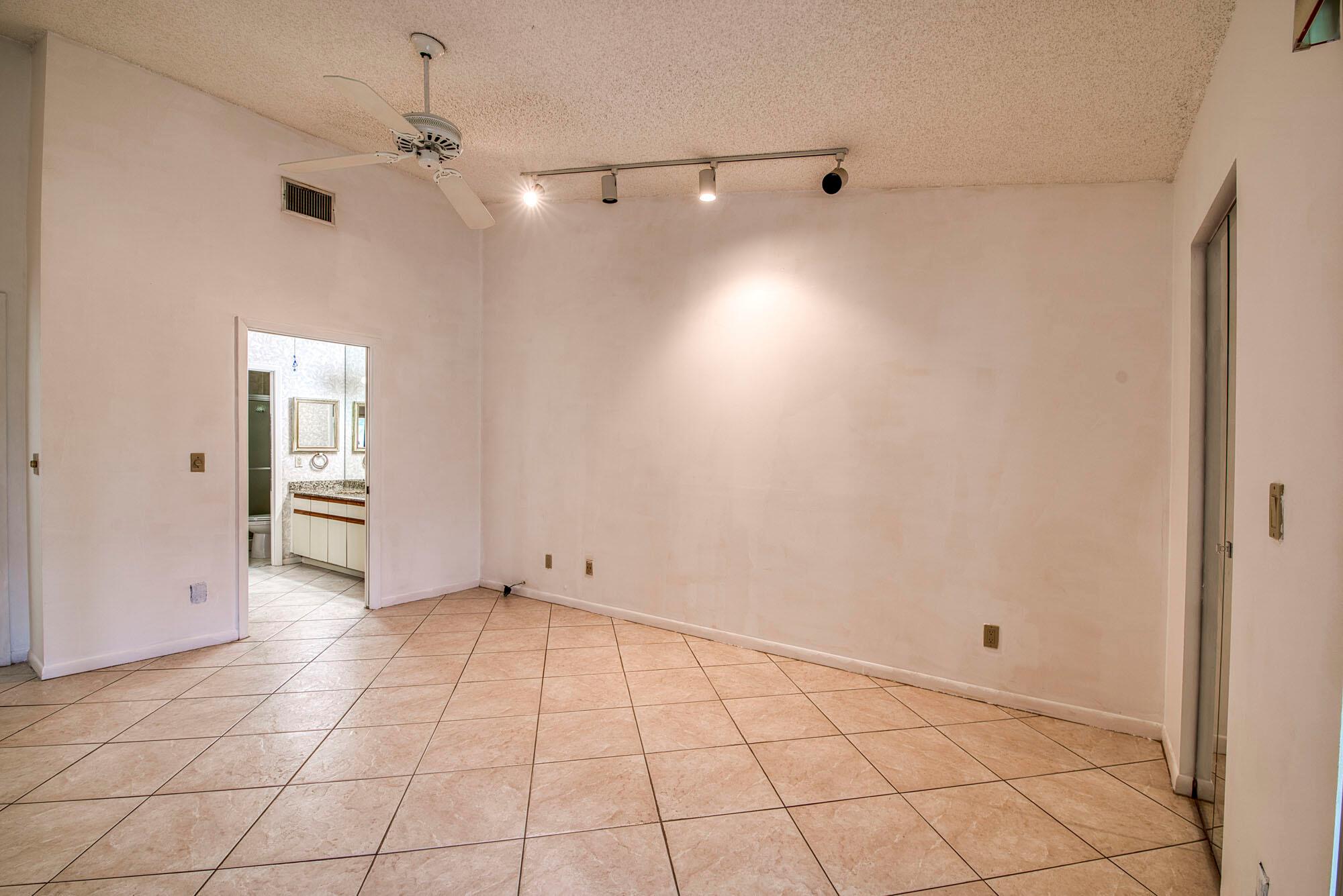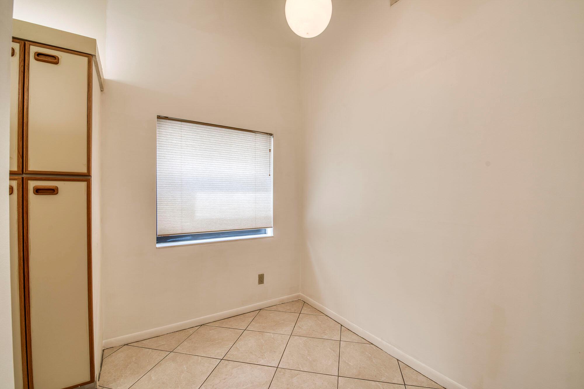This cozy and meticulously maintained villa in the sought-after Fairmont Place offers peaceful living in one of the most private locations in the community. Nestled at the back of the neighborhood with no through traffic, the home features 2 bedrooms, 2 bathrooms, and a thoughtful layout with the kitchen and garage on one side, and bedrooms on the other. The spacious living area flows into a dining room with a charming bay window, while the galley-style kitchen includes unique touches like a built-in butcher block and knife station. The primary suite features a large walk-in closet, private en-suite, and sliding door access to the covered patio, complete with roll-down shutters and faux rock tile flooring. Additional perks include an indoor laundry room and a long one-car garage with