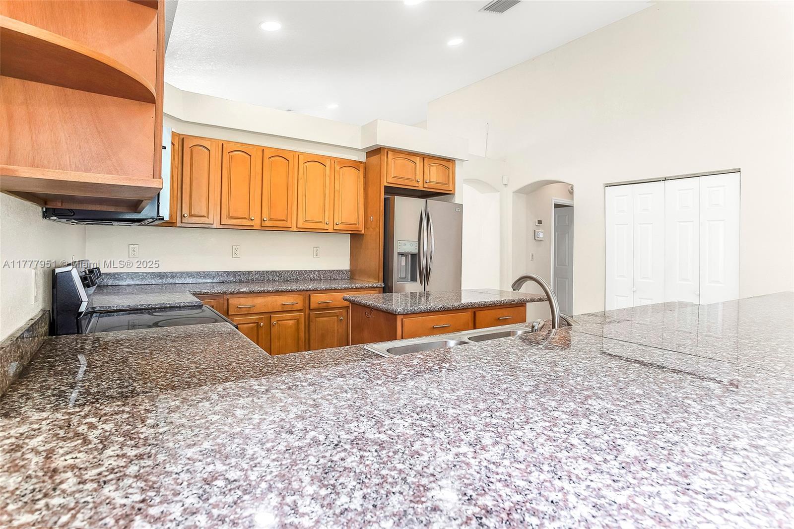WELCOME TO YOUR BEAUTIFUL HOME IN A QUIET COMMUNITY JUST MINUTES AWAY FROM FORT LAUDERDALE BEACHES AND SURROUNDED WITH SHOPPING, DINING, DRIVE -IN MOVIES AND SPORT ARENAS. THIS HOME FEATURES VAULTED CEILINGS, TILE FLOORS THROUGHOUT, SPACIOUS KITCHEN WITH AN ISLAND, GRANITE COUNTER TOPS, EXCELLENT APPLIANCES, LOTS OF NATURAL LIGHTING WITH EXTRA CEILING LIGHTING, HUGE FAMILY ENTERTAINMENT ROOM, SEPARATE DINING AND LIVING ROOMS, 3 SPACIOUS BDRMS & CLOSETS, PRIMARY BDRM EXTRA WALK-IN CLOSET, JETTED ROMAN TUB, SEPARATE SHOWER WITH HIS/HERS VANITIES, WASHER/DRYER, 2 CAR GARAGE WITH ADD'L PARKING IN DRIVEWAY. STEP OUTSIDE YOUR LRG FENCED BACKYARD TO A COVERED PATIO OVERLOOKING A LAKEFRONT VIEW. ELECTRIC POWERED TOOL SHED/MAN-CAVE. FRIENDLY NEIGHBORS ON A CUL-DE-SAC STREET. PRICED TO SELL FAST !!