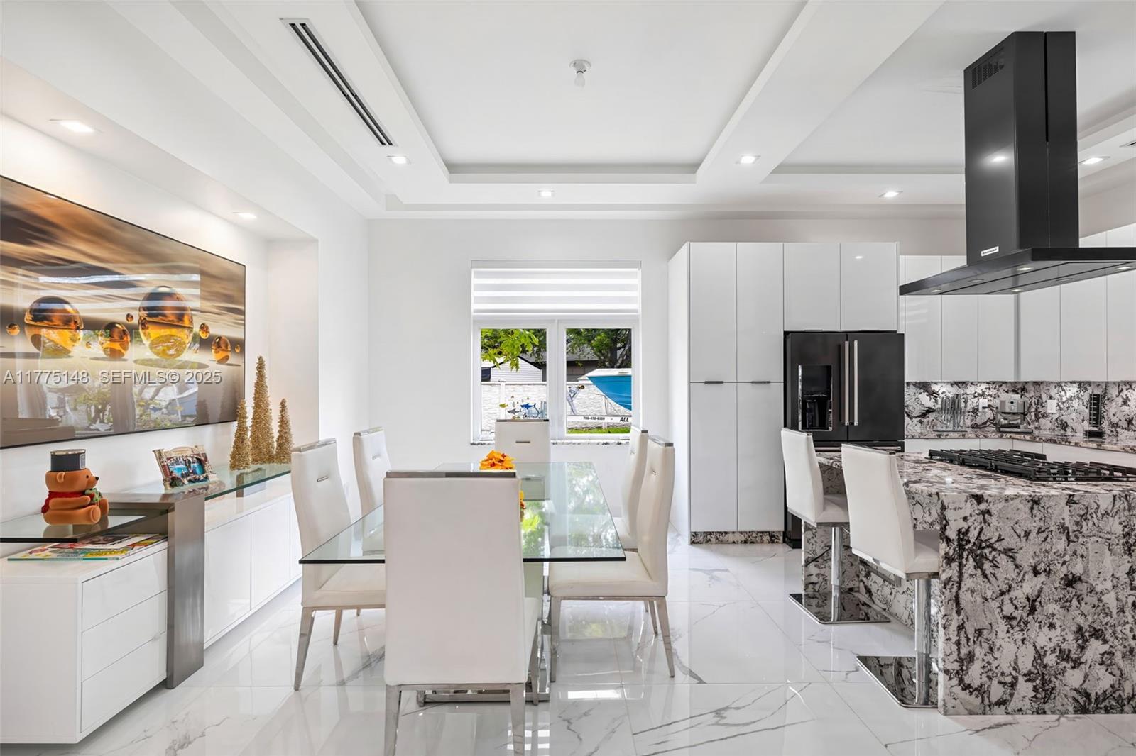This exceptional property is situated in a coveted neighborhood. On a 24,075 sqft lot, it features 4 bedrooms 4 bathrooms and an extra room that serves as flexible space. Completely remodeled, it boasts 2022 updates to the roof, electric, and plumbing. The interior showcases elegant Spanish porcelain floors and 10.6 ft ceilings, with both indoor and outdoor kitchens adorned with quartzite counters, seamlessly connecting the spaces, and perfect for entertaining. Impact-resistant windows and doors offer security, while LED lighting throughout enhances the home’s bright and vibrant feel. A gas meter powers appliances reducing electricity costs. Additional highlights include two 2020-installed AC units, a security system, and a turbine sprinkler system, ensuring convenience and peace of mind.