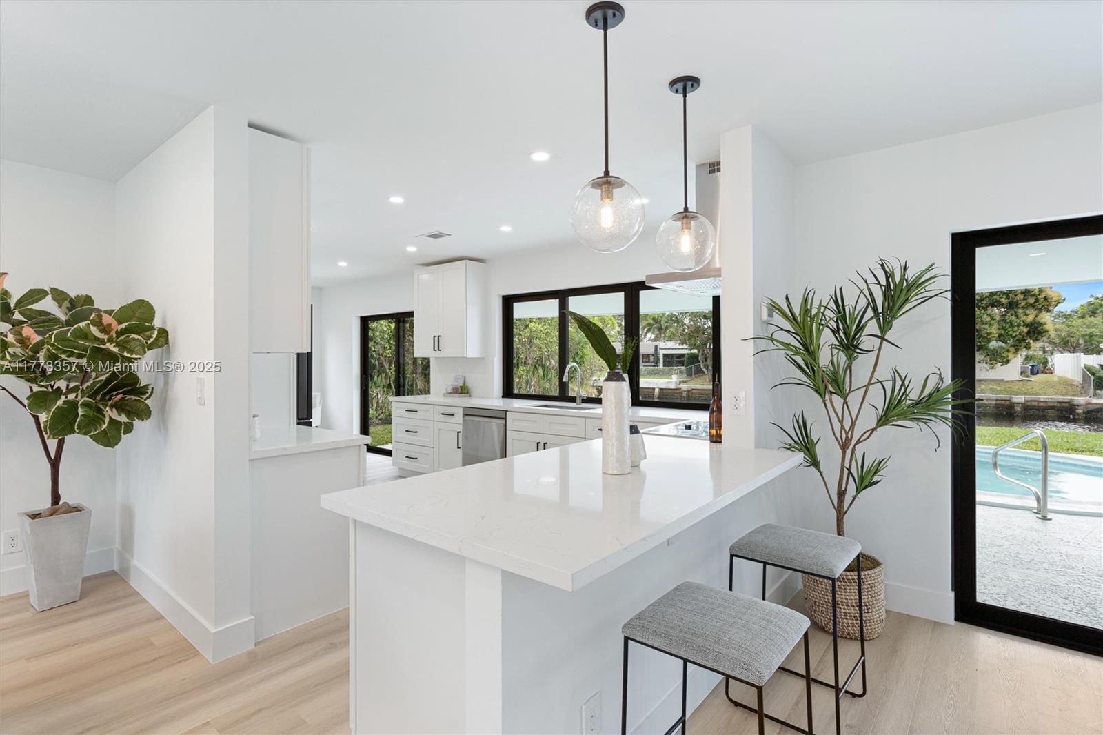 Flooded with natural light, this spectacular fully renovated home in Lake Estates offers the perfect blend of modern luxury and relaxed coastal living. With 80 feet of waterfront and two ocean access points, it’s truly a BOATER'S PARADISE. Inside, enjoy a beautifully remodeled kitchen with quartz countertops, custom cabinetry, and high-end appliances. The home features new flooring, impact windows and doors, fresh interior and exterior paint, exterior wood gates, new pool equipment and deck, recessed and designer lighting, updated electrical panel and outlets, new A/C, and sprinkler system. A new roof was installed in 2019. Close to great restaurants, parks, shopping, bars, and cozy coffee shops.