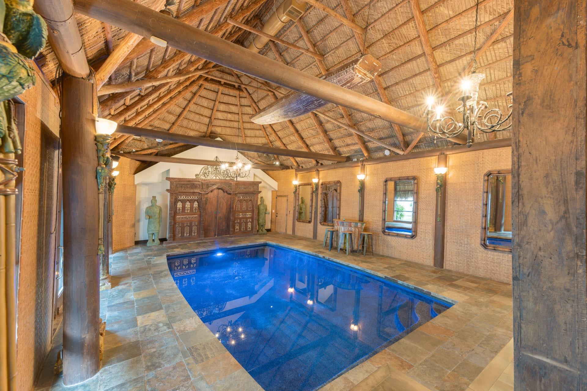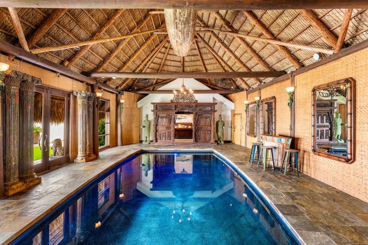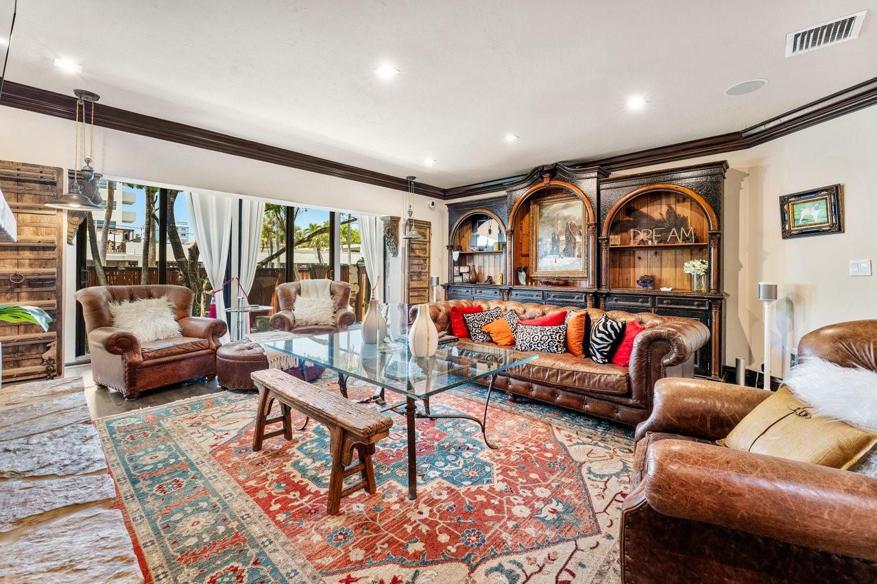 Welcome to Casa Riviera, a Balinese-inspired retreat with a dramatic private indoor heated pool under a soaring two-story structure—perfect for year-round entertaining or one of kinda STR steps to booming growth along the beach. Offers 4,000+ SF of air-conditioned space, two primary suites, great room, dining area, den, and a designer kitchen with Zip HydroTap wet bar. Rich walnut floors, stonework, and a wood-burning fireplace add timeless charm. Located on the closest premium dry lot to Fort Lauderdale Beach. Steps to Las Olas Blvd, the beach, and marina. Ideal as a primary home, second residence, or investment.