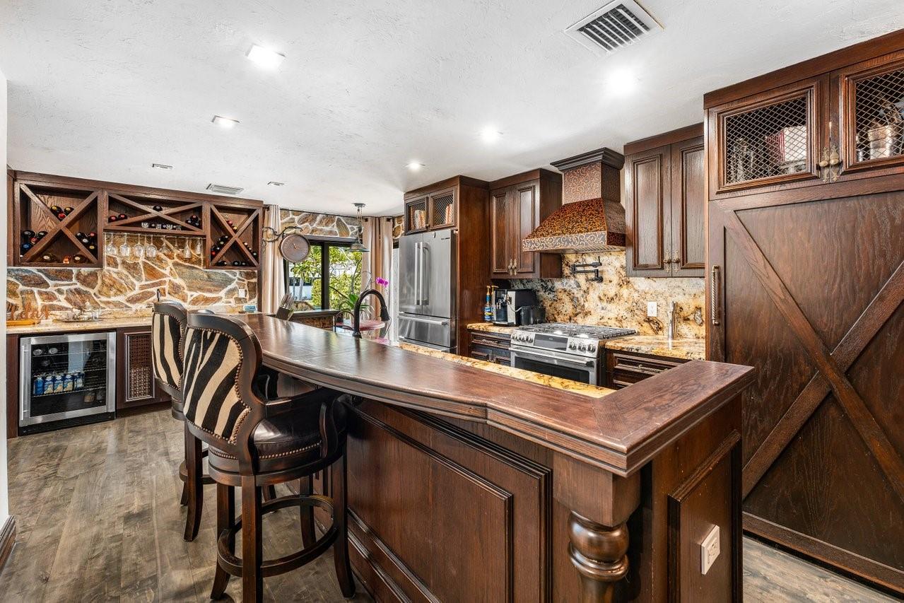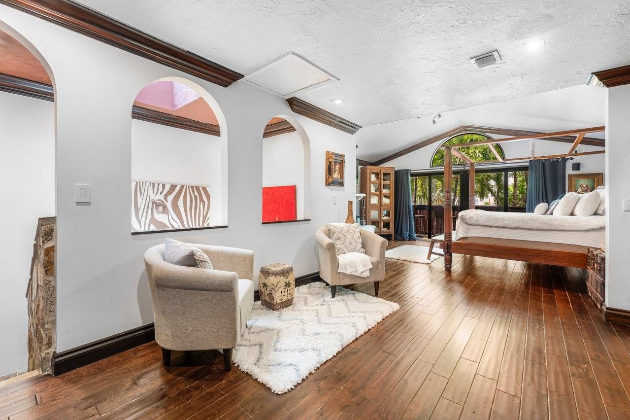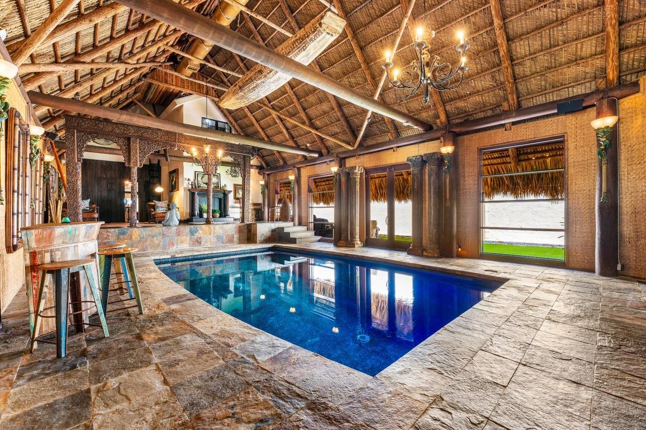 Welcome to Casa Riviera, a Balinese-inspired retreat with a dramatic private indoor heated pool under a soaring two-story structure—perfect for year-round entertaining or one of kinda STR steps to booming growth along the beach. Offers 4,000+ SF of air-conditioned space, two primary suites, great room, dining area, den, and a designer kitchen with Zip HydroTap wet bar. Rich walnut floors, stonework, and a wood-burning fireplace add timeless charm. Located on the closest premium dry lot to Fort Lauderdale Beach. Steps to Las Olas Blvd, the beach, and marina. Ideal as a primary home, second residence, or investment.