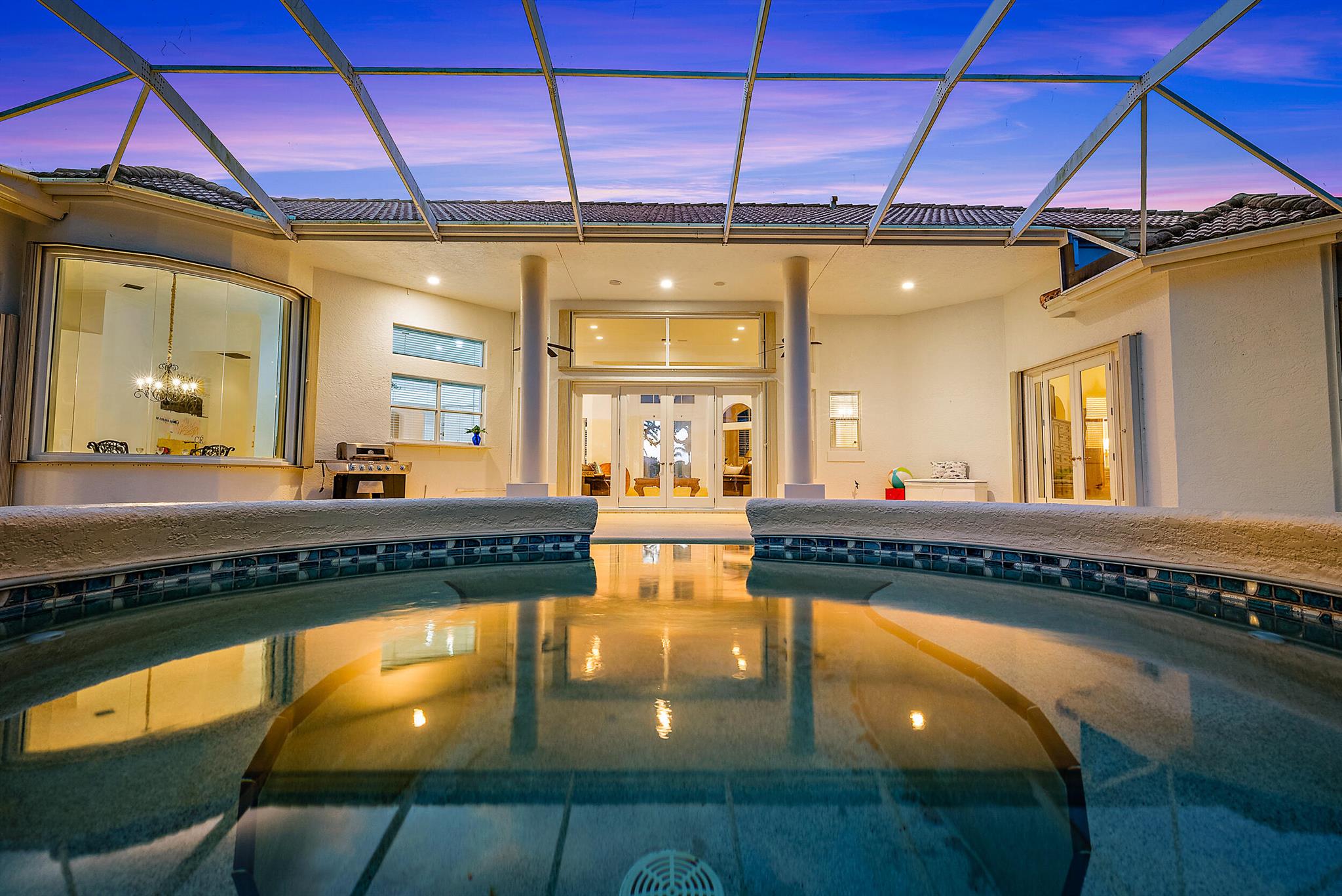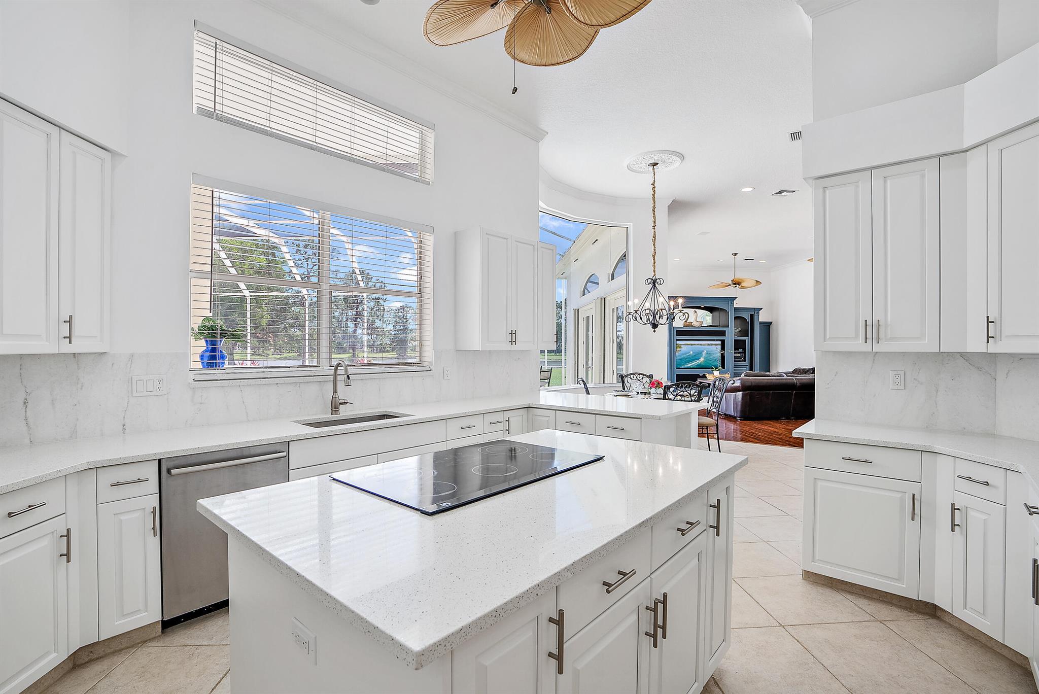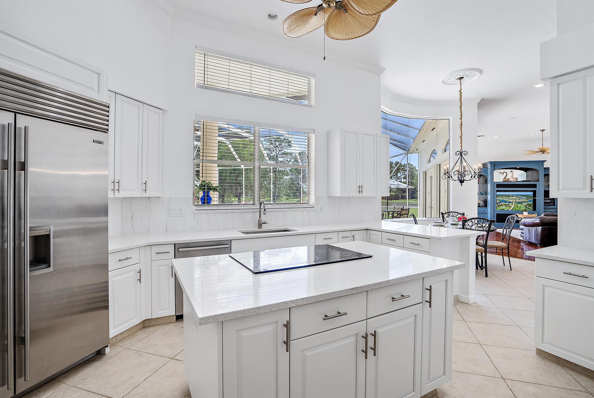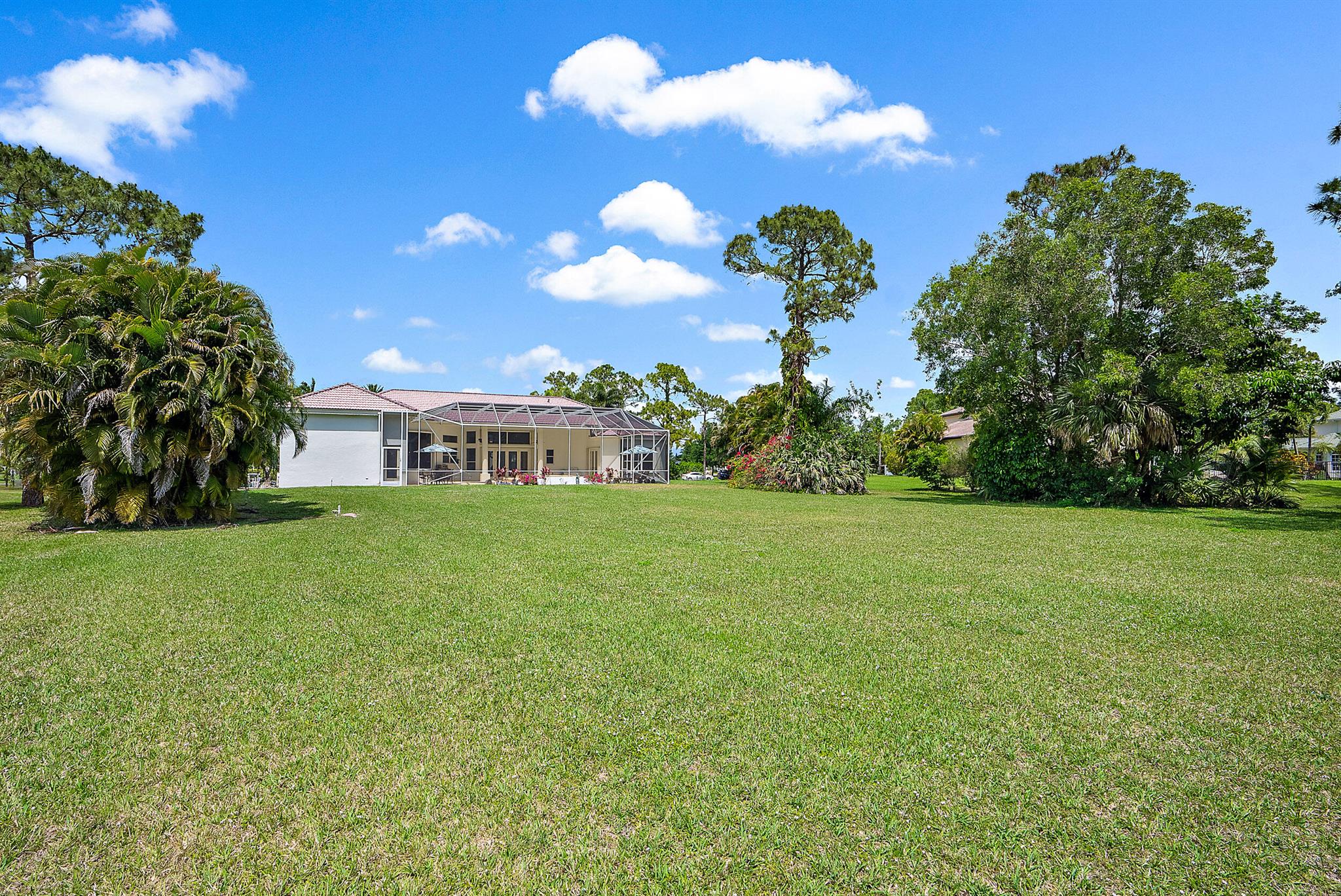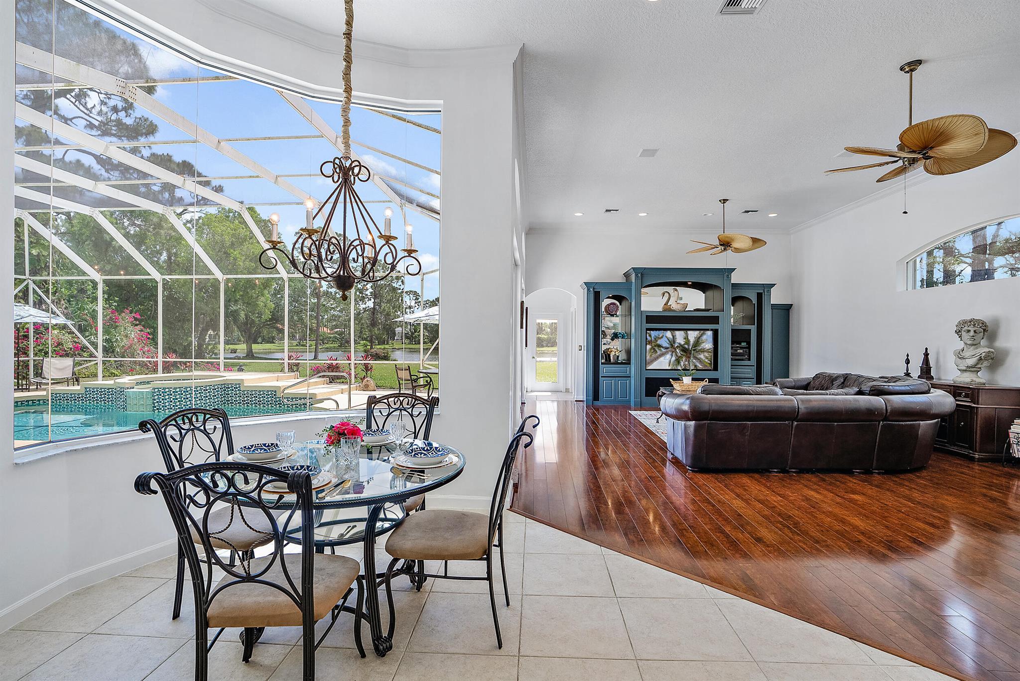 Welcome to your own 1.05 ACRE ESTATE located in the sought-after Bay Hill Estates neighborhood of Palm Beach Gardens. From the moment you approach the magnificent property, you'll be wowed by the dramatic circular driveway and regal Porte Cochere entry, flanked by lion statues. Perfect for entertaining and casual living, the open floor plan has expansive views of the lake from most of the windows in the home. Soaring 18-foot ceilings in the living room provide major architectural drama, while the outdoor pool and open patio draws one's eye outside to the tropically landscaped property. Enjoy immense privacy as you're secluded from neighbors. Three full bedrooms, including a spacious 15ft x 24ft Primary Bedroom, plus a convertible bedroom/den/office. Both secondary bedrooms are en suite.