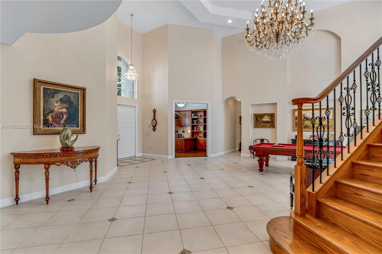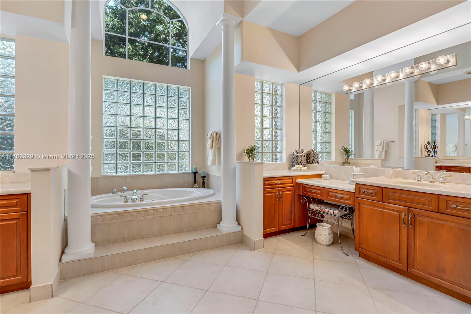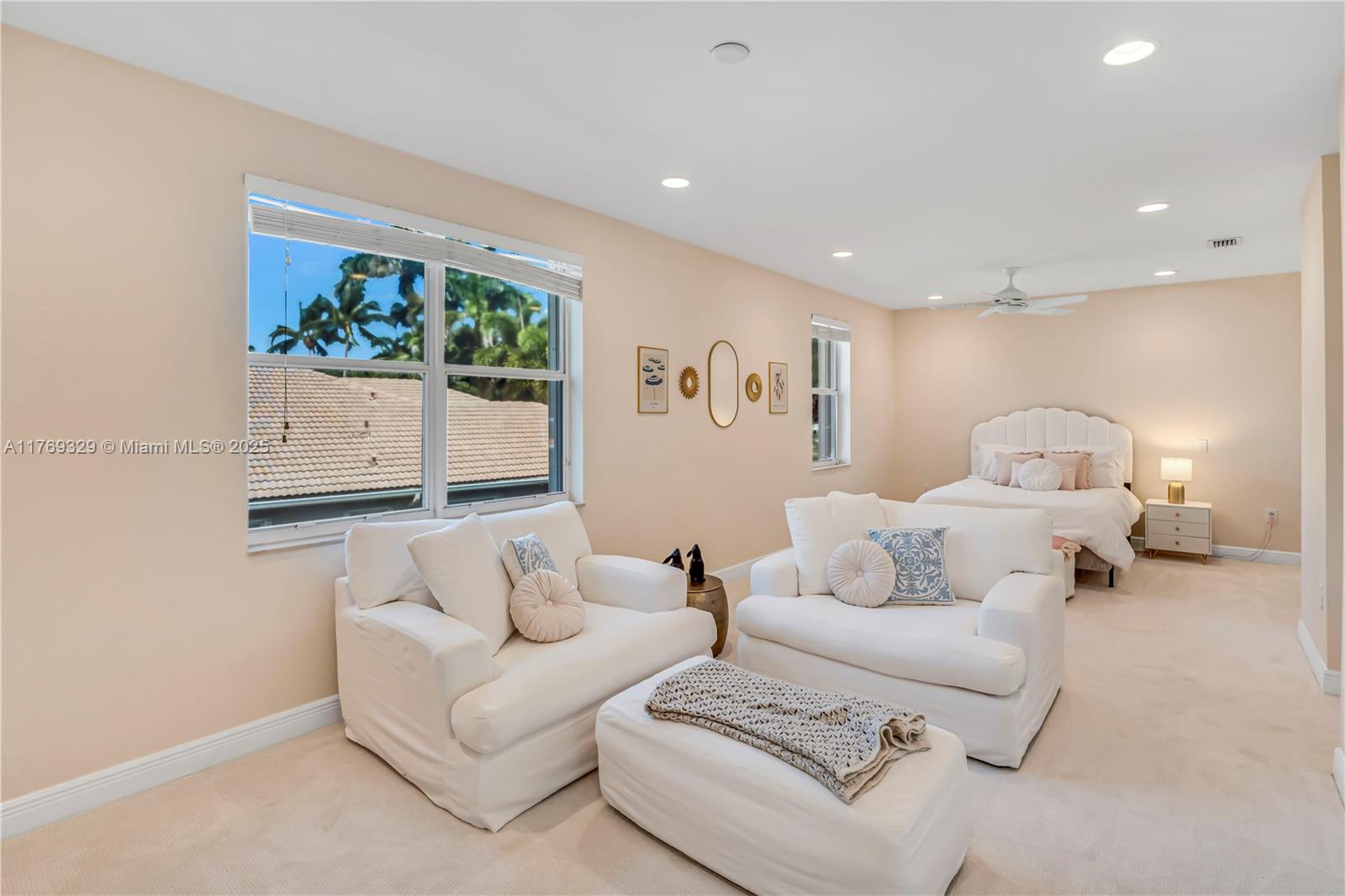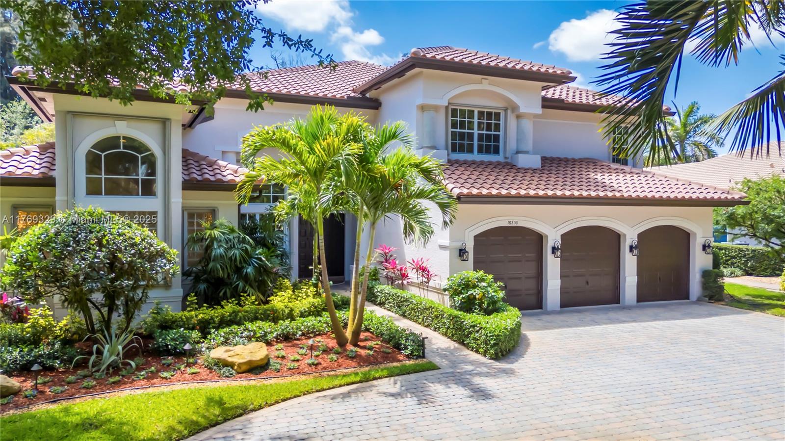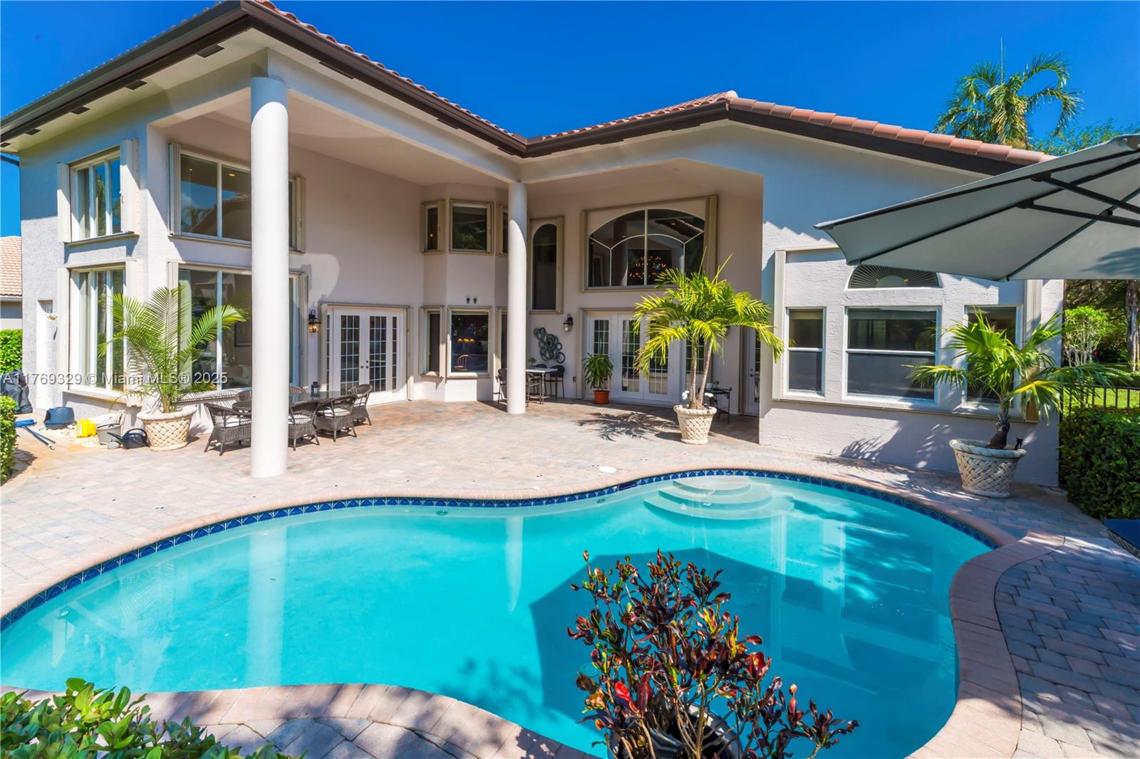 This breathtaking home in the sought-after Long Lakes Estates features 5 spacious bedrooms, 5.5 luxurious bathrooms, a private office, and a three-car garage with over 5800 sq ft. The primary suite, located on the first floor, offers beautiful views of the pool and landscaped backyard. Another bedroom and office on the main level adds flexibility. The open, light-filled first floor features volume ceilings. Upstairs, find three additional bedrooms, including one that could serve as a primary suite. Recent updates include a new roof 2024, fresh paint inside and out 2025, gutters 2025, accordion shutters, new upstairs carpet, and refinished stairs. Don’t miss out on this exceptional property!