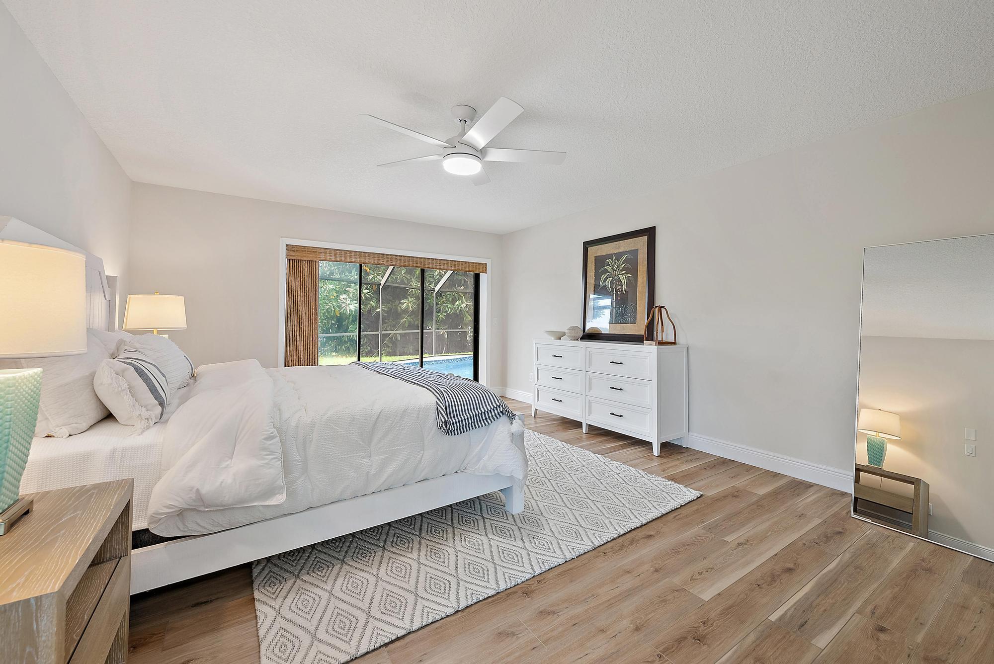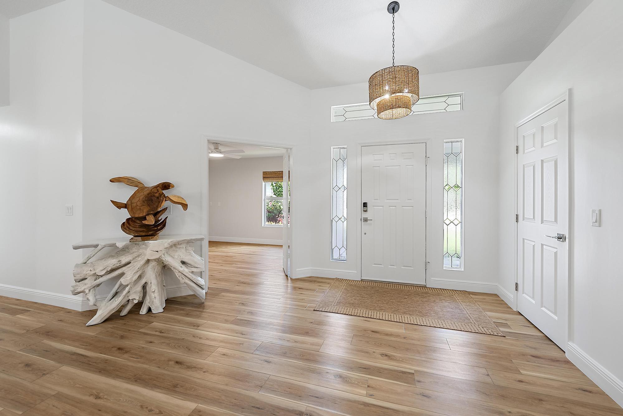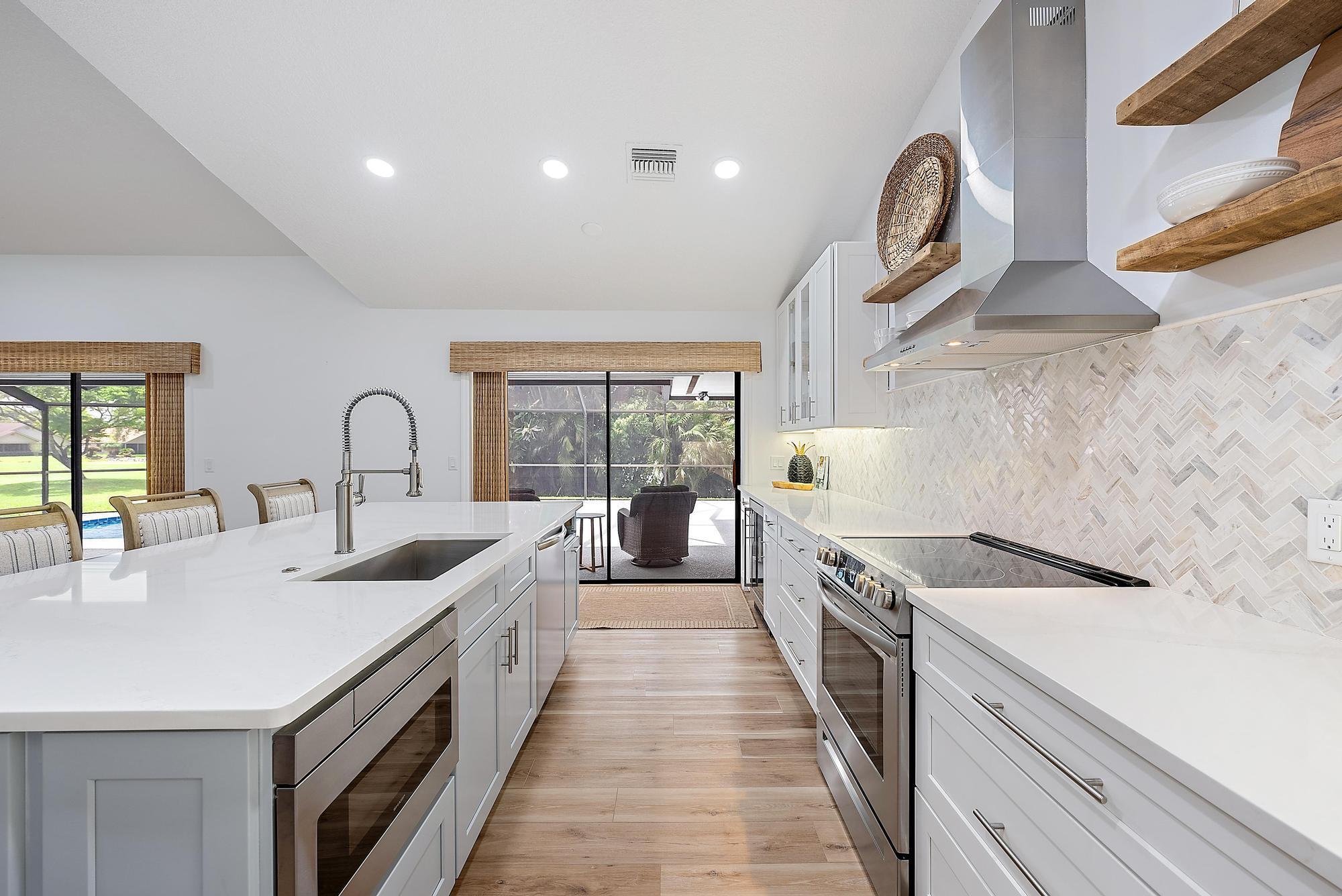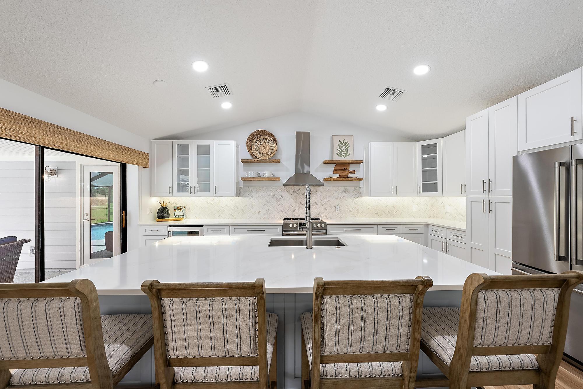 Stunning Lakefront One Story Home w/ Designer Finishes Throughout & Optional Golf Membership Only $1,750! Enjoy Beautiful Lanai, Custom Screened In Pool on Lake w/ Over 1,000 ft of Wide Water, Gorgeous Sunsets & Golf Views. Some Features Include Over 2,400 A/C SF, 3,600 Total SF, New Metal Roof, Vaulted Ceilings, Quartz Countertops, Stainless Steel Appliances w/ Wine Chiller, Dual Built-In Pantries, Impact Glass Windows, Great for Entertaining w/ Pocket Sliding Doors to Patio, Large Laundry Room, New AC, New Water Heater, Cabana Bath, HOA $500/yr, Huge 2 Car Garage w/ Epoxy Floor, Low Martin County Taxes & Located on Quiet Cul-De-Sac. Main Master Suite Offers Access to Pool, 2 Walk In Closets, Large Shower w/ 3 Shower Heads, Free Standing Tub, Dual Vanities. 2nd Master Suite has Walk