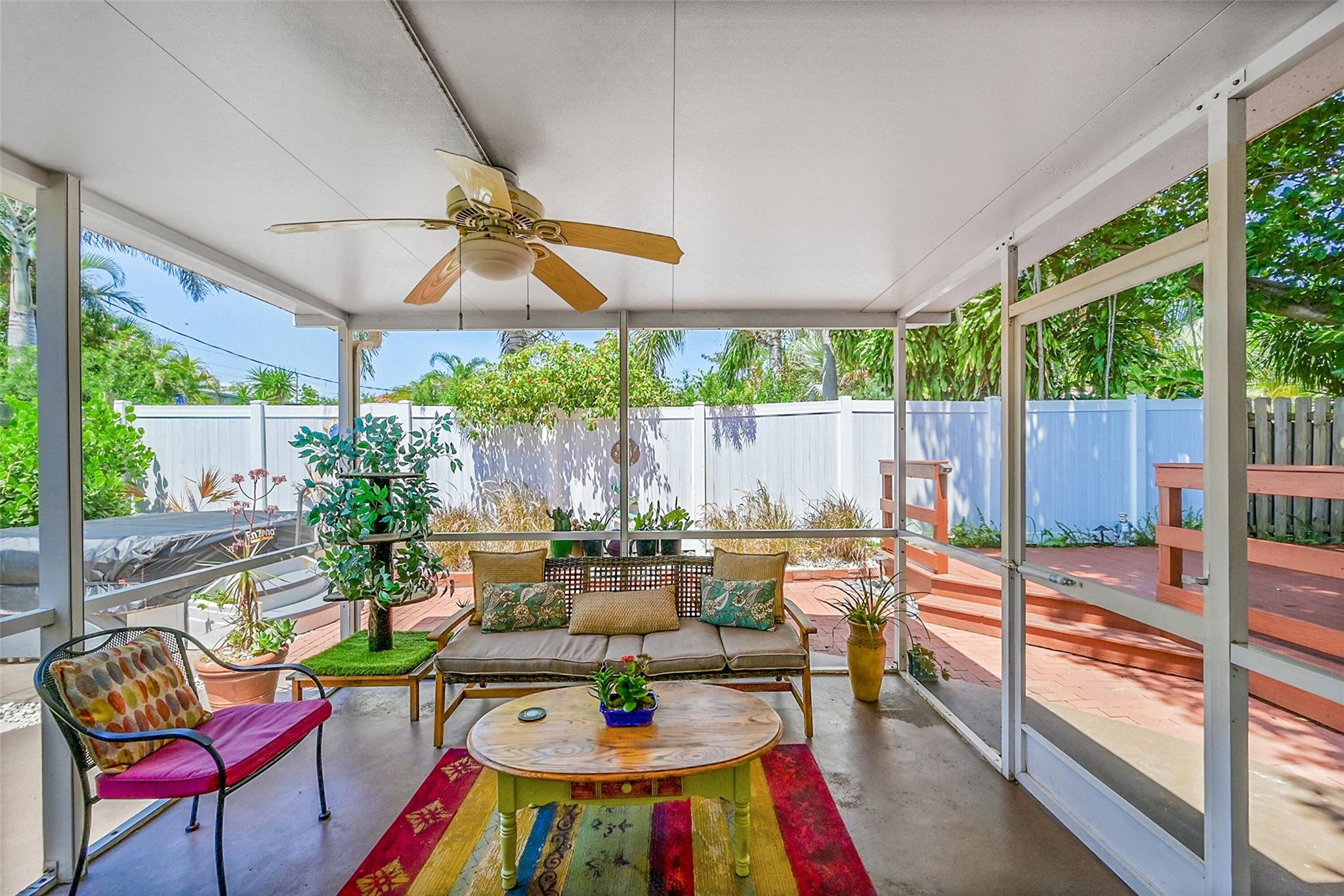 Spacious 2-bedroom, 2-bathroom home east of Federal Highway with nearly 2,000 sq ft under air. Renovated kitchen with granite counters, stainless steel appliances and white shaker cabinetry. Other features include a split floorplan, 2017 ac, updated electrical panel, both bathrooms completely updated, tile throughout, eat-in kitchen, and formal dining room. Easy to convert to a three bedroom home. Enjoy Florida living in the fully fenced tropical backyard with lush landscaping and a jacuzzi. Close to the beach, shopping, and dining.