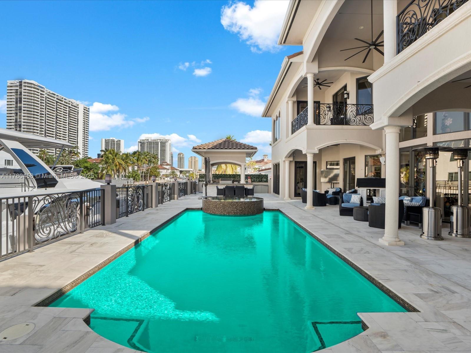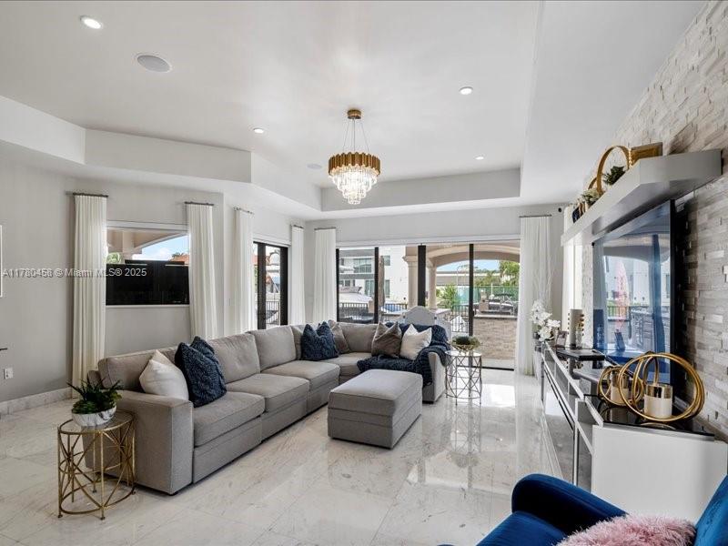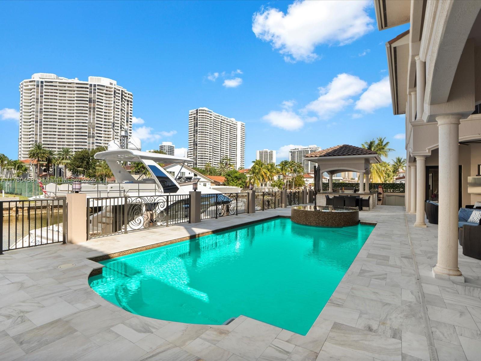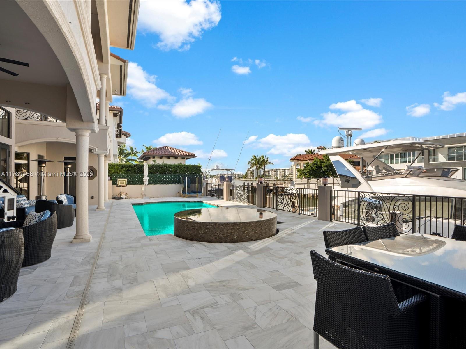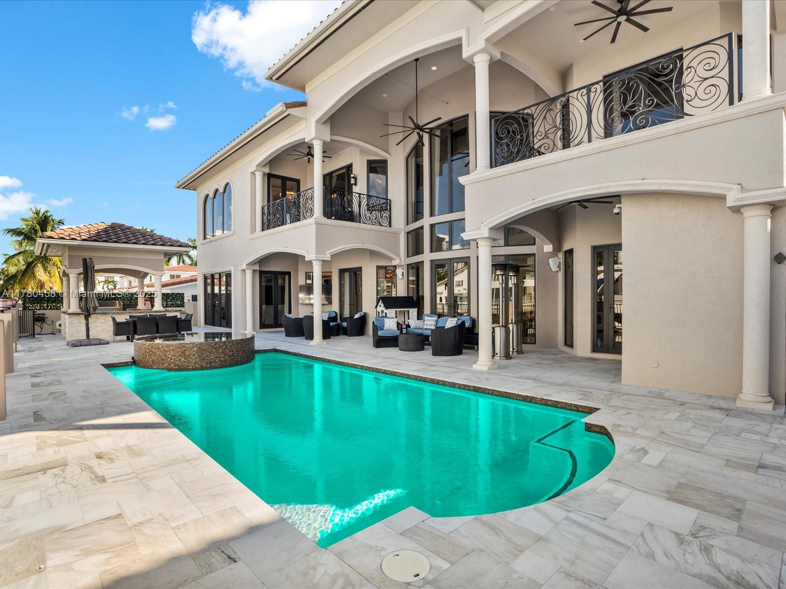 Luxury Waterfront Living with an excellent location close to entertainment, schools and parks. This stunning 6-bedroom, 6.5-bath home features Kalacatta marble flooring throughout, spacious living areas, and a gourmet kitchen with high-end finishes. Enjoy outdoor living with a sparkling pool, outdoor kitchen, and barbecue area, perfect for entertaining. Boating enthusiasts will love the private dock, accommodating up to a 85-foot yacht with direct ocean access with no fix bridges. Located in a prime waterfront neighborhood, this home offers elegance, comfort, and breathtaking views. This luxury home has impact windows throughout, smart home components and high end finishes that will take your breath away including an elevator that takes you to your second floor.