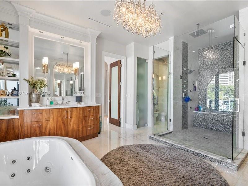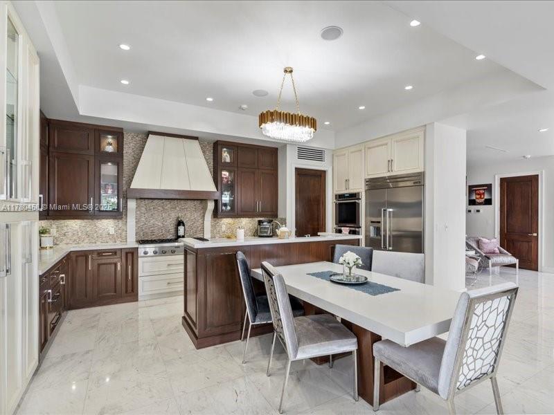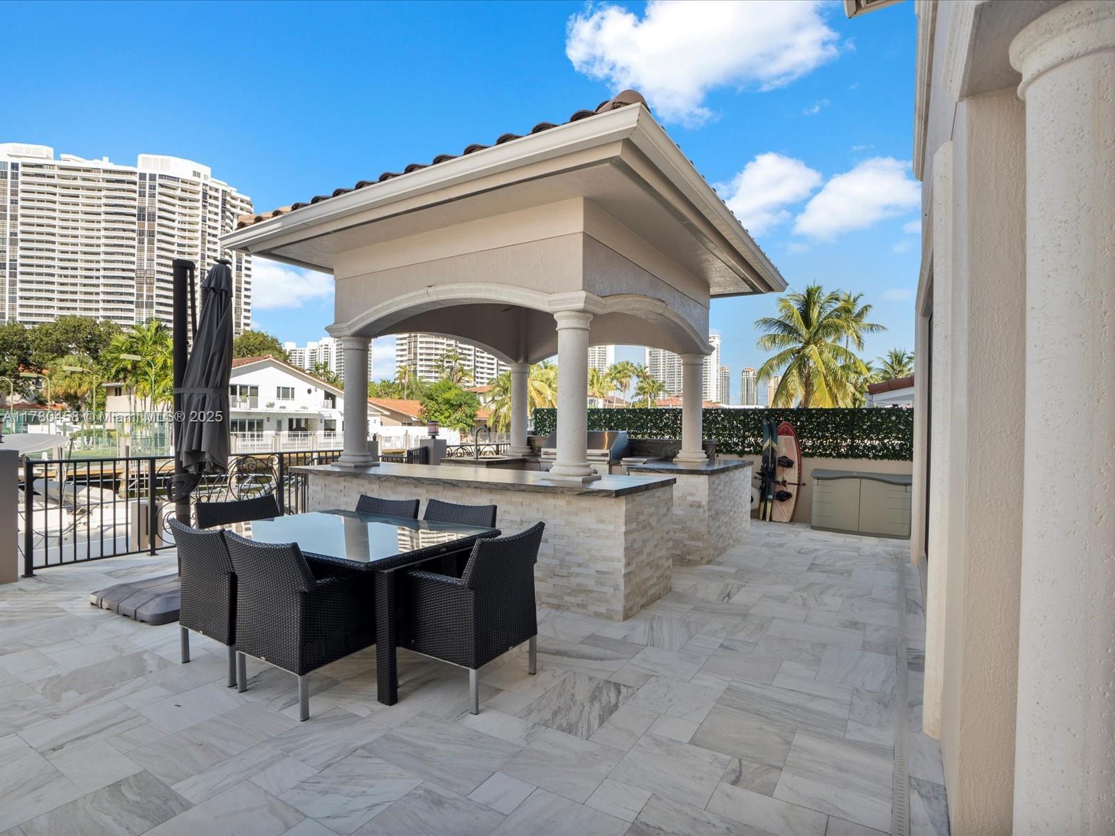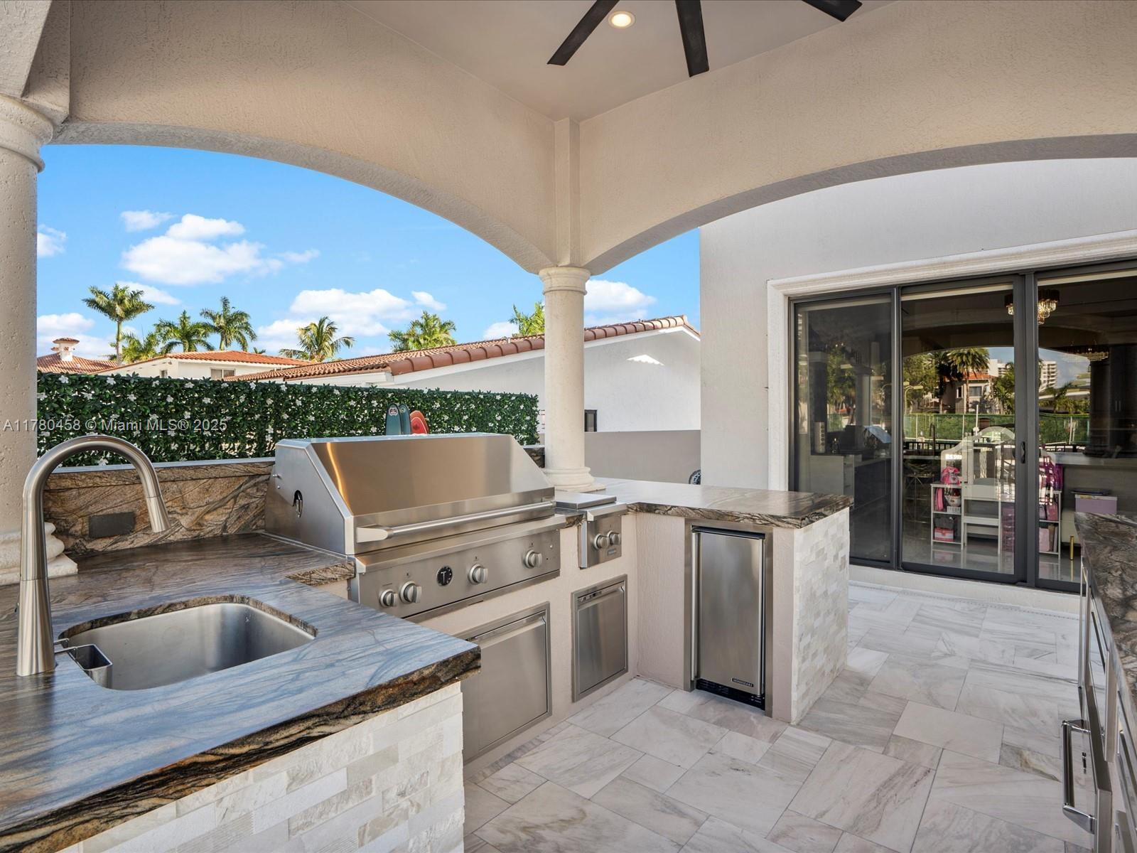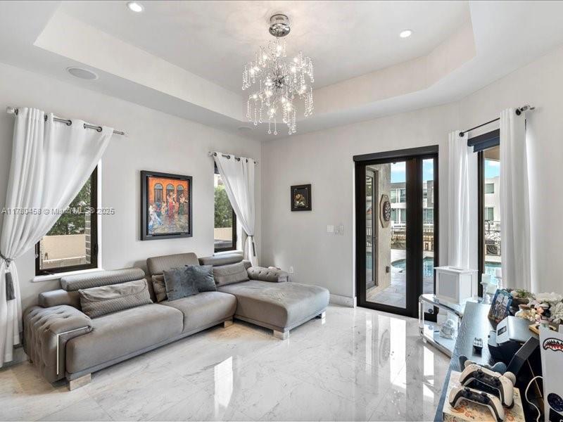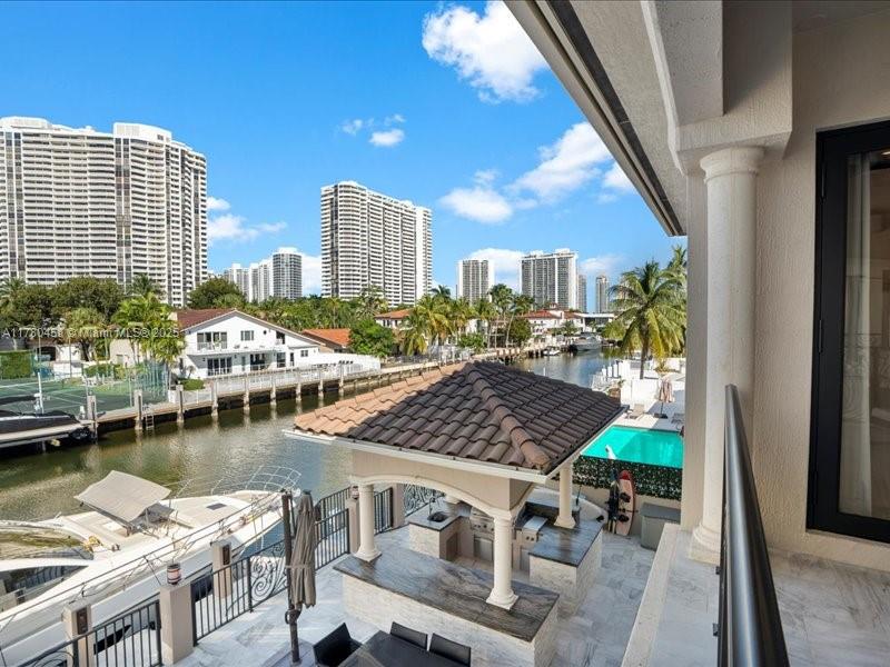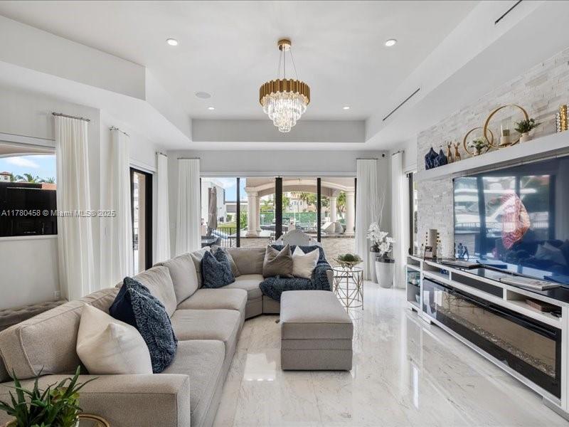 Luxury Waterfront Living with an excellent location close to entertainment, schools and parks. This stunning 6-bedroom, 6.5-bath home features Kalacatta marble flooring throughout, spacious living areas, and a gourmet kitchen with high-end finishes. Enjoy outdoor living with a sparkling pool, outdoor kitchen, and barbecue area, perfect for entertaining. Boating enthusiasts will love the private dock, accommodating up to a 85-foot yacht with direct ocean access with no fix bridges. Located in a prime waterfront neighborhood, this home offers elegance, comfort, and breathtaking views. This luxury home has impact windows throughout, smart home components and high end finishes that will take your breath away including an elevator that takes you to your second floor.