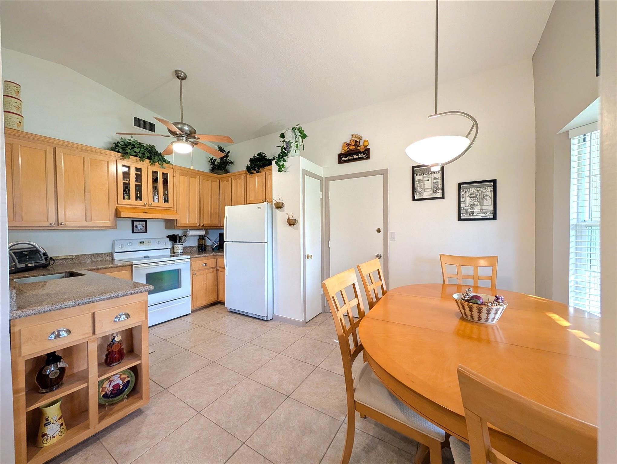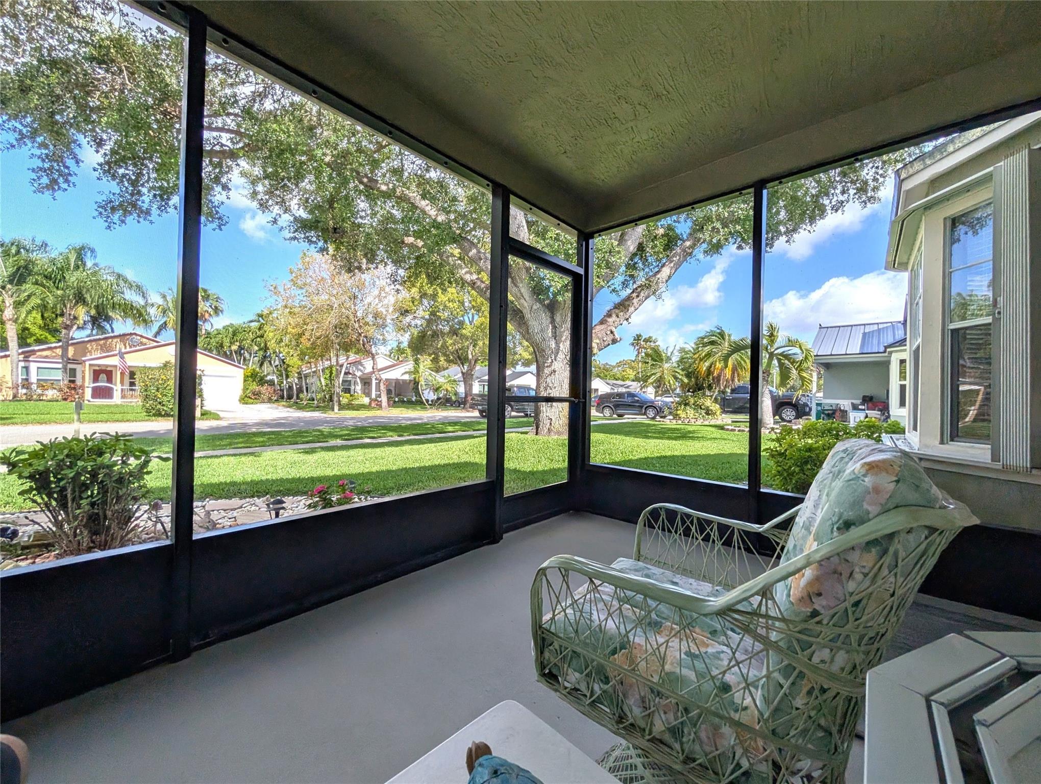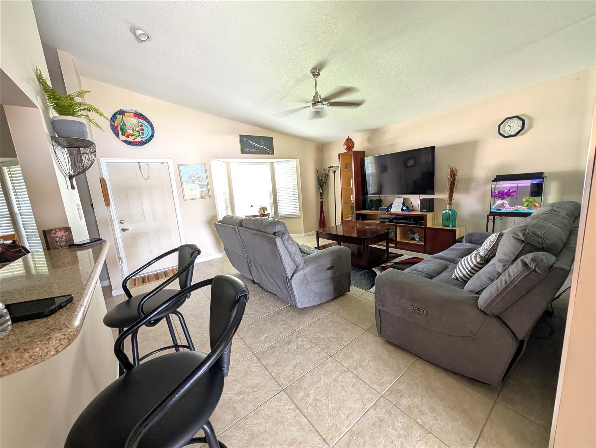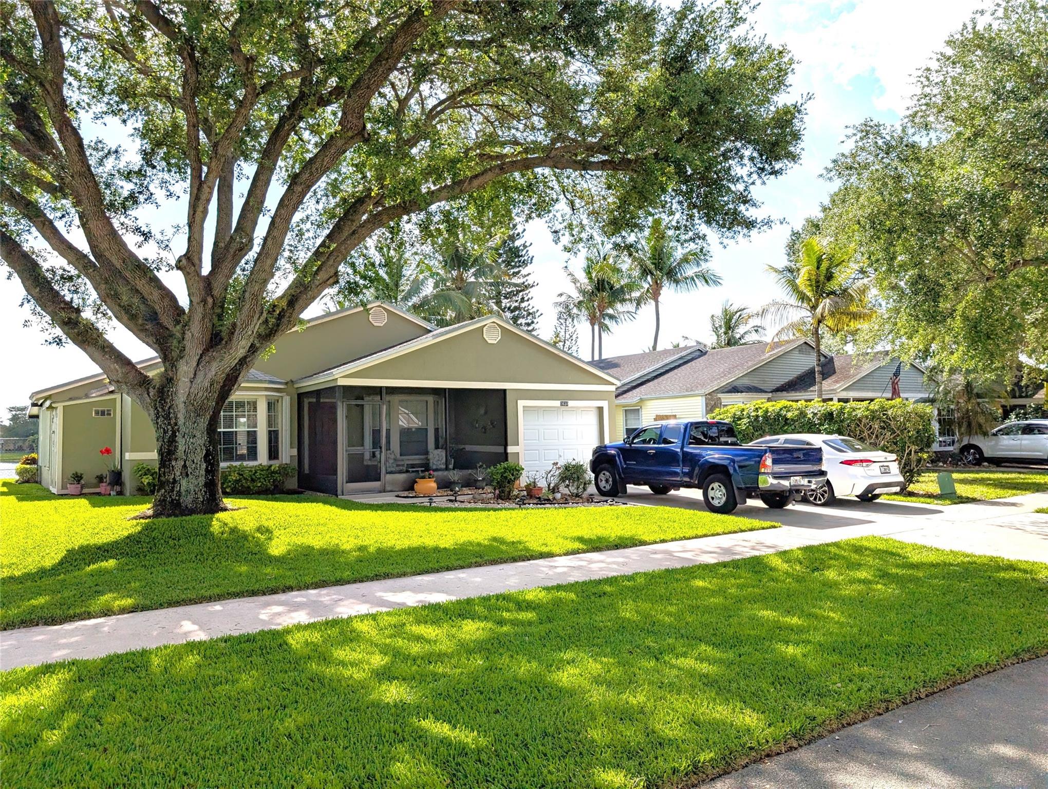 This fabulous home on a generous lakefront lot in a tranquil neighborhood will captivate you with its panoramic water views and soaring vaulted ceilings in the light-filled living room and custom maple kitchen with Silestone countertops. A private lakefront with deck for breezy afternoons and fishing, a huge, fenced backyard with pool potential, and a spacious screened rear porch for year-round enjoyment. Plus, a charming screen-enclosed front porch for morning coffee. Features include bay windows, a long double driveway (fits 4 cars), a timed irrigation system, a storage shed, and an attached garage. Includes accordion shutters and hurricane rated garage doors. Roof replaced in 2017. Fresh and move-in ready! Don't miss this rare opportunity for lakefront living.