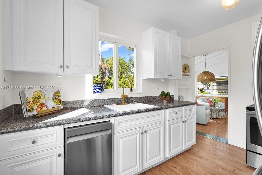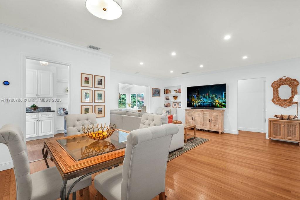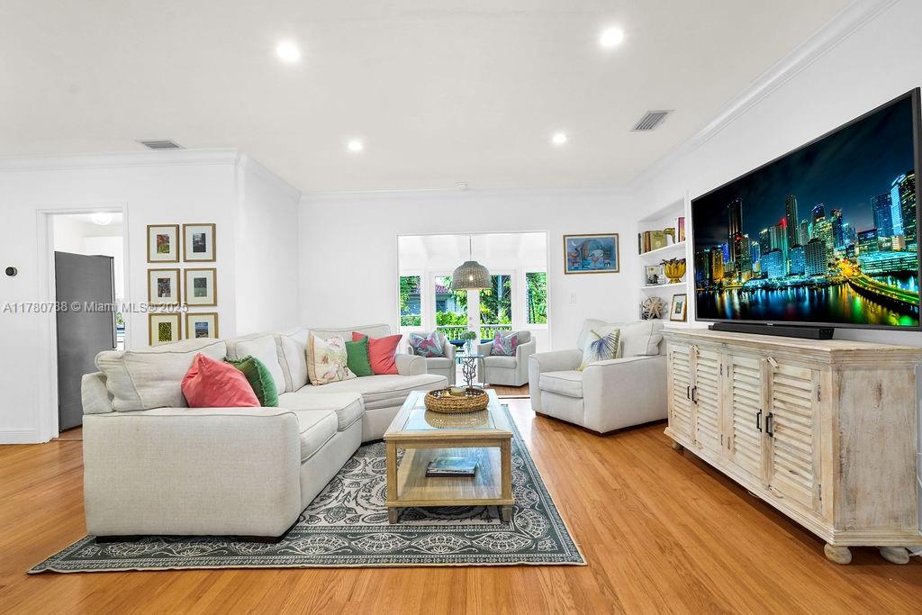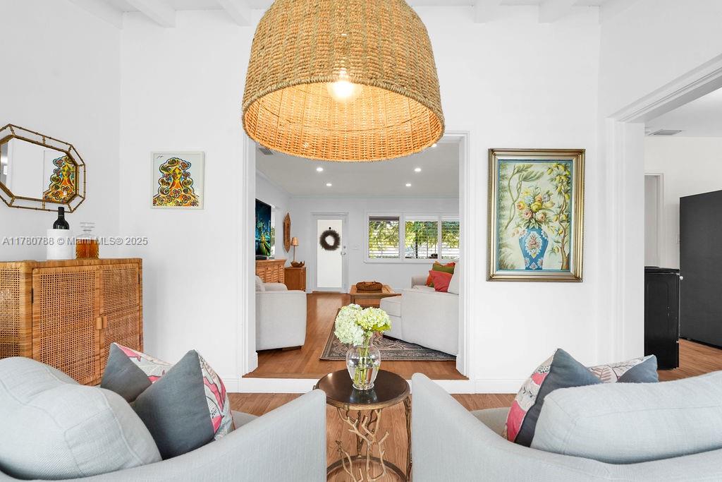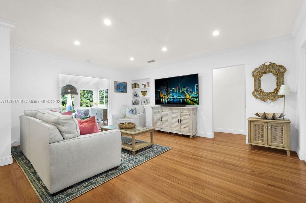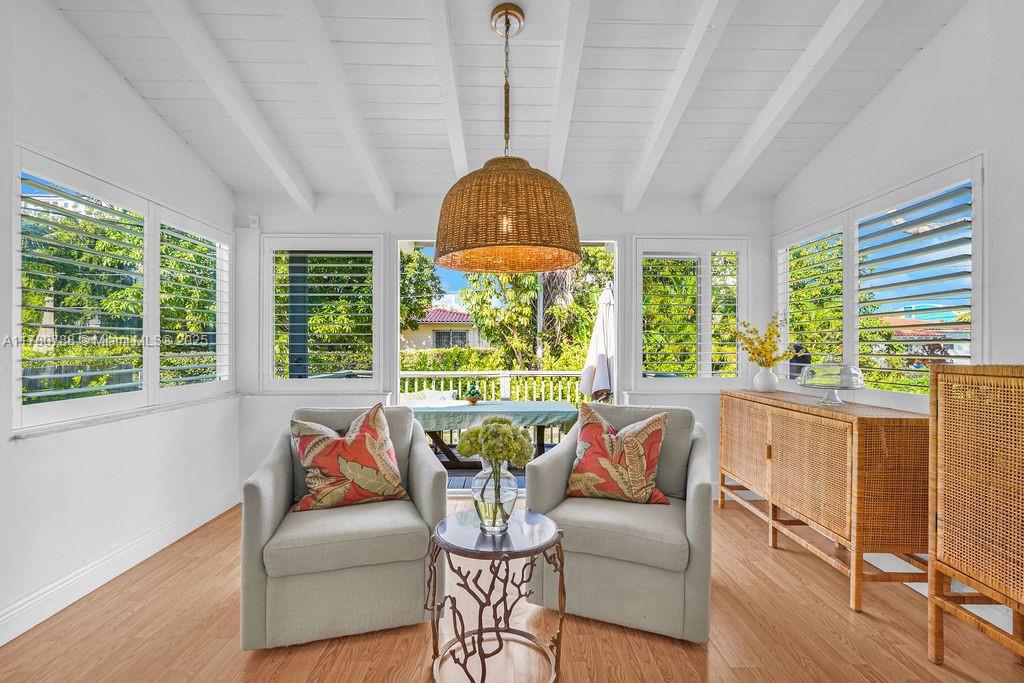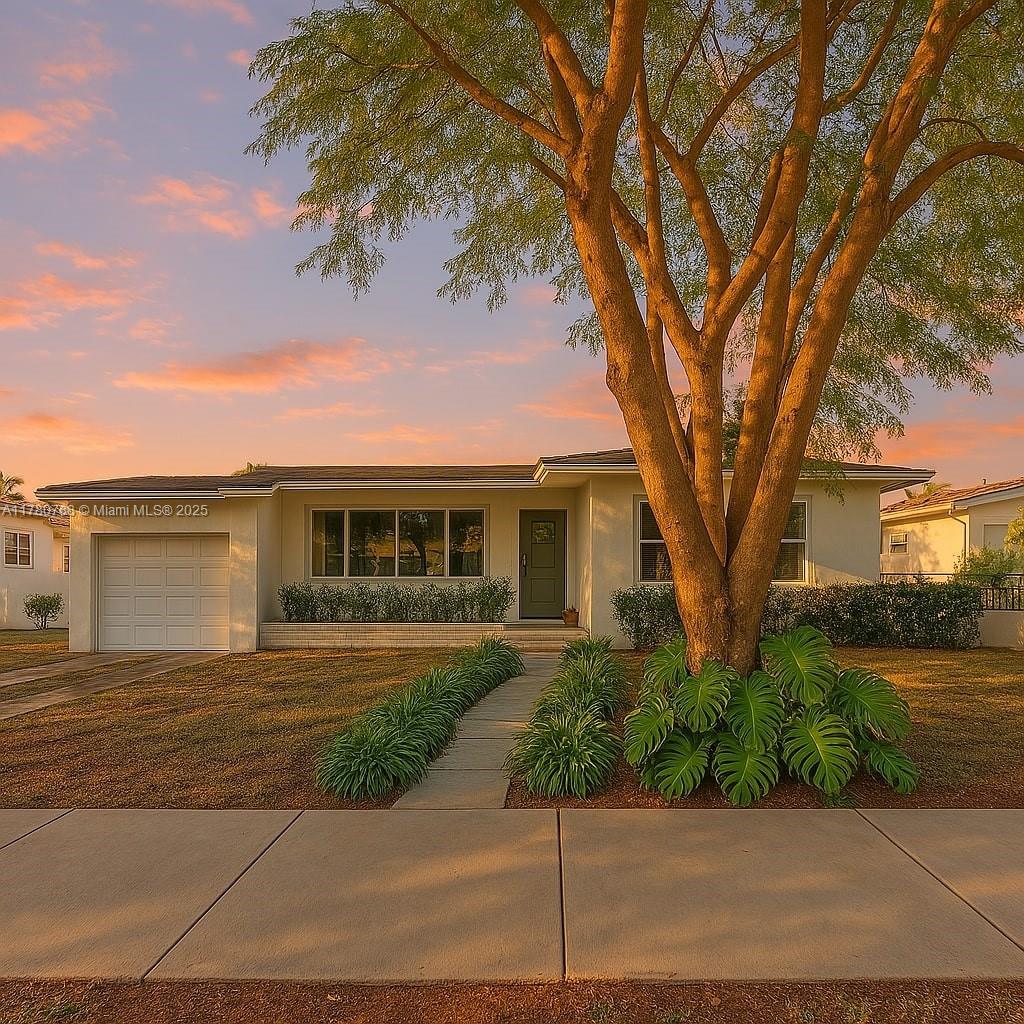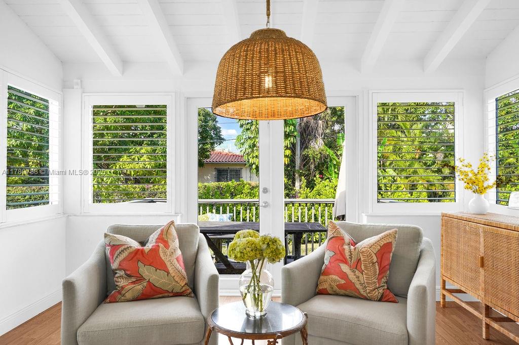 Discover this delightful midcentury modern home in Coral Gables, where classic charm meets contemporary updates. The residence features timeless wood floors and a bright Florida room. Modern enhancements include impact windows, an updated bathroom, and PVC plumbing. Situated on an oversized lot, there's ample space for a pool or future expansion, plus the convenience of a garage. Enjoy the vibrant lifestyle with just a short stroll to The Plaza, high end restaurants, shops, and all the excitement that Coral Gables has to offer.