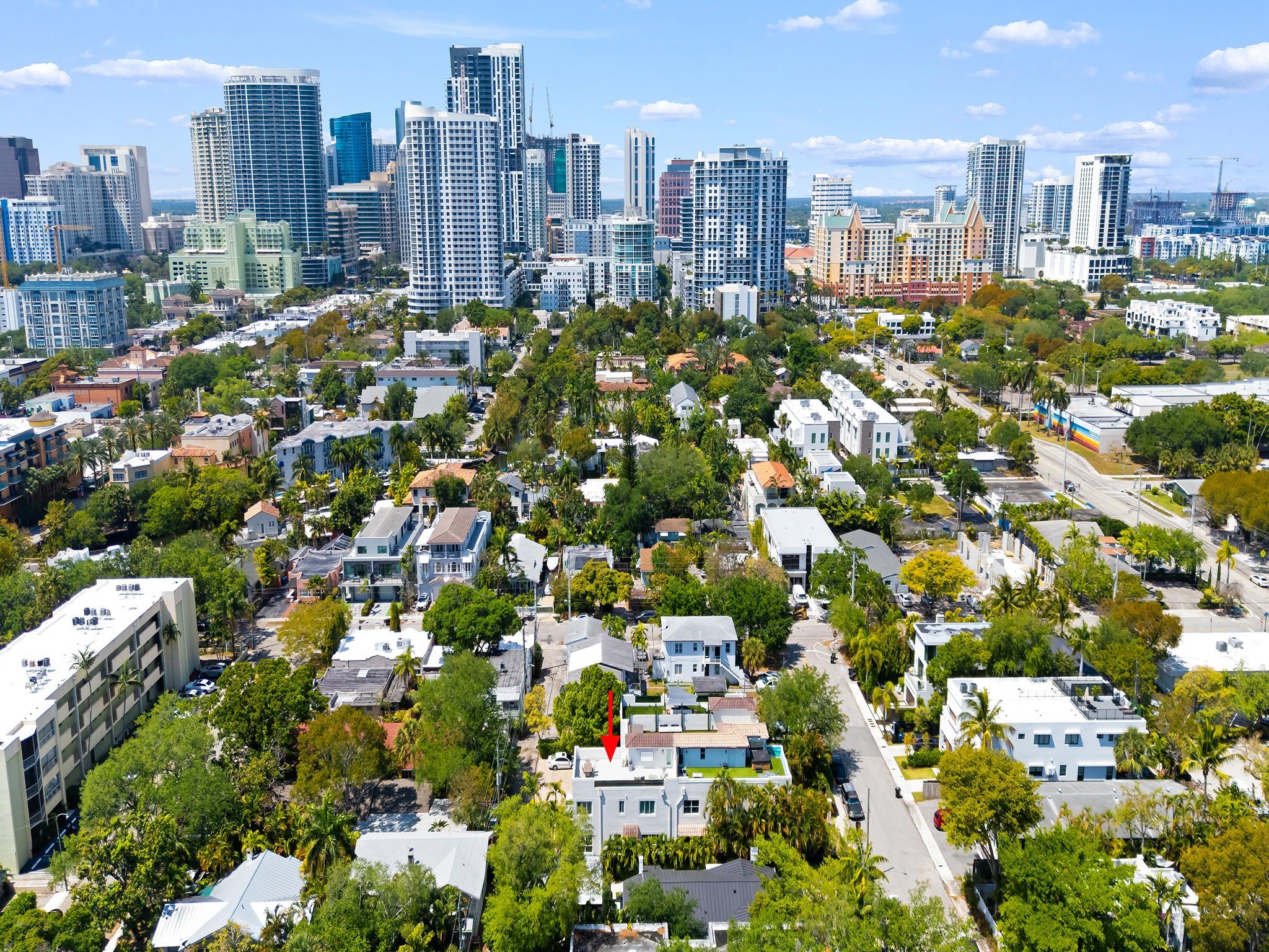 Welcome to coveted Colee Hammock! This rare 2-story corner unit offers wonderful curb appeal just 3 minutes from Las Olas Boulevard. Enjoy a private fenced courtyard with tropical landscaping, garage and driveway parking. Inside features soaring 10ft ceilings, bright open living space, premium wood/tile floors, and a granite kitchen with stainless appliances. The spacious loft office and master bedroom provide comfortable living. The highlight? A stunning rooftop patio with breathtaking downtown skyline views. With low HOA fees and walking distance to Fort Lauderdale's premier dining and shopping, this classic Florida gem offers the perfect blend of location, character, and convenience. Make this exceptional property your paradise!