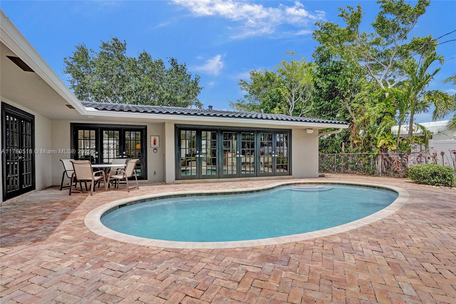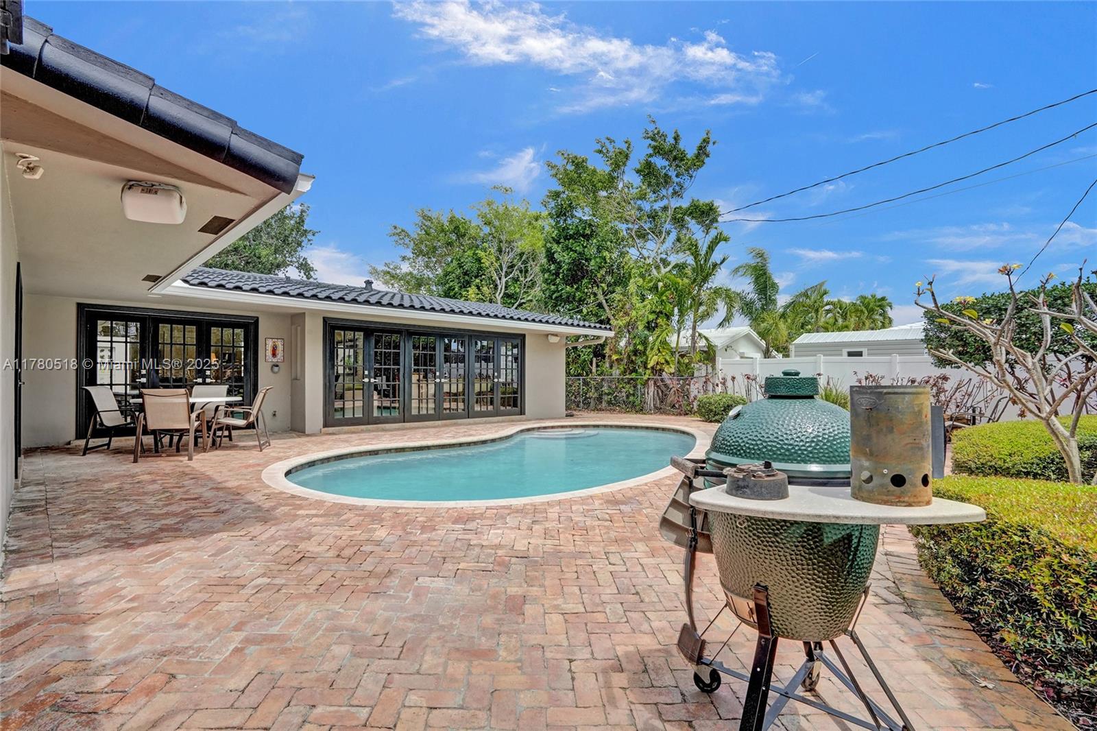 PRICED TO SELL!!! Your private retreat nestled on a peaceful cul-de-sac. Move-in ready home offers 1,749 sf under air on a spacious 10,144 sf lot with mature trees and lush landscaping. Enjoy an open floor plan that connects the great room, dining, and Italian-inspired kitchen -ideal for entertaining. French doors span the back of the home, filling it with natural light and opens to the outdoor sanctuary. Primary suite features tranquil views and poolside access. 4 bedrooms, built-ins, impact windows, and newer systems, this home blends comfort and flexibility. Step outside to a Chicago brick patio, landscaped gardens, pergola, and heated pool—perfect for relaxing or entertaining. Located between Coral Ridge Country Club and Bayview Park, and minutes to Lauderdale-by-the-Sea.