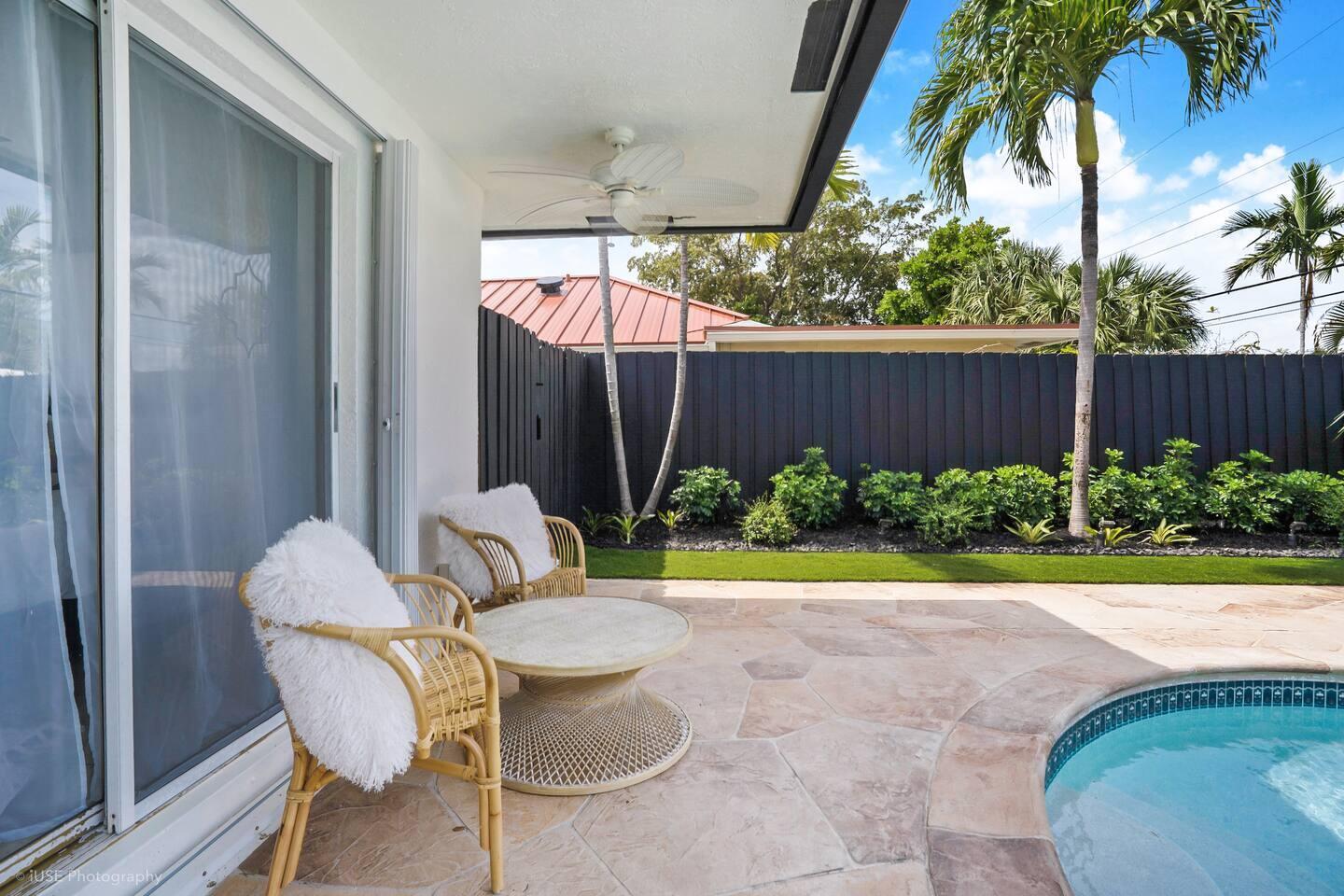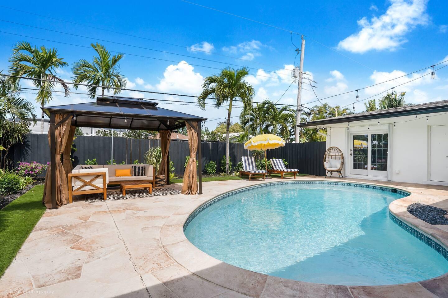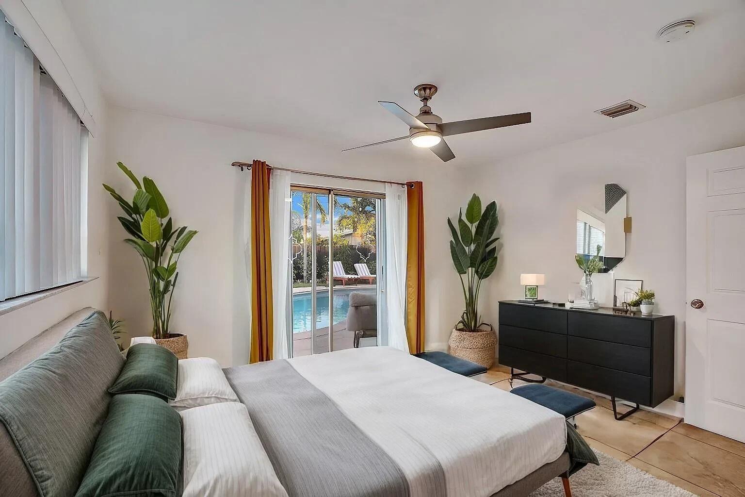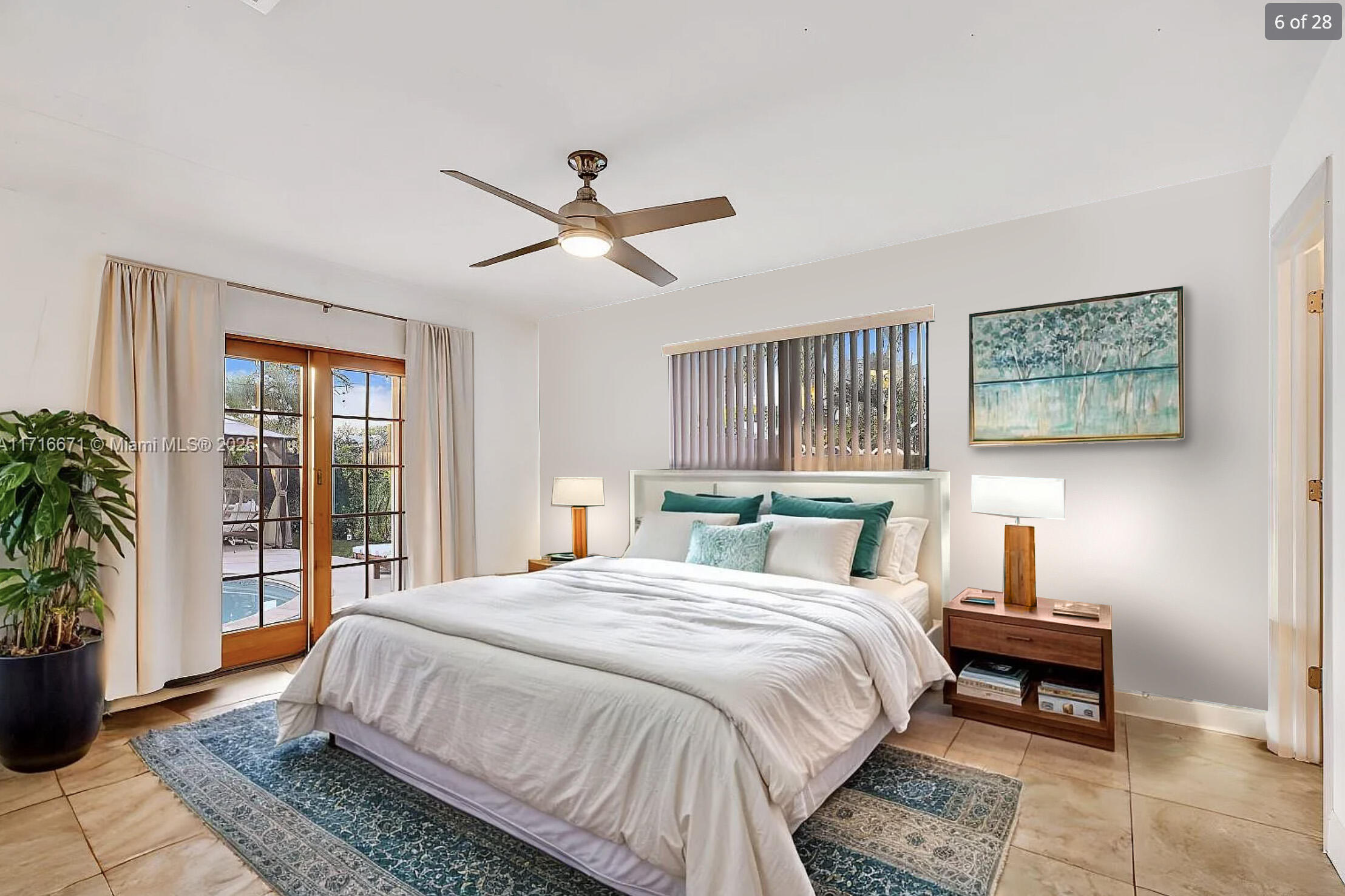 Welcome to this beautifully maintained 1-story home in the highly sought-after neighborhood of Imperial Point, offering a total of 2,939 sqft of living space and no HOA restrictions. This home features 5 bedrooms and 3 full bathrooms, including a private mother-in-law suite with 2 bedrooms, 1 bath, and its sliding door entrance leading to the pool - perfect for guests or multigenerational living.Enjoy Florida living at its finest with a resort-style pool area, complete with a cabana bath and a master suite featuring French doors opening directly to the patio. The kitchen is equipped with ample cabinetry and appliances, and tile flooring runs throughout the entire home for easy maintenance and a cohesive look.