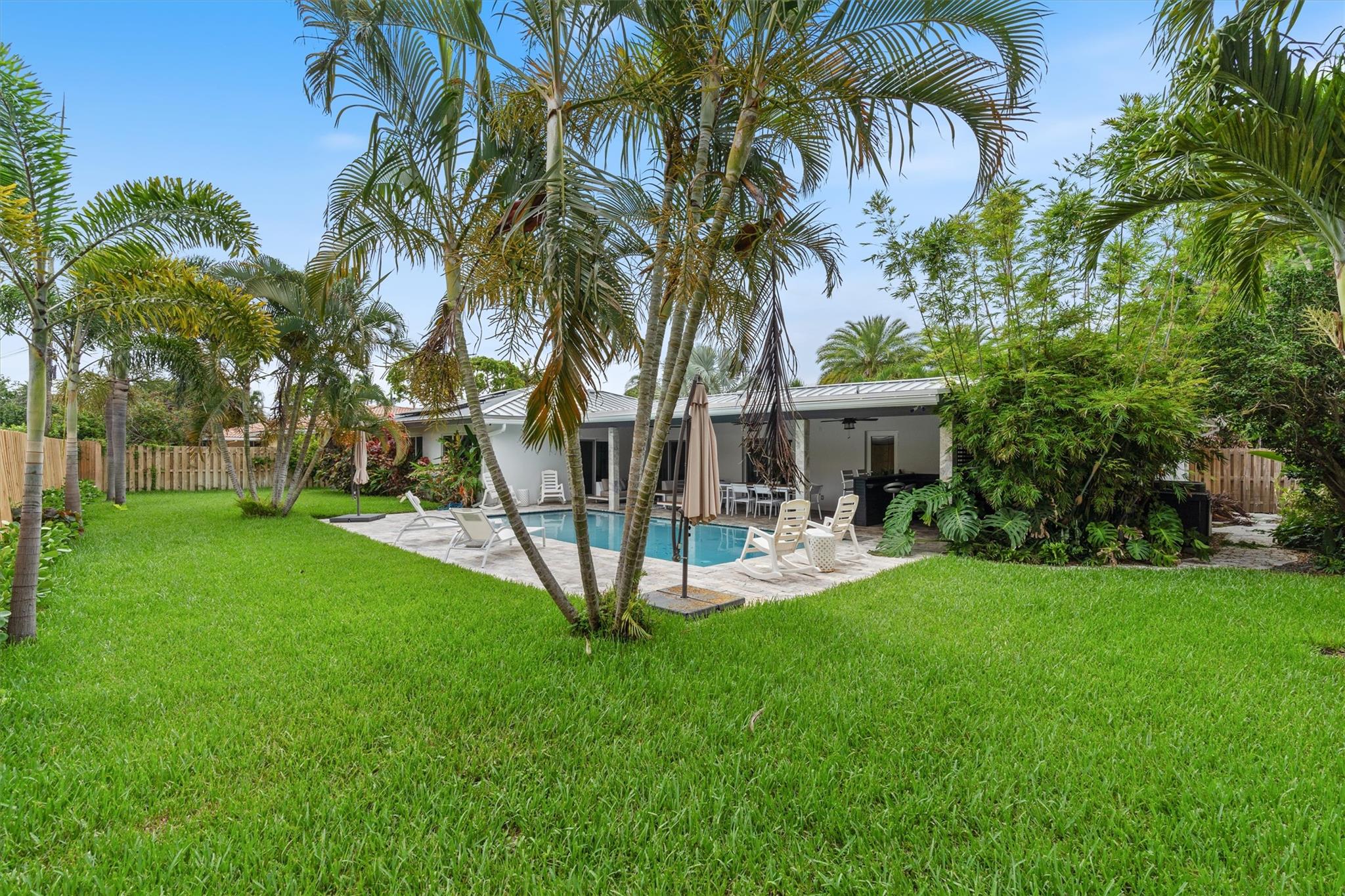 Welcome to your stunning 3-bedroom and a den retreat in Coral Ridge Country Club, just minutes from the beach. Situated on one of the largest lot on the street, this home offers a rare, unobstructed view of a majestic city-owned banyan tree across the street. Enjoy a sparkling saltwater pool in the private backyard, ideal for relaxation and entertaining. Recent upgrades include a new roof with solar panels, brand new electrical system, updated landscaping, and a beautifully renovated kitchen. Inside, you’ll find three spacious bedrooms and a versatile den/home office with a private entrance, perfect for guests or remote work. The open-concept living areas are filled with natural light, creating a warm and inviting atmosphere throughout.