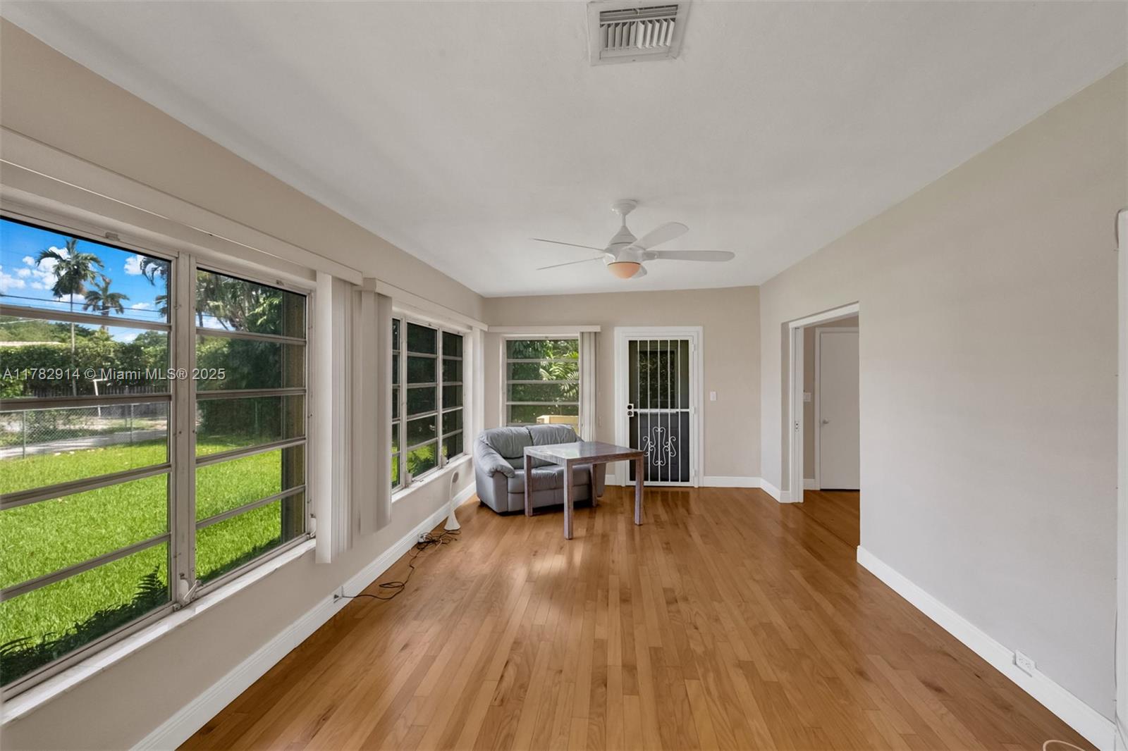 3 bedrooms and 2 full baths on a quiet street in Miami Shores. 10,200 sq ft lot with room for a pool, expansion, or both. Attached is one car carport and storage room. Wood floors, high ceilings, open floor plan. Big Florida room overlooking the yard. Great price for Miami Shores.