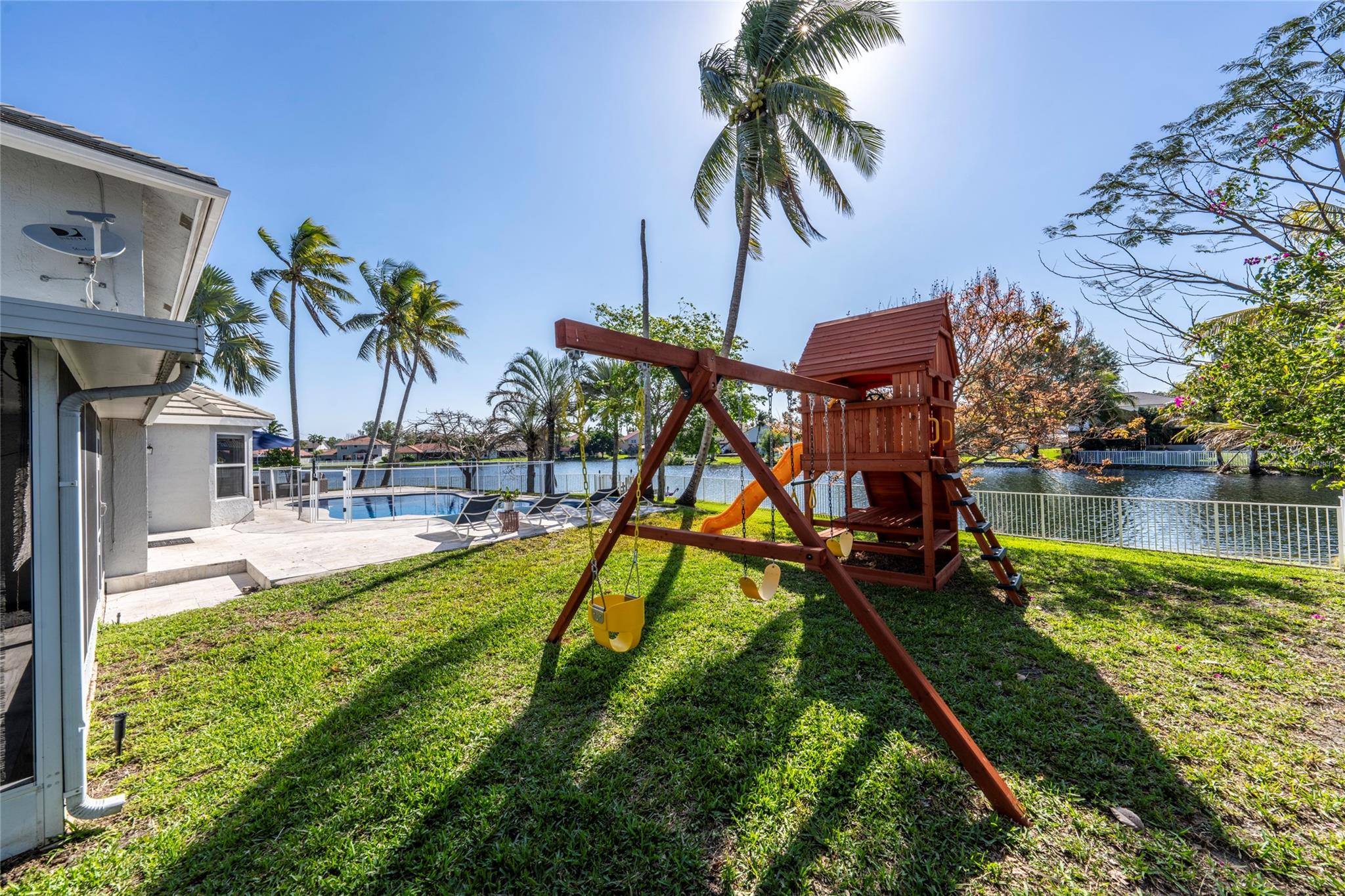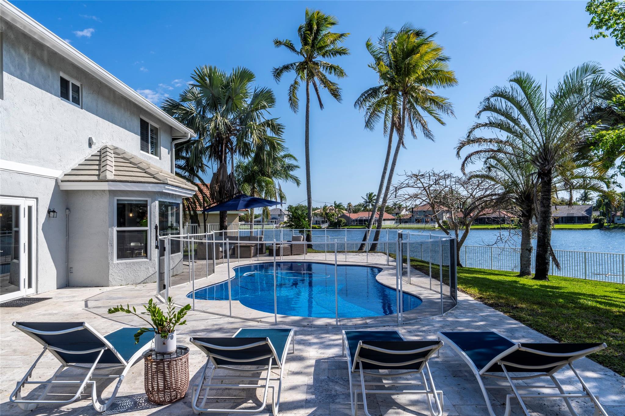 Highest & Best due 4/29 @ 11AM Stunning fully renovated 4BR/2.5BA + OFFICE home in Davie’s most coveted family neighborhood. Chef’s kitchen w/ custom cabinetry & quartz counters, full wood-look tile (no vinyl!) + sound protection between floors, recessed lighting throughout, motorized window treatments, & plantation shutters. All impact windows/doors, 2 A/C's, indoor laundry room, & modern designer finishes throughout. Primary suite upstairs w/ x-large walk in closet & modern ensuite bath. Huge oversized lot w/ 160' of premium water frontage, Hawaiian blue pool, travertine deck, screened/covered patio & the best lake views in the neighborhood. Low-traffic street, close to parks, A-rated schools, shopping & dining. Immaculately maintained, move-in ready—perfect for family living. X flood!
