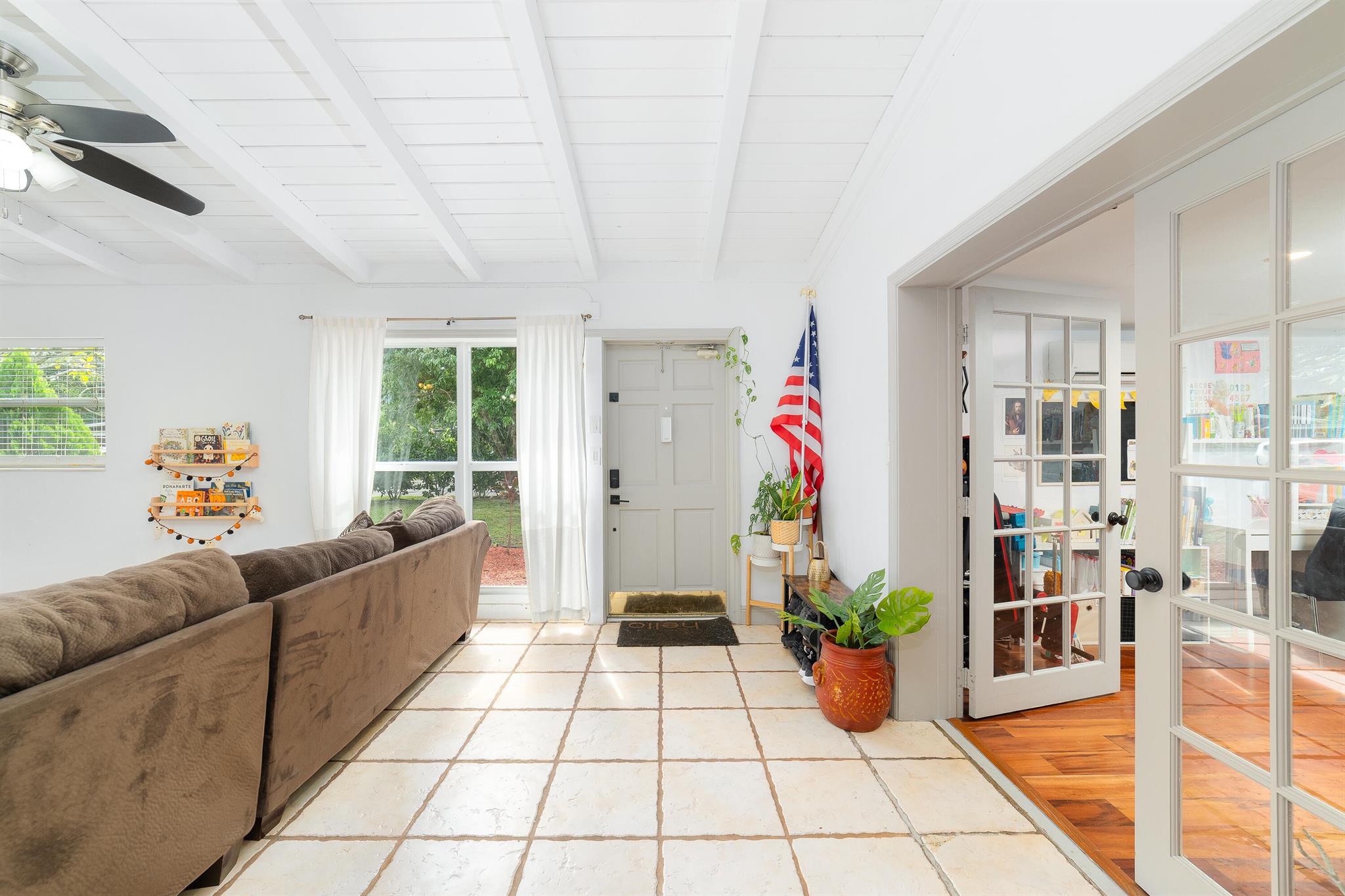 Welcome to your dream home in the desirable RIVERLAND area! This stunning 4-bedroom PLUS a den, 4-bathroom single-family residence boasts impressive vaulted ceilings adorned with exposed wood beams, creating an inviting atmosphere. The beautiful kitchen features a large pantry and natural light pours in through stylish skylight domes. Retreat to the spacious primary bedroom, complete with a walk-in closet and elegant wood floors. The property showcases tile, wood, and terrazzo flooring throughout for easy maintenance. A versatile bonus room and one bedroom with a separate entrance offer endless possibilities. Enjoy outdoor living in the spacious fenced yard, plus the convenience of two large driveways. Don't miss this opportunity!