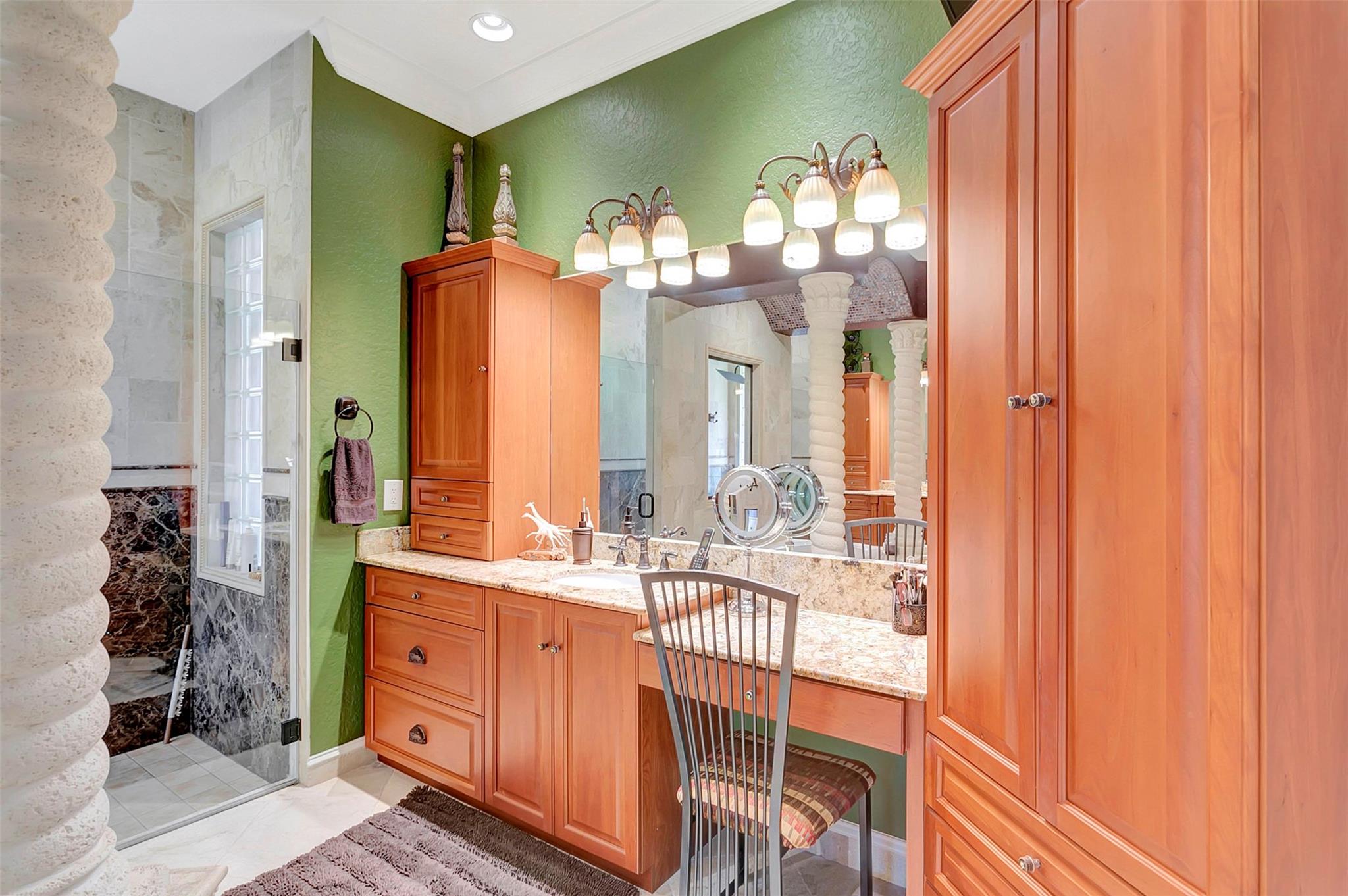 Come check out this piece of paradise! Main house is a beautiful 5 bedroom, 4 1/2 bathroom with gated entrance, 24 in marble floors, recently upgraded kitchen, and a detached 3 car garage. The Primary bedroom features a walk in shower, jacuzzi tub, walk in closets with built ins, and a wood burning fireplace. The family room and kitchen have tranquil views of the saltwater pool, oversized spa, open patio, and gas fire pit in the backyard. You can also enjoy your own movie theater with built in speakers and screen. Don't forget the storm shutters, generator, security cameras, and 3 new AC units. Guest house is a detached 2 bedroom, 2 bathroom house with its own gated entrance, extra parking for an R/V or boat with power pedestal, and 3 car garage with a half bath and additional storage.