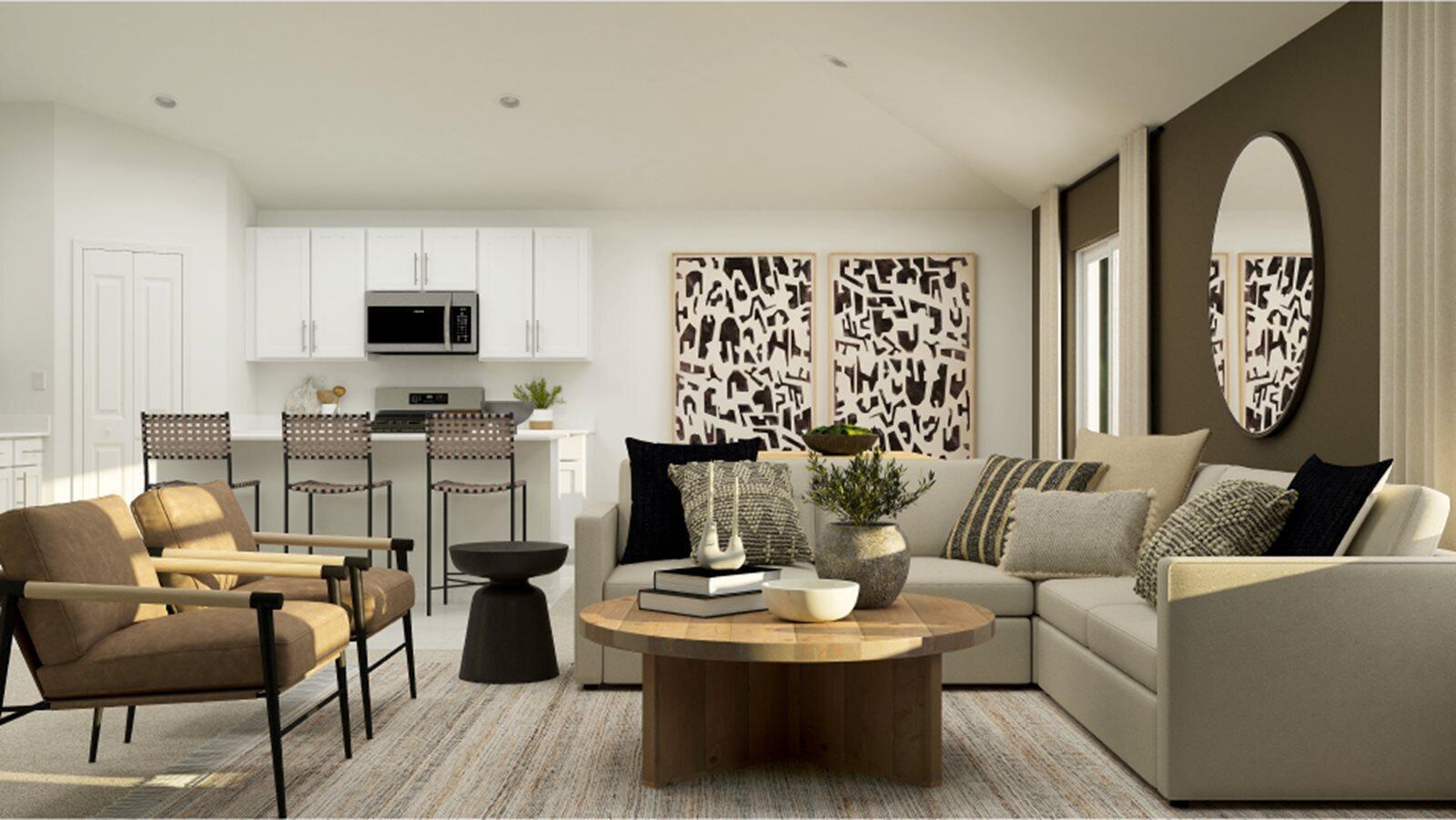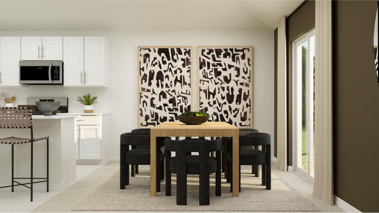 This new single-story home is a modern take on a classic design. Down the foyer is a spacious and open-plan family room which has direct access to the cozy dining room, well-equipped kitchen and attached patio, perfect for everyday living. In a private corner is the owner's suite with a convenient adjoining bathroom, while on the opposite side of the home are three secondary bedrooms to offer restful retreats.Prices, dimensions and features may vary and are subject to change. Photos are for illustrative purposes only.