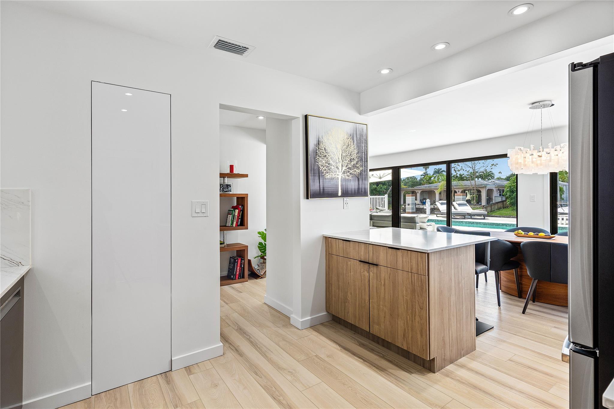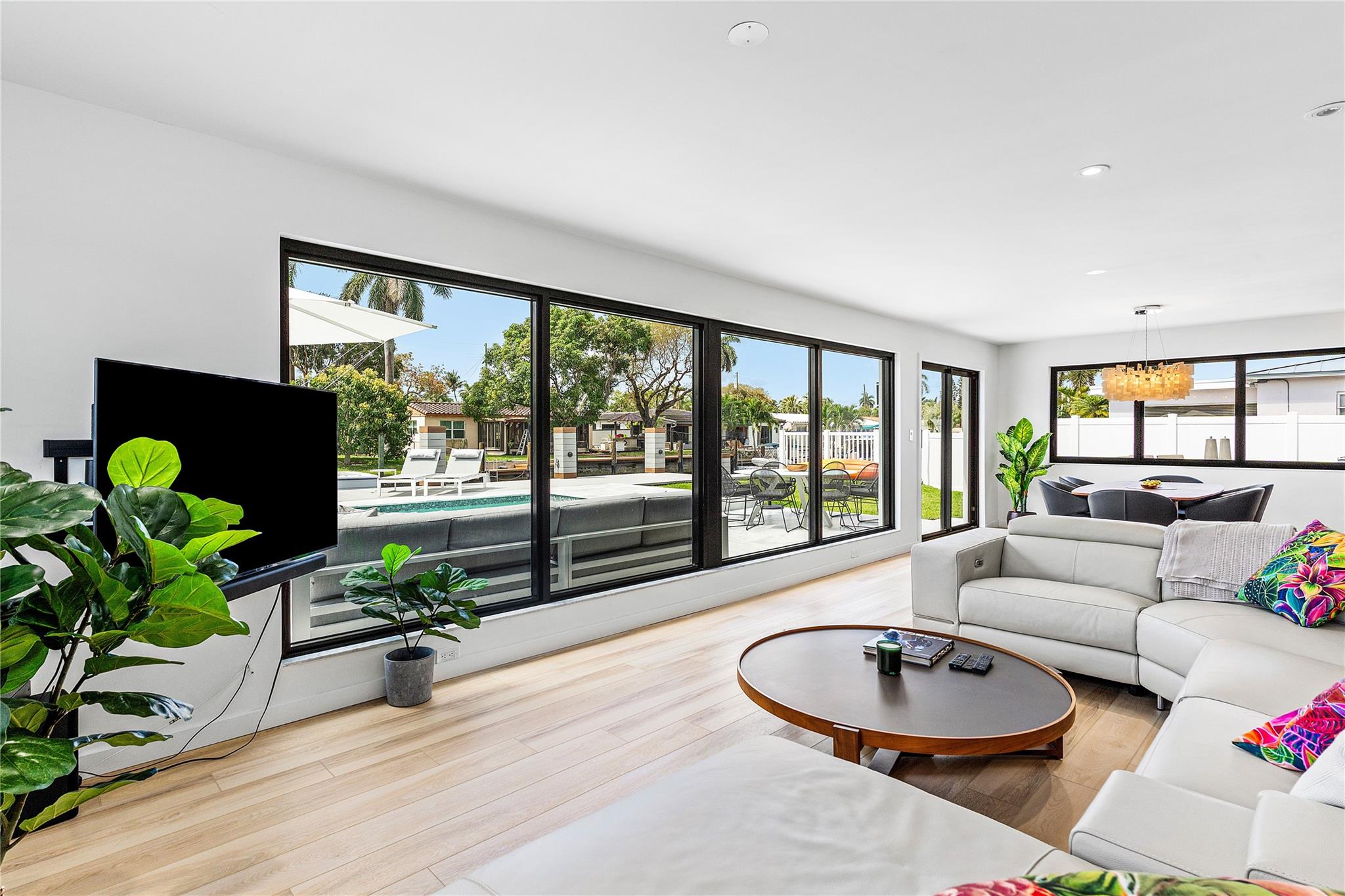 Remodeled Waterfront Pool Home w/65' Waterfront & No Fixed Bridges+oversized 2-Car Garage. This turnkey residence has been remodeled & thoughtfully designed for comfort, style, & functionality. Raised & reinforced seawall with new pilings, 50A electric, oversized composite deck with step-down area. Impact windows & doors throughout, new flooring & high-end finishes. Spacious oversized laundry & storage area, rare oversized 2-car garage, ideal for storage, toys, or a workshop. The backyard is your own private oasis with a newly built(2023) BBQ area, state-of-the-art heated pool(2023) & ample space for entertaining or relaxing under the South Florida sun. Nearby attractions; Intracoastal, beaches, top-rated schools, dining, & downtown Ft Lauderdale/Las Olas.