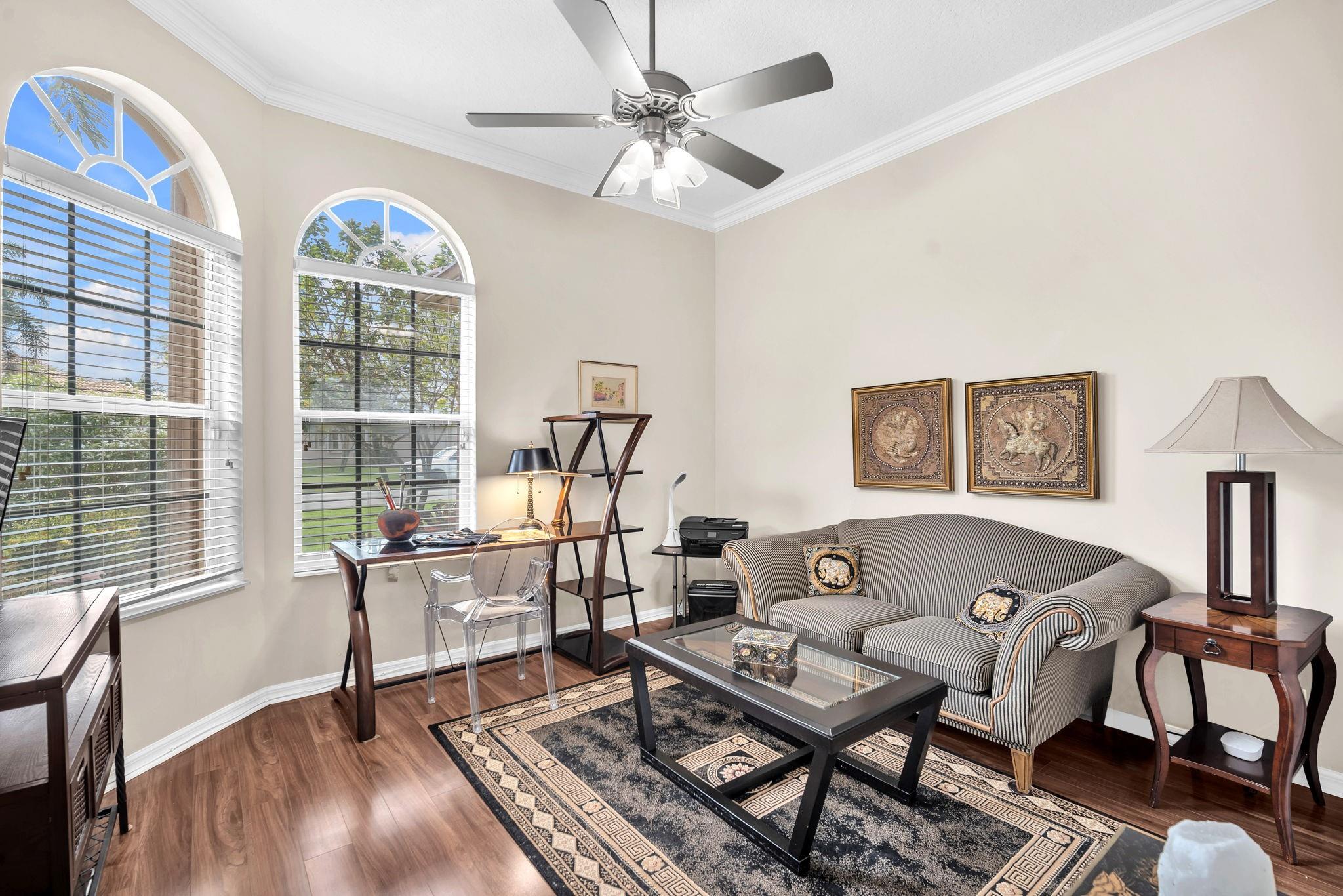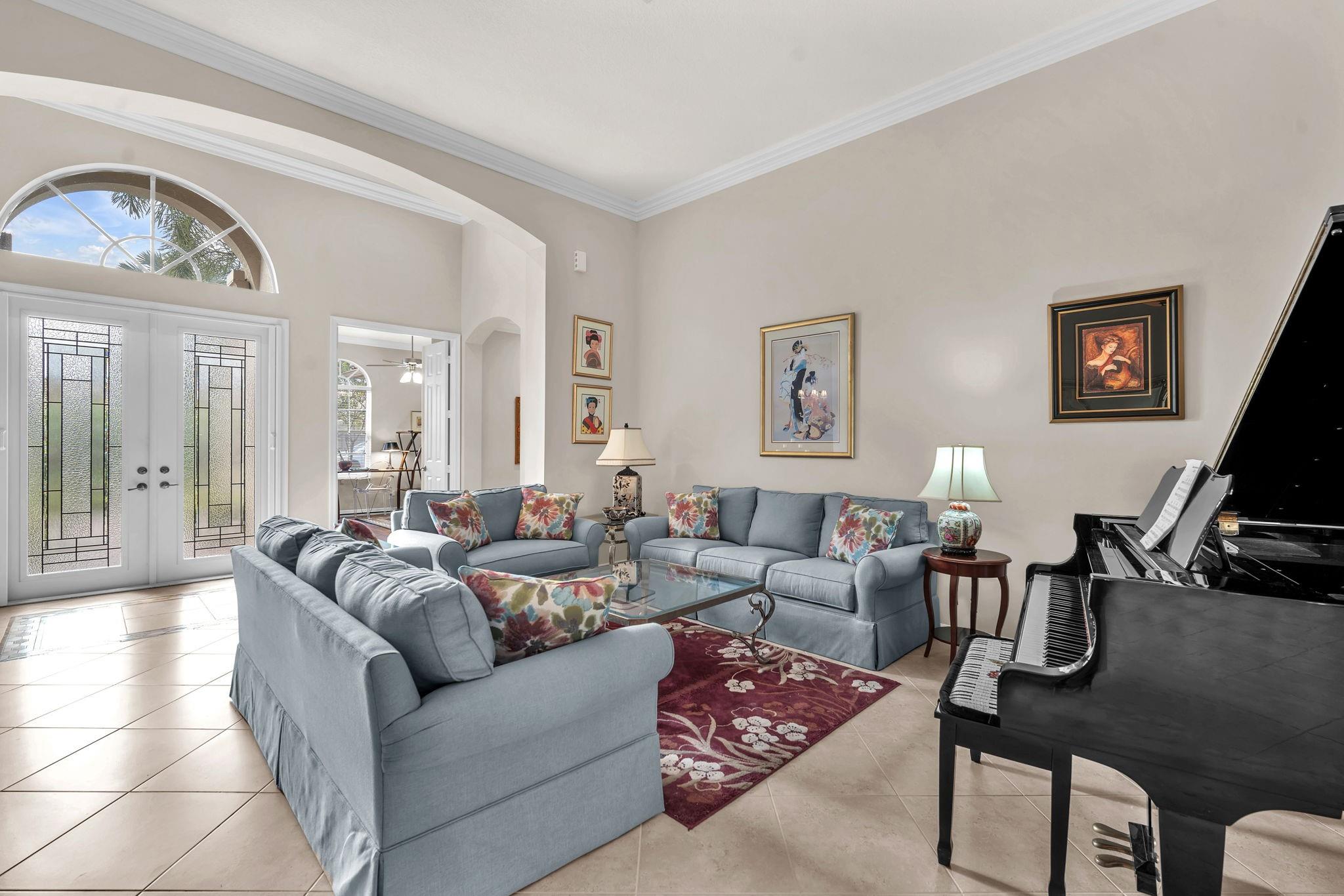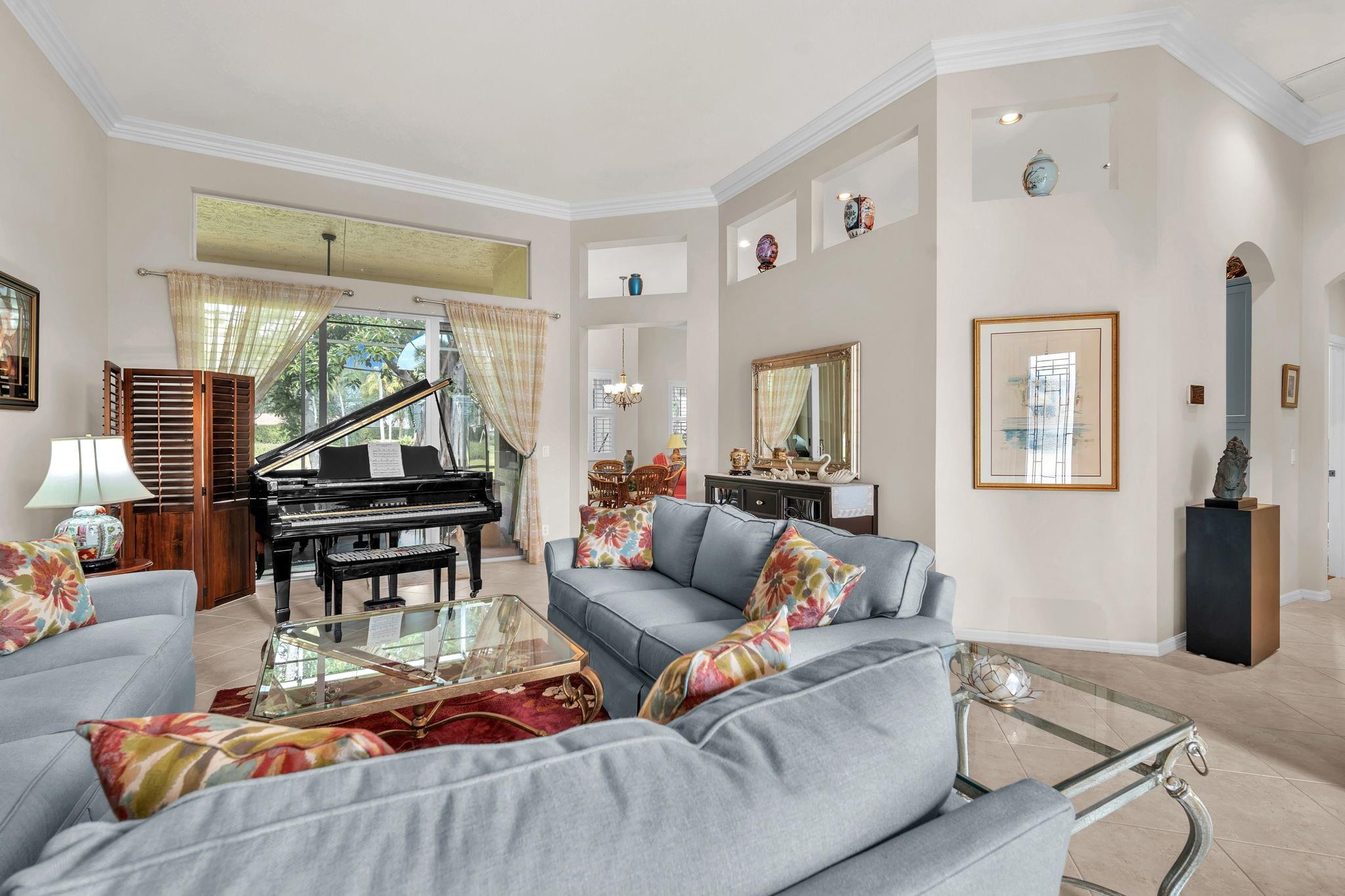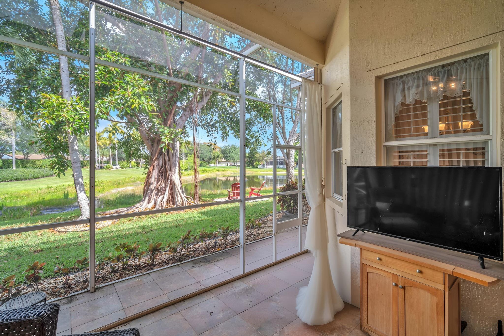 Welcome to your new home in the prestigious, gated 55+ community of Bellaggio! This spacious home offers an open and bright floor plan with high ceilings, neutral finishes, and plenty of natural light. The updated kitchen features granite countertops, wood cabinetry, and stainless-steel appliances—perfect for entertaining. The primary suite includes dual closets and a spa-style bath with separate tub and shower. Enjoy serene lake views from your covered, screened patio with lush landscaping for added privacy. Accordion shutters provide peace of mind. Bellaggio offers resort-style amenities including indoor/outdoor pools, a café, fitness center, 10 Har-Tru tennis courts, pickleball, bocce, and a newly renovated clubhouse. Close to shopping, dining, and beaches—your Florida lifestyle awaits!
