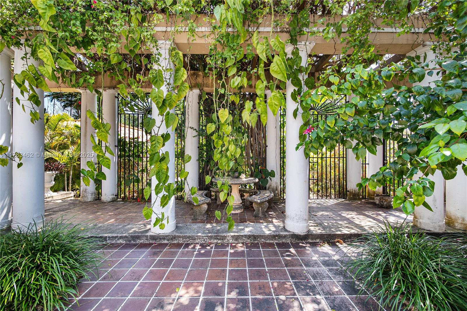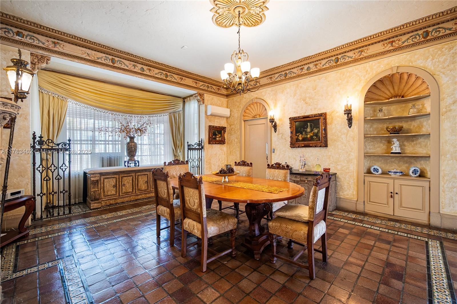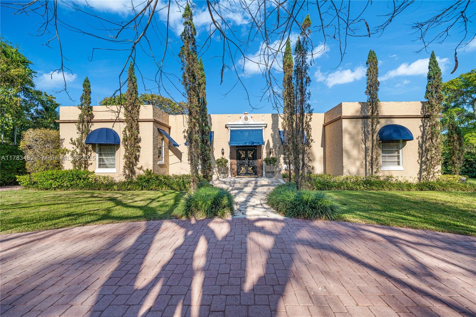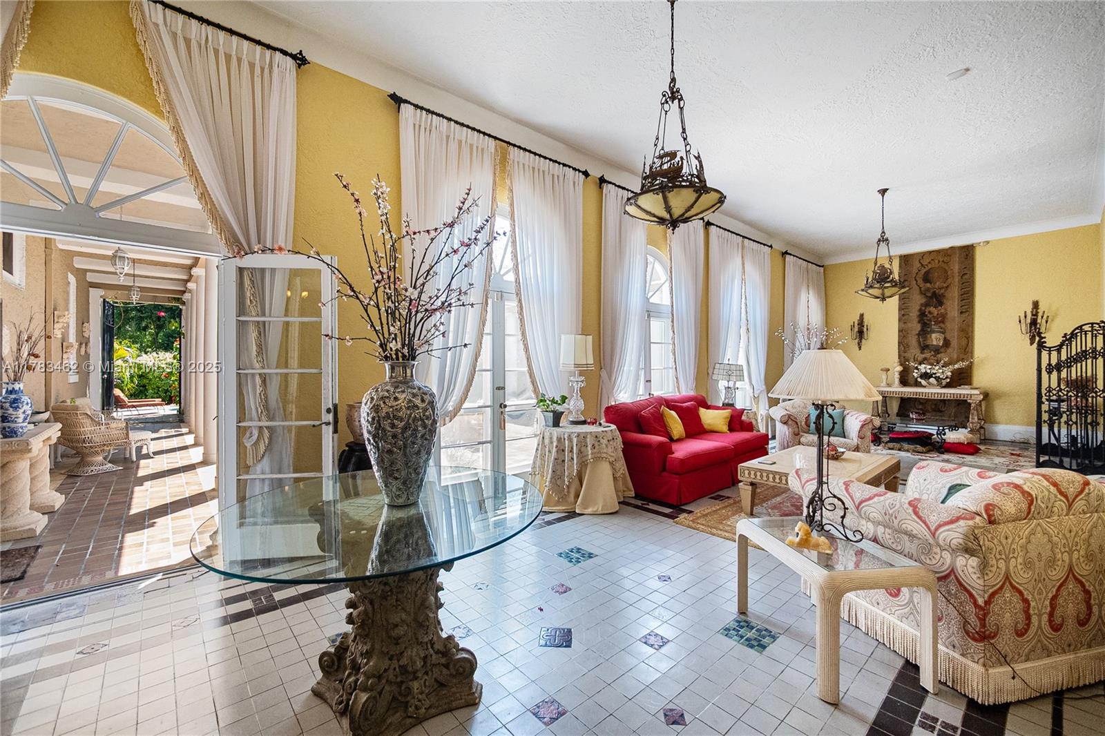 A rare opportunity to own a historic Italian villa designed in 1921 by famed architect August Geiger. Set on a 38,000+ SF lot, this one-of-a-kind home spans over 7,000 SF and was originally commissioned to replicate a grand Pompeiian villa. Surrounded by lush lawns and a large pool area. The elegant single-story layout features soaring 12' ceilings, expansive rooms, and impeccably preserved original details. The iconic 16-point Star of Macedonia welcomes you inside, where you’ll find 4 spacious bedrooms, an oversized primary suite, a dramatic great room, formal dining and a large adjoined garden room/loggia salon. A generous kitchen flows into a separate secondary kitchen/prep area, seamlessly connected to private staff quarters. A refined composition of history and architectural heritage. Cash Only.