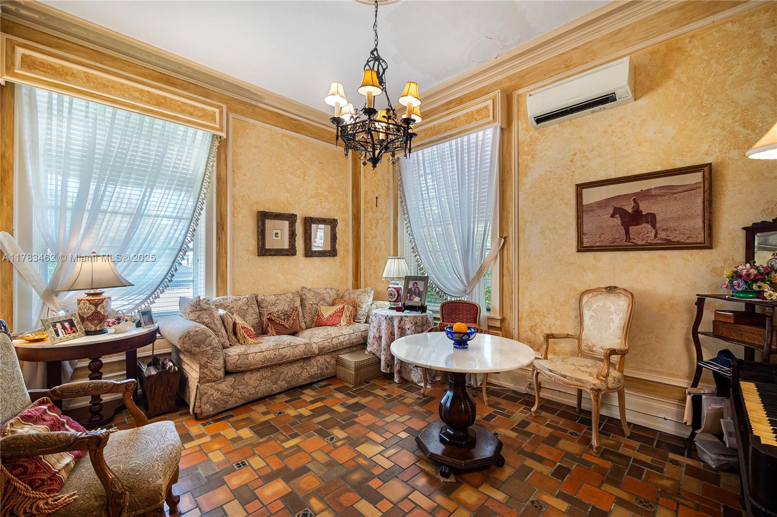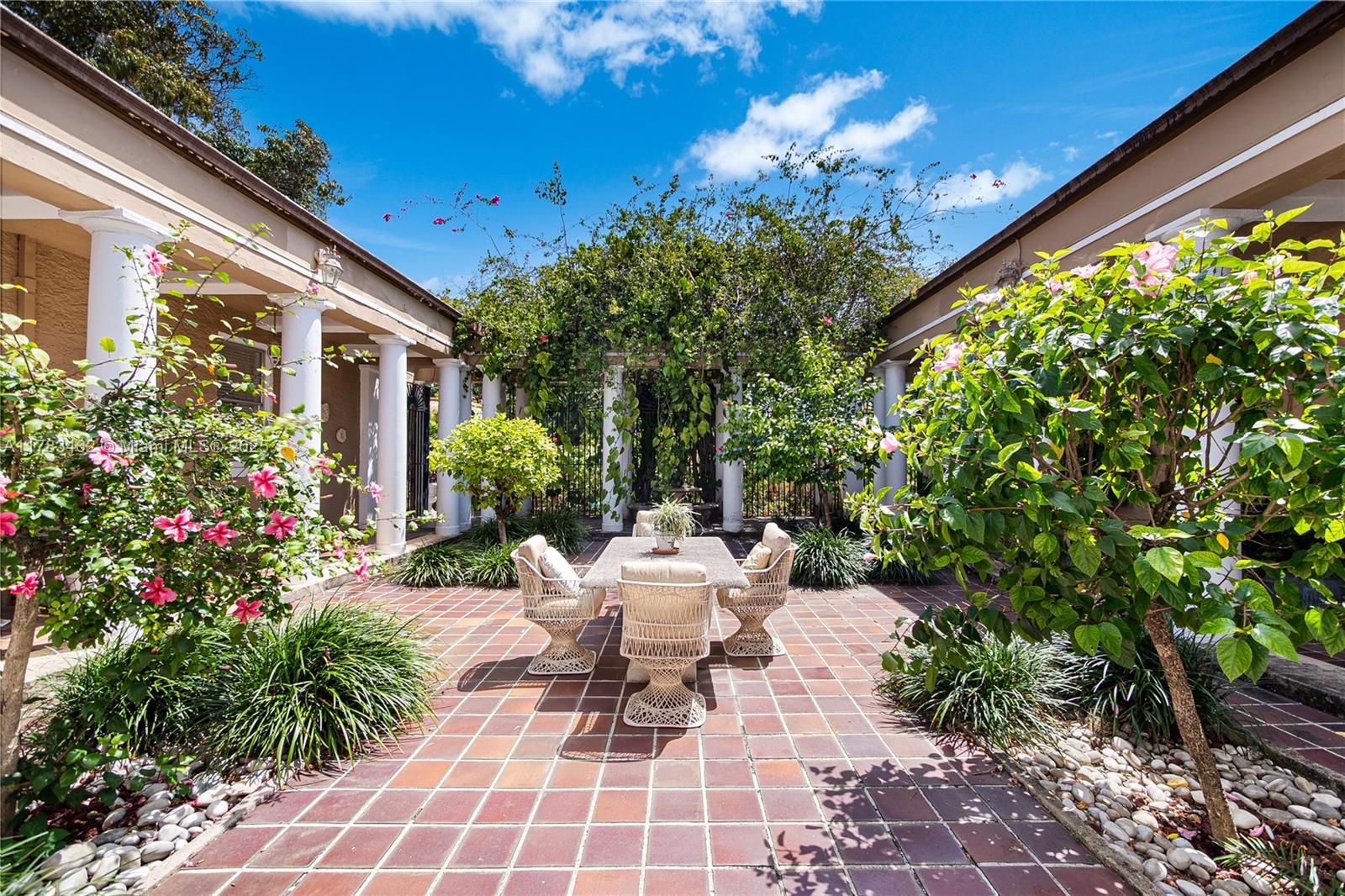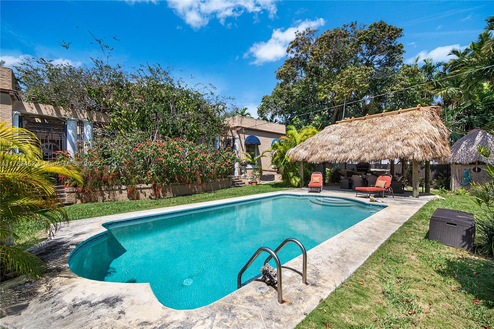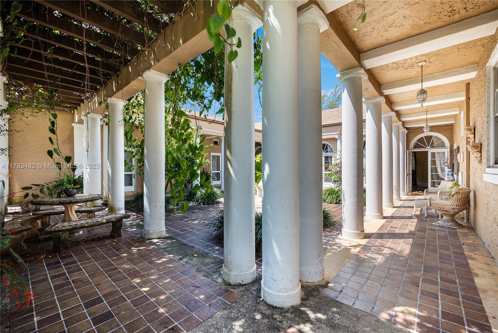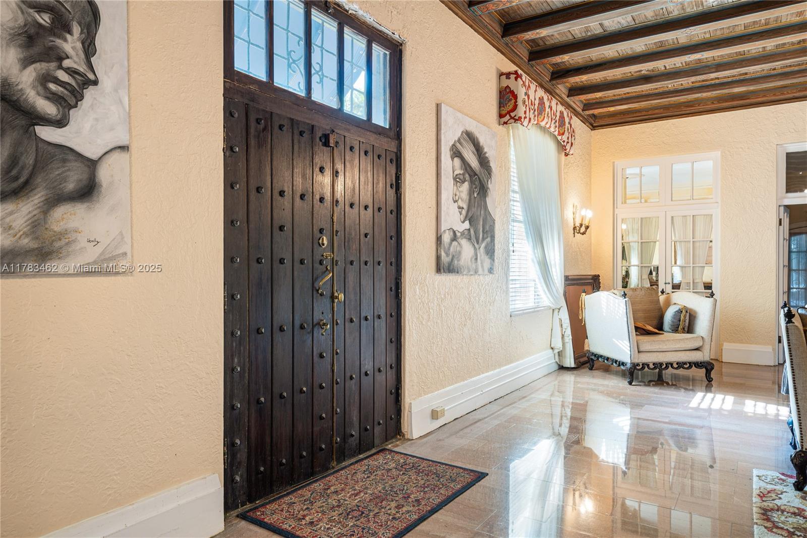 A rare opportunity to own a historic Italian villa designed in 1921 by famed architect August Geiger. Set on a 38,000+ SF lot, this one-of-a-kind home spans over 7,000 SF and was originally commissioned to replicate a grand Pompeiian villa. Surrounded by lush lawns and a large pool area. The elegant single-story layout features soaring 12' ceilings, expansive rooms, and impeccably preserved original details. The iconic 16-point Star of Macedonia welcomes you inside, where you’ll find 4 spacious bedrooms, an oversized primary suite, a dramatic great room, formal dining and a large adjoined garden room/loggia salon. A generous kitchen flows into a separate secondary kitchen/prep area, seamlessly connected to private staff quarters. A refined composition of history and architectural heritage. Cash Only.