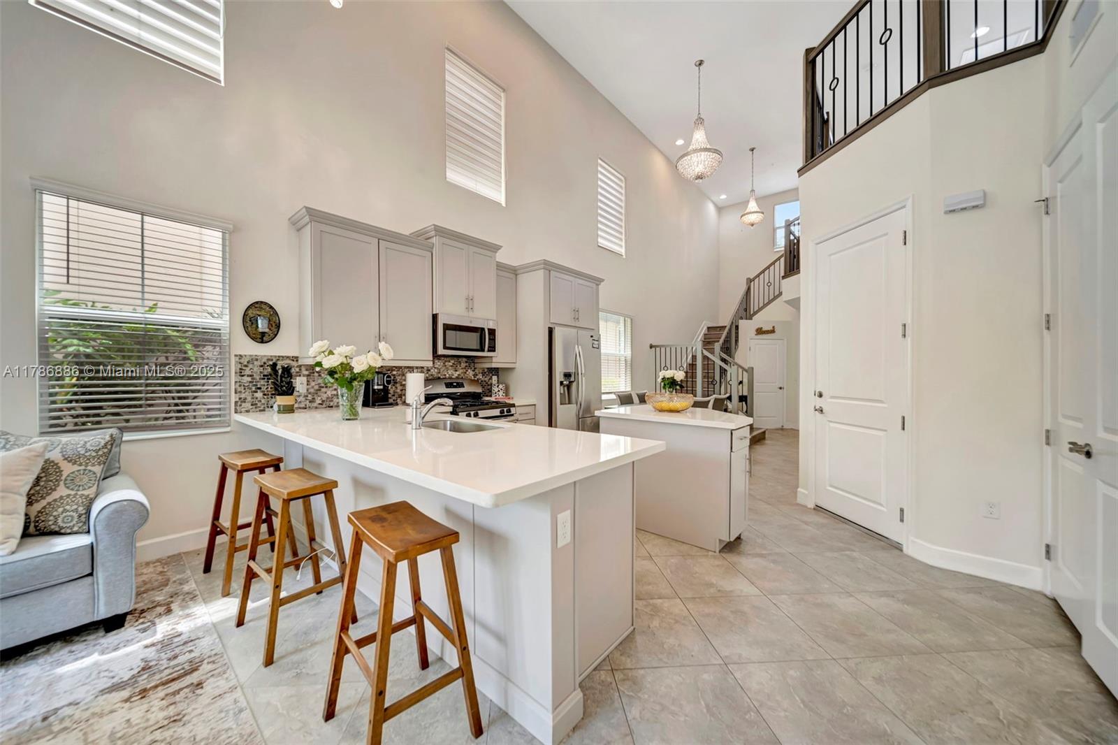 For the discerning buyer -- built in 2020 -- your very own dream home in Sunrise's prestigious 'Artesia' by Minto! This 4-story corner townhome is packed with personality & perfect for big families or guests galore—en suite bedrooms on 3 floors, w/two on the 2nd. One full bedroom & bathroom plus half-bath downstairs. Three living spaces (yes, THREE!), including a dreamy screened-in 4th-floor patio made for sunsets! (Plus a private backyard patio for relaxing). TONS of closet space! Tile floors downstairs, wood laminate upstairs. Two-car garage, gas stove & water heater for energy efficiency. Resort-style luxury with 3 pools, hot tub, saunas, walking paths, indoor basketball court, gym, 3 tennis/pickleball courts, conference room, small ballroom, billiard room and 24/7 guard-gated security.