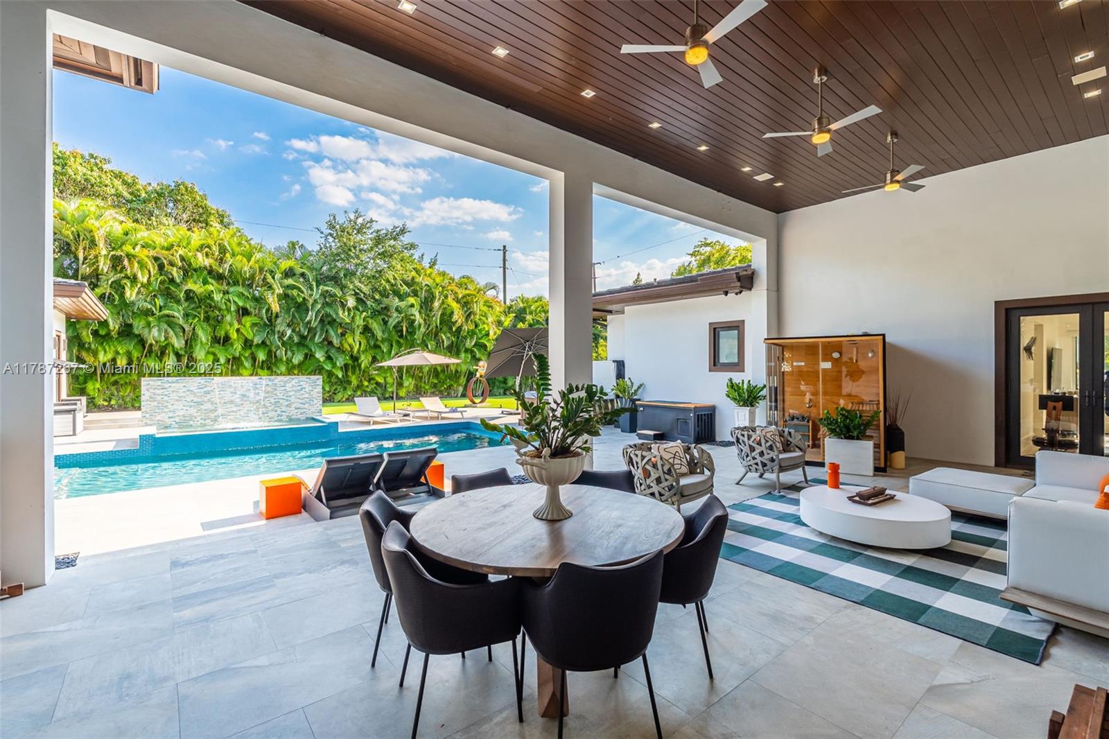 Sleek and stunning 6BD/7BA smart home on a lush 30,000 sf lot in prime Kendall. Soaring ceilings, porcelain floors, and a sunlit open layout set the tone. Gourmet kitchen with striking wine wall, cork accent, and private bar. Lavish primary suite with spa bath and dual closets. Four junior suites with luxe en-suites. Resort-style backyard with 40x16 heated pool, jacuzzi, fountains, turf throughout, pergola, putting green, and summer kitchen with live moss wall. Full bath attached to outdoor structure. Casement impact windows, solar panels with credits, 3-car garage, whole-house generator. Near elite schools, The Falls and Briar Bay Park.