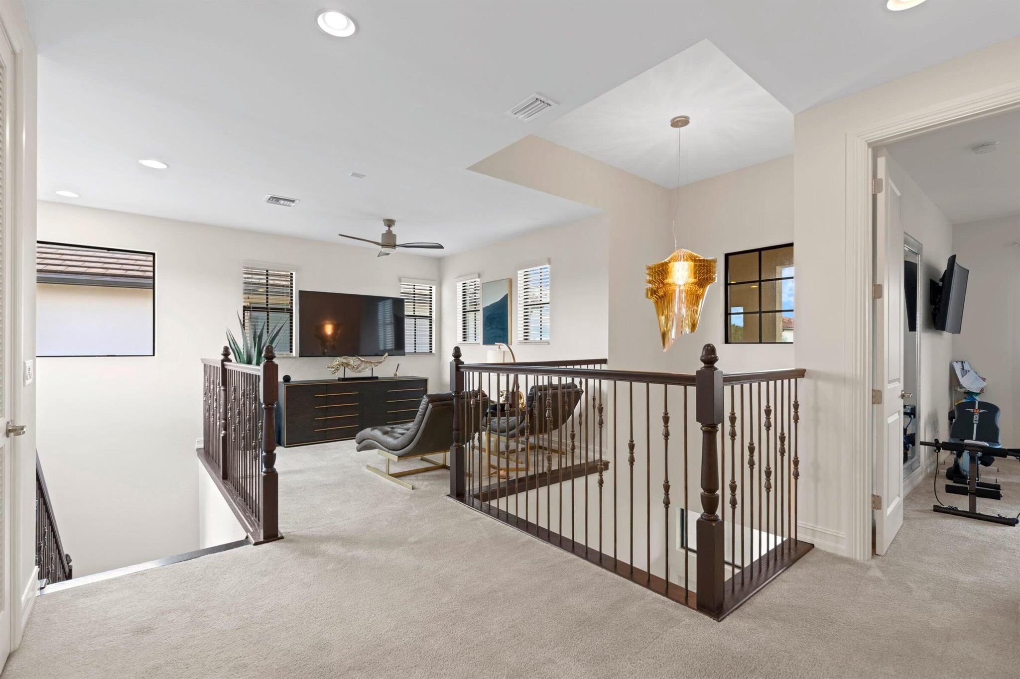 • Интерьер:ClosetCabinetry, DiningArea, SeparateFormalDiningRoom, DualSinks, EntranceFoyer, EatInKitchen, FrenchDoorsAtriumDoors, GardenTubRomanTub, HighCeilings, CustomMirrors, Pantry, PullDownAtticStairs, SplitBedrooms, SeparateShower, WalkInClosets, Attic, Loft