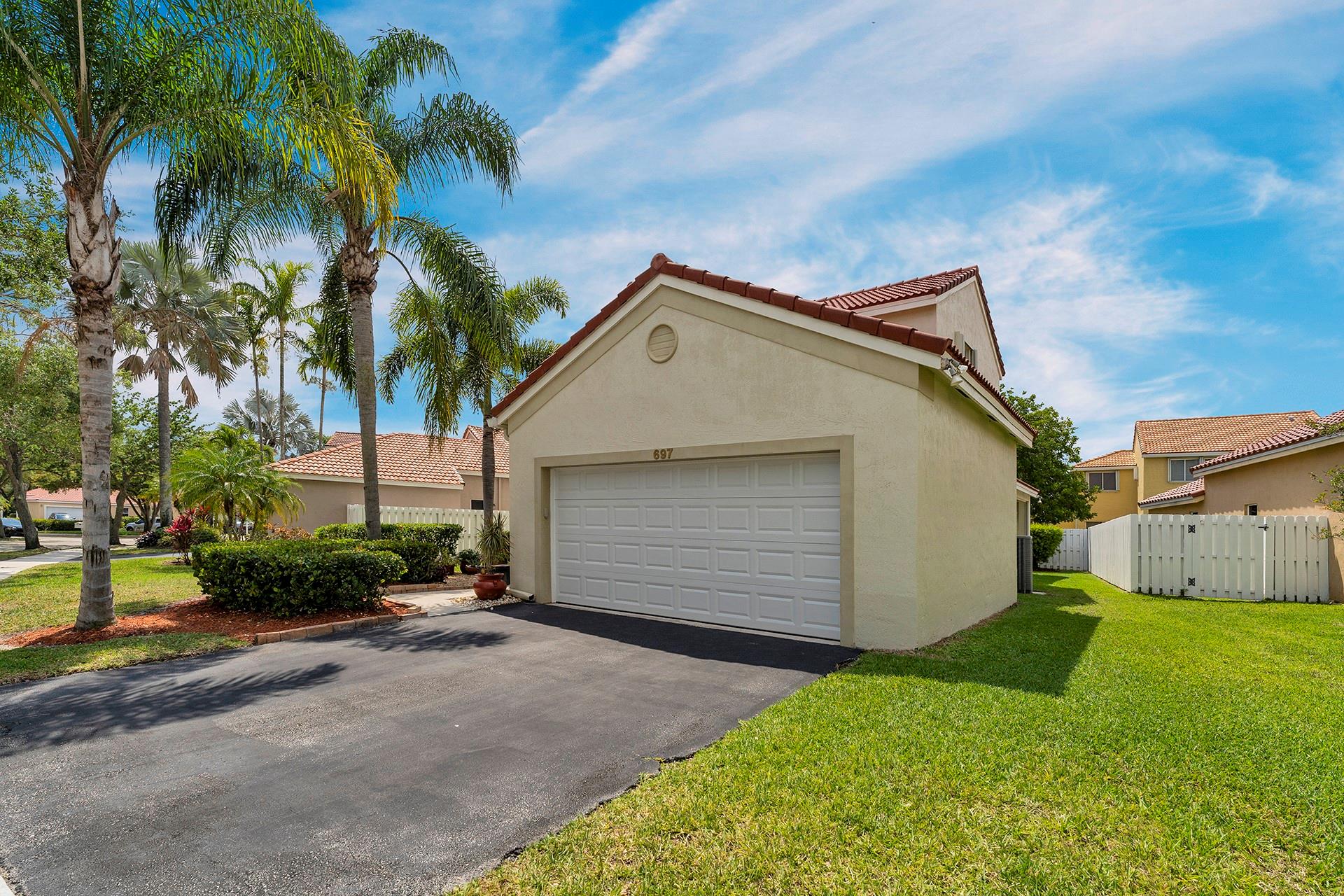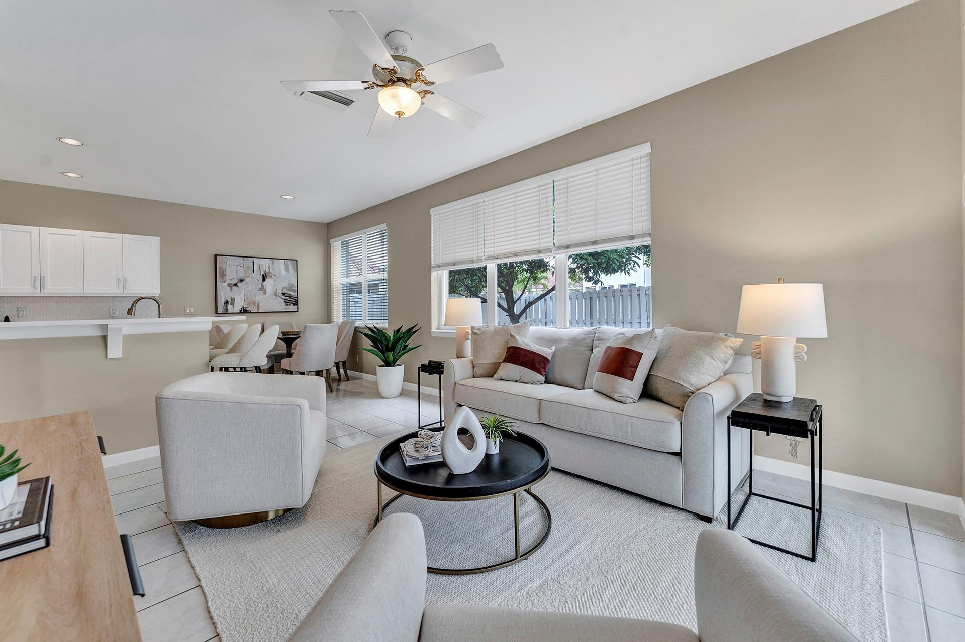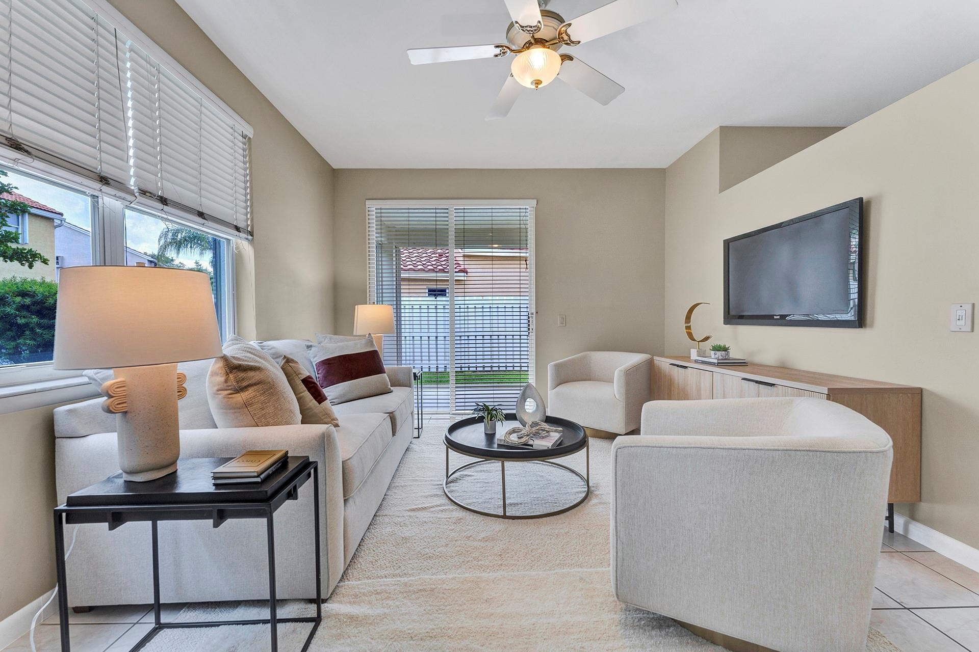 Welcome to the gated community of The Falls! This beautiful 4 bedroom 2.5 bath home is ready for you! Beautifully updated kitchen features quartz counters, white cabinets, designer tile backsplash, & it opens up to the family room! Primary bedroom on the 1st floor features patio access, walk in closet, & en suite bath with separate tub and shower! 2nd bath upstairs features 2 vanities for convenience! Neutral tile in main areas downstairs! AC replaced 2020. Roof replaced 2015! Accordion shutters on all windows for protection. Cozy backyard w covered patio is perfect for entertaining! Complete w your own mango tree! Community features pool, volley ball courts, play ground, basket ball courts, & 24 hr guard gated entry. Low HOA! Easy access to 75! Priced right! Don't miss this opportunity!