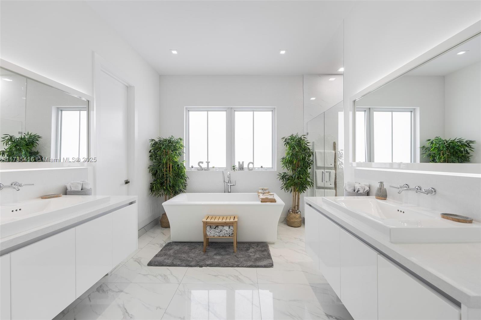 Modern and move-in ready, this spectacular 4-bedroom, 5.5-bath home blends luxury and functionality in the sought-after gated community of Oasis Park Square. Built in 2017, the first floor offers a guest suite, wine cellar, expansive family room, and open-concept living and dining areas anchored by a state-of-the-art kitchen with quartz countertops and stainless steel appliances. Upstairs features an impressive primary suite with grand walk-in closet, two additional en-suite bedrooms, a laundry room, and office space. The rooftop terrace is designed to entertain—complete with summer kitchen, full bath, and storage. Additional features include ceramic floors, Spanish tiles, and custom window treatments. Walking distance to City Place and just minutes from Miami International Airport.