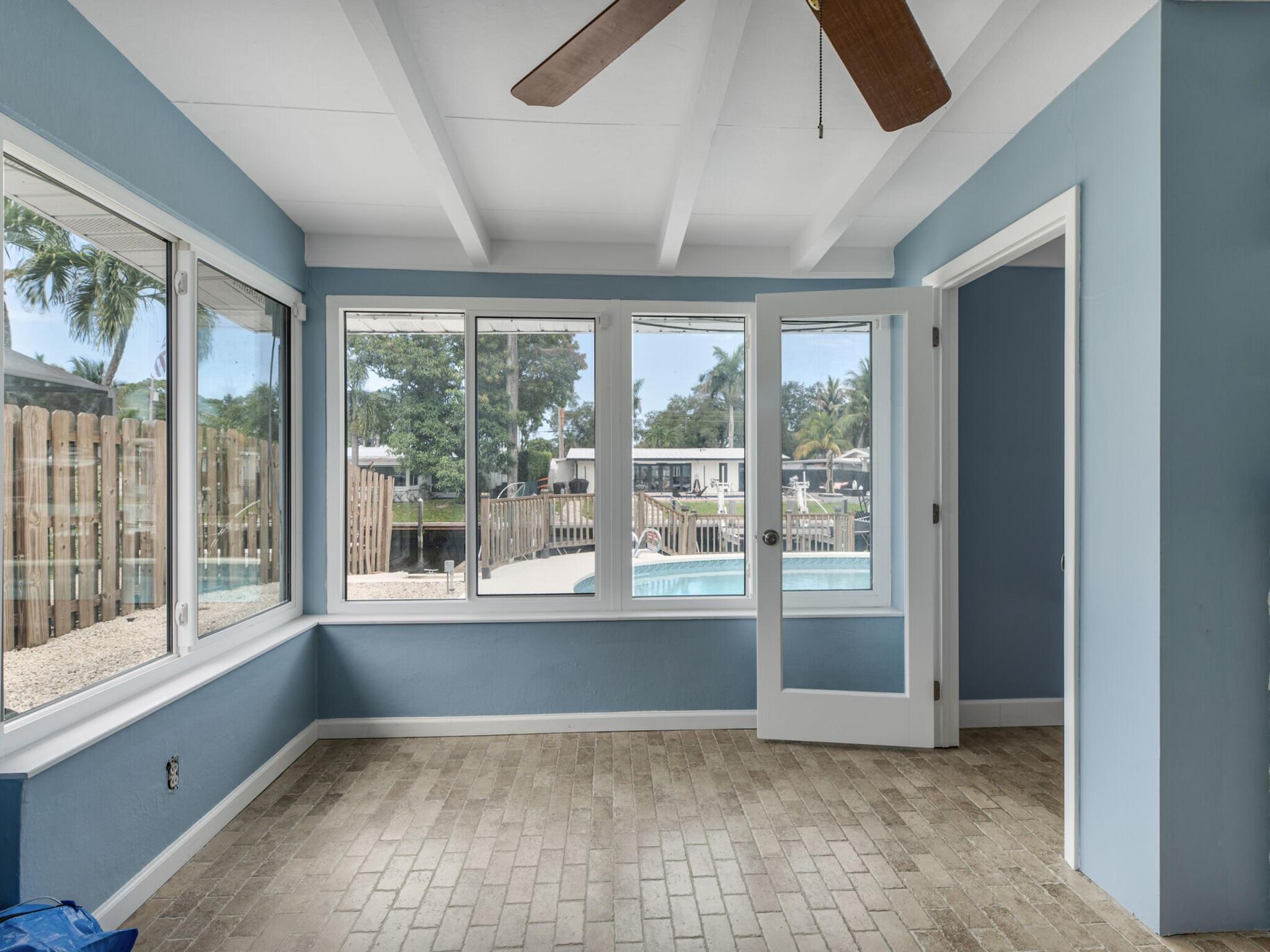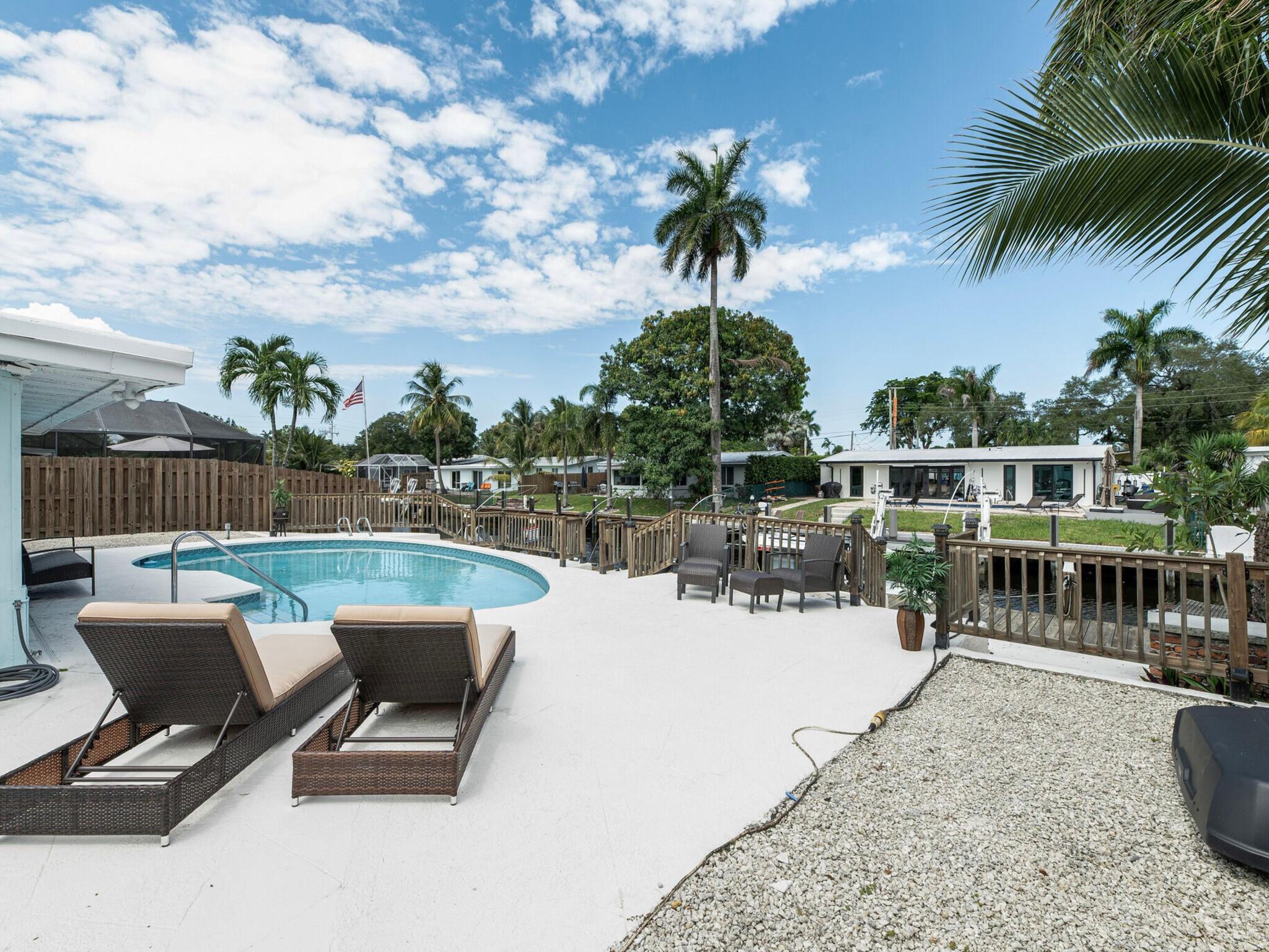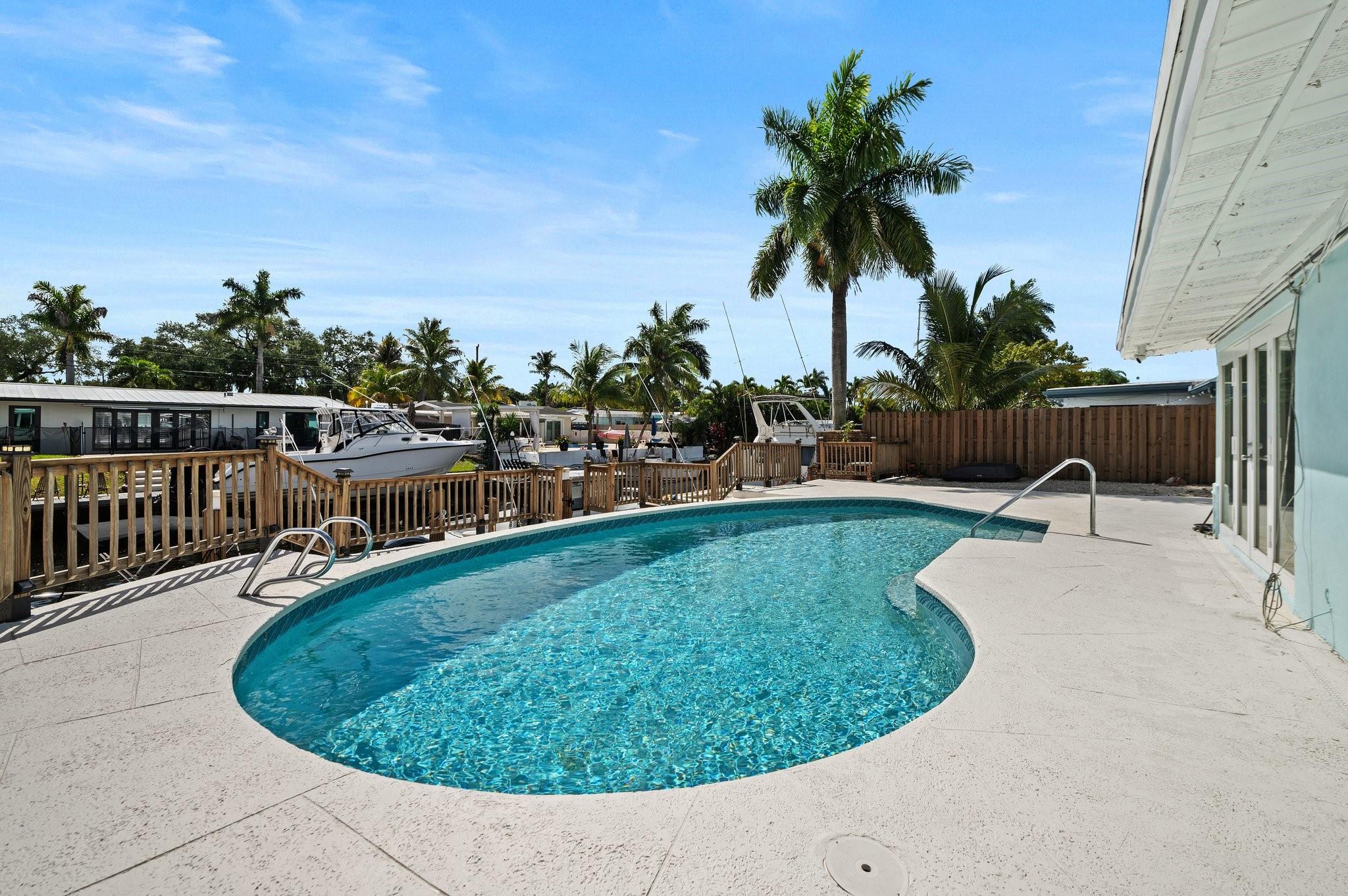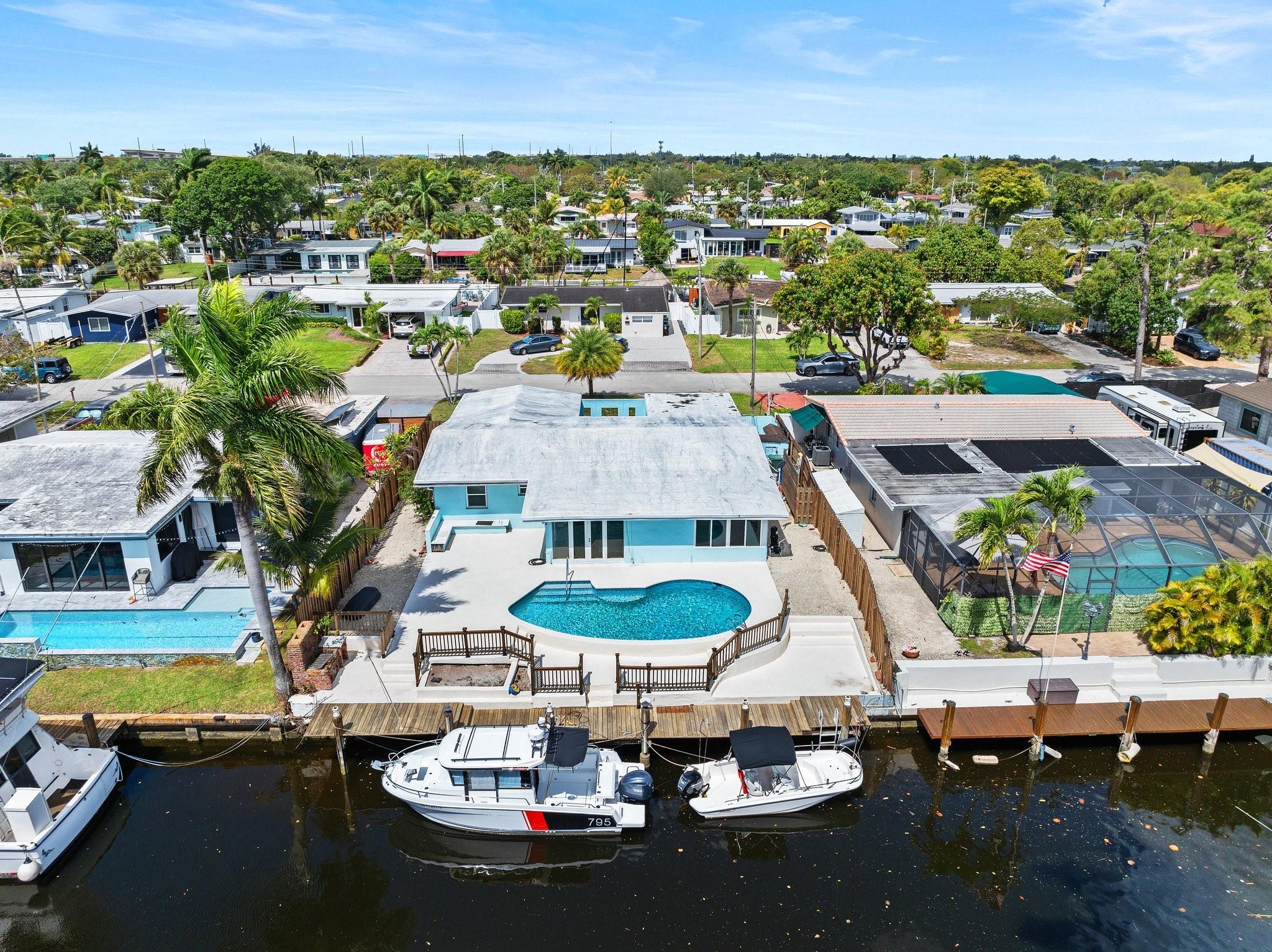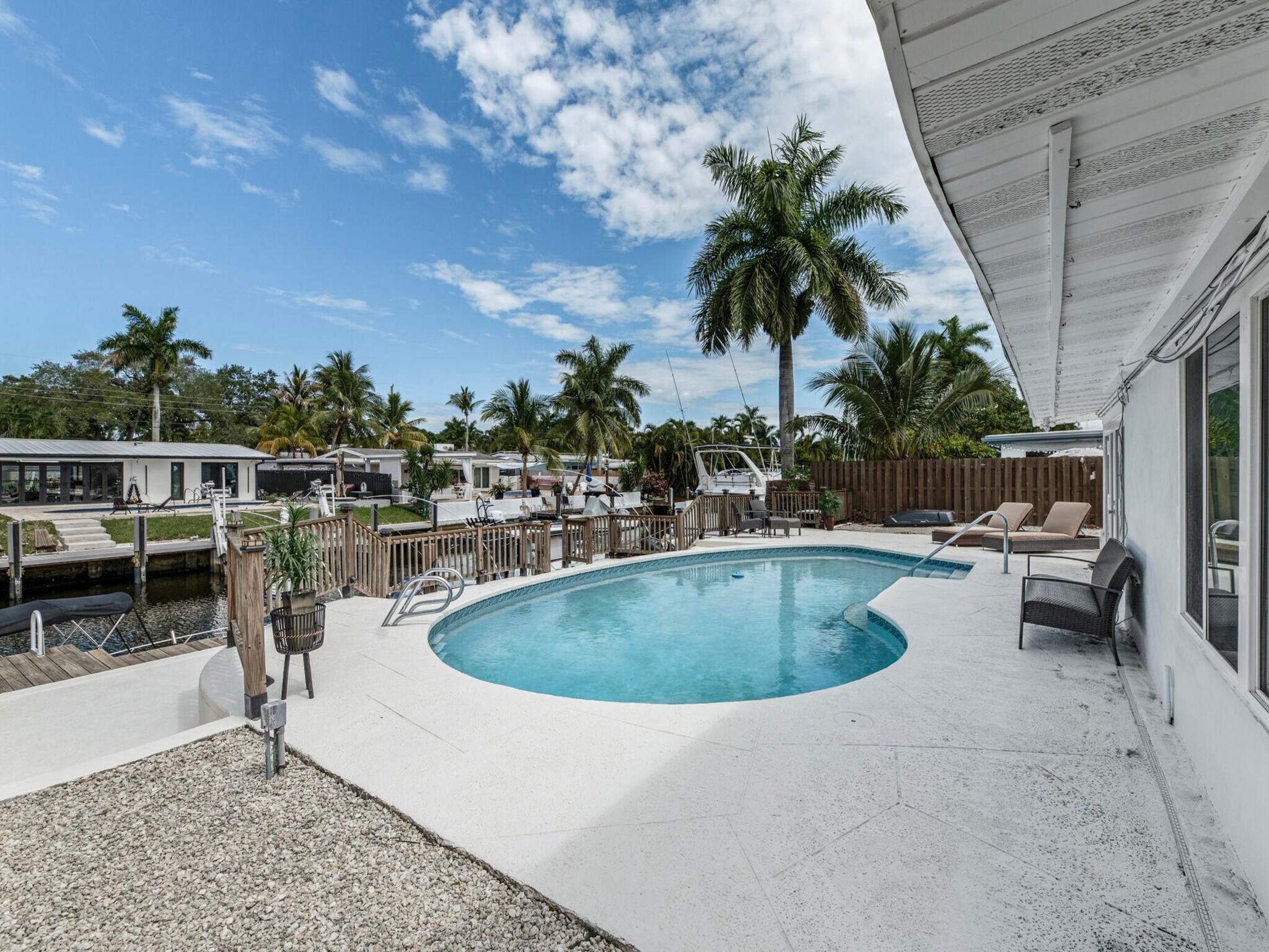Seller offering substantial roof replacement credit to buyer at closing! Beautifully updated home offers 65' of ocean-access waterfront with no fixed bridges, perfect for water lovers. Inside you'll find a sleek kitchen with high-end appliances—including a built-in Miele island oven—open to dining & living areas. With 3 bedrooms plus a den/office with water views, 2 bathrooms, a Florida room, dedicated laundry room, & garage, the layout is both functional & flexible. Enjoy peace of mind with impact windows & doors throughout. Outdoors, relax on the expansive patio & take a dip in the refreshing pool. Dock at your private dock & embrace the Lauderdale Isles boating lifestyle—a welcoming neighborhood with a community boat ramp.