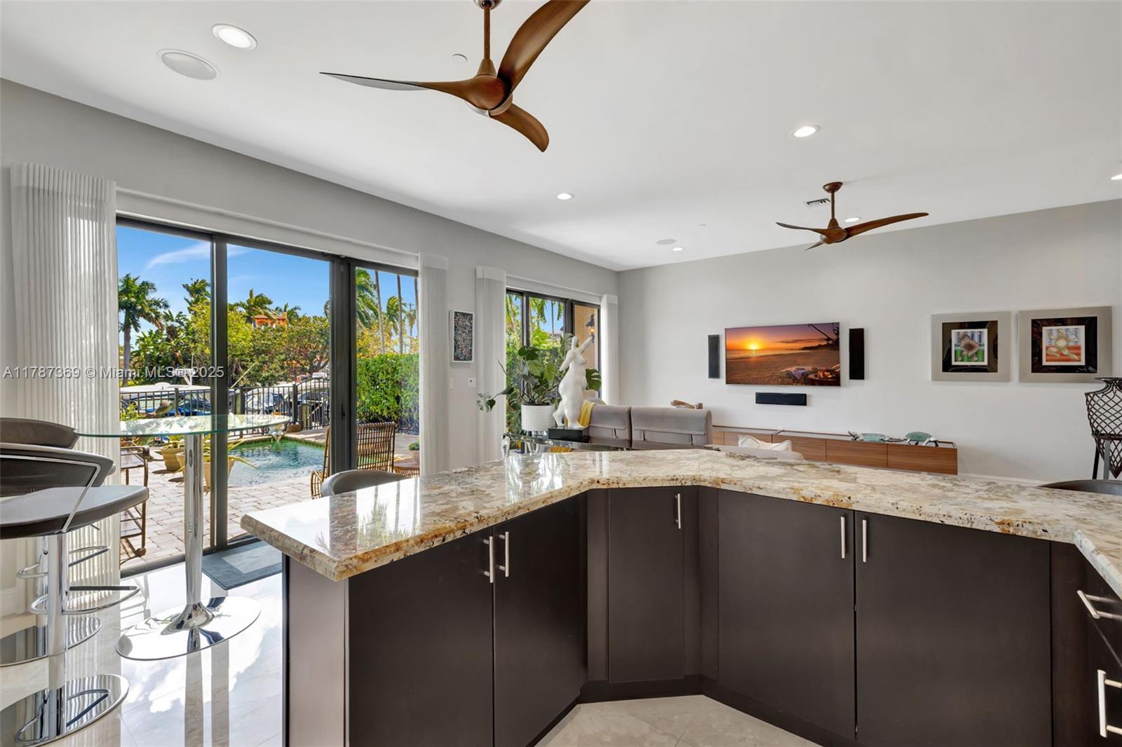 The ultimate Gated residence w/assigned boat slip w/approx 30'- 32' dock & private pool on Lake Santa Barbara. Direct Ocean access, no fixed bridges, 15 min to Hillsboro Inlet. All impact windows & doors w/natural light, gourmet kitchen w/eat-in area & oversized cook top island, high ceilings, marble & hardwood flrs. 1st flr: 2 car garage, 1/2 bath, large entertainment area w/office/den (could be 4th BR), patio walks out directly to private pool & dock. 2nd flr: Kitchen, dining & family rm & 1/2 bath, large laundry rm, balcony. 3rd Flr: Primary Suite, 2nd & 3rd BR w/hall bath. 4th level Amazing 360 degree 1,100 SF rooftop terrace w/breathtaking water/city views & add a jacuzzi/furniture/grill/tv. Elevator to 4th flr. Rooftop Deck w/warranty. 2 dogs <60 lb. Lease ok. Near Pompano Pier.