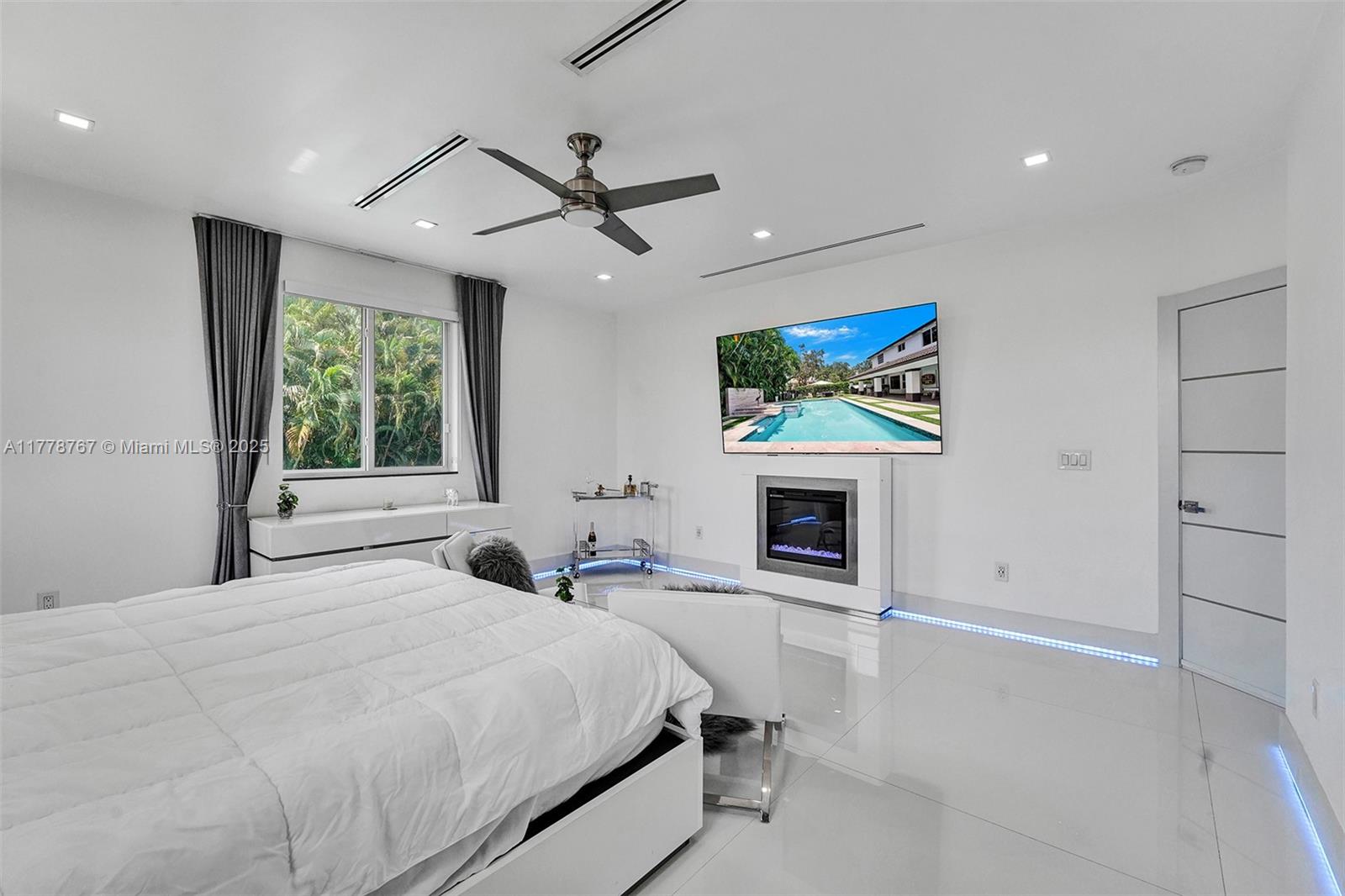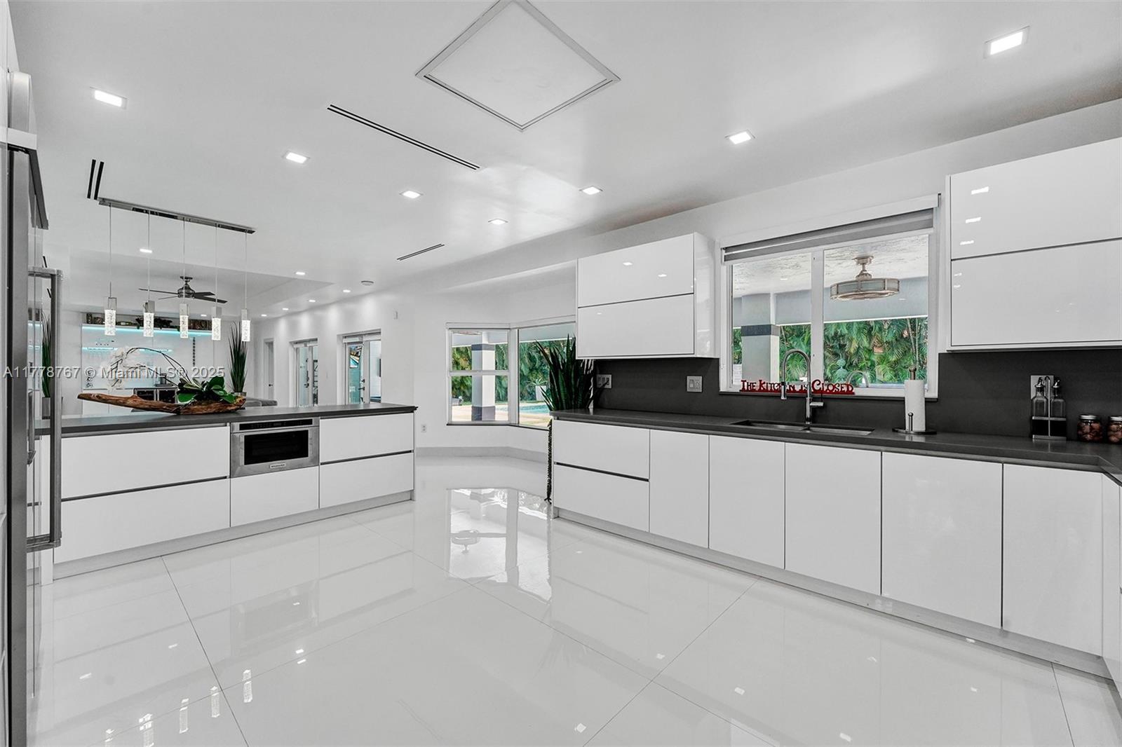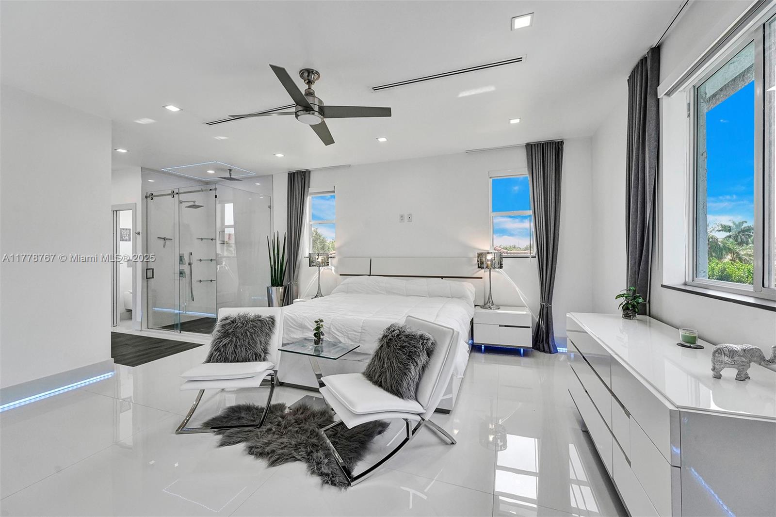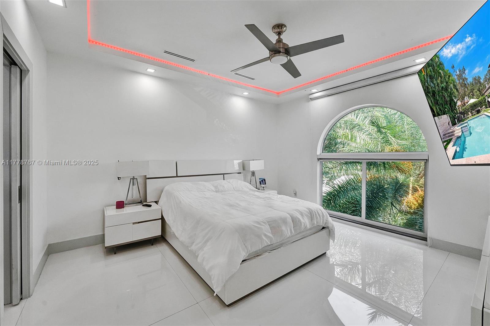 Beautiful and spacious Residence in the sought-after Royal Oaks in Miami Lakes. This home seats on a large corner lot with an extra large driveway. It offers three master bedrooms each with large walking closets, plus two more bedrooms, one of them on the first floor. The home has being completely redone with the finest materials and the most modern trends, recessed LED lights through out, impact glass doors and windows, two car garage with galvanized Steel Doors fold-up to open, kitchen with a regal and modern glass island, Italian cabinetry and top of the line appliances. The home is ideally for those looking for luxury living. It also has a large patio area with an oversized heated pool, jacuzzi, expansive cover terrace with full outdoor kitchen, perfect for gatherings.
