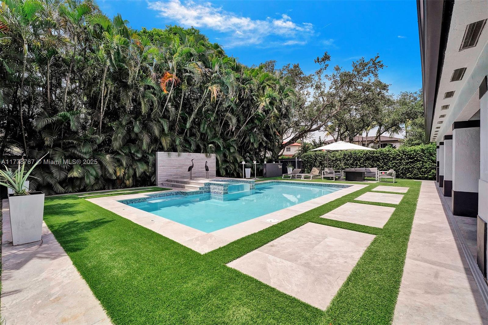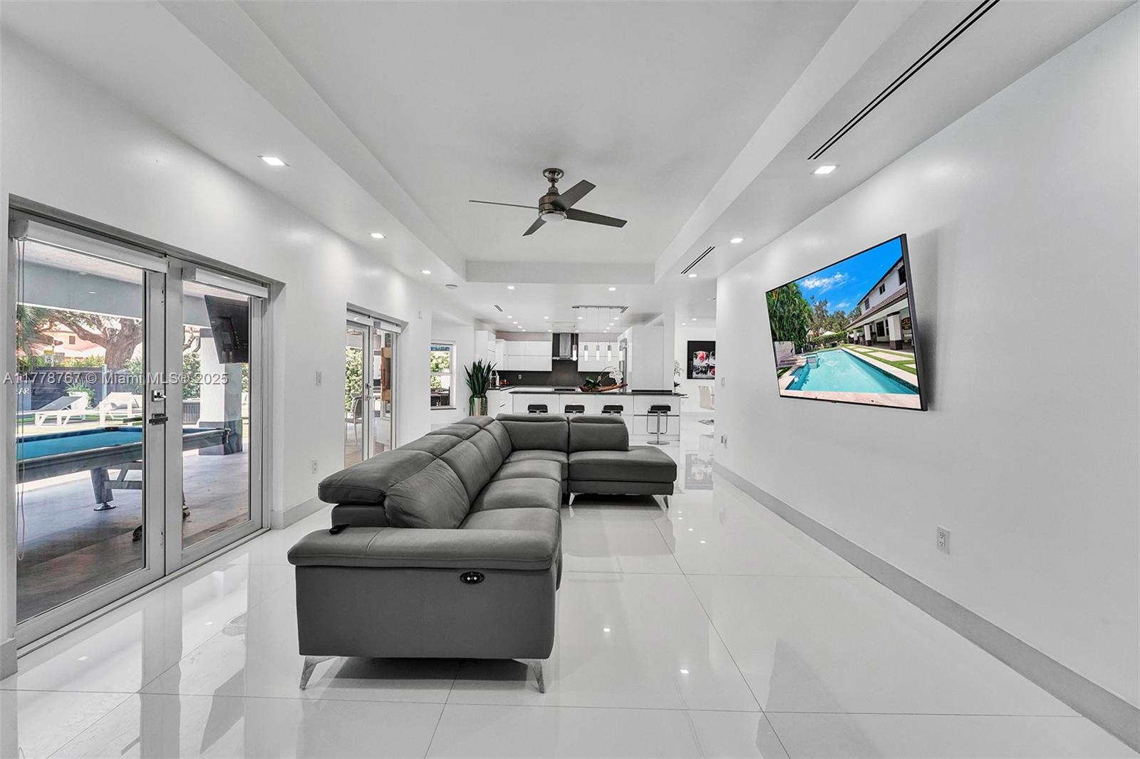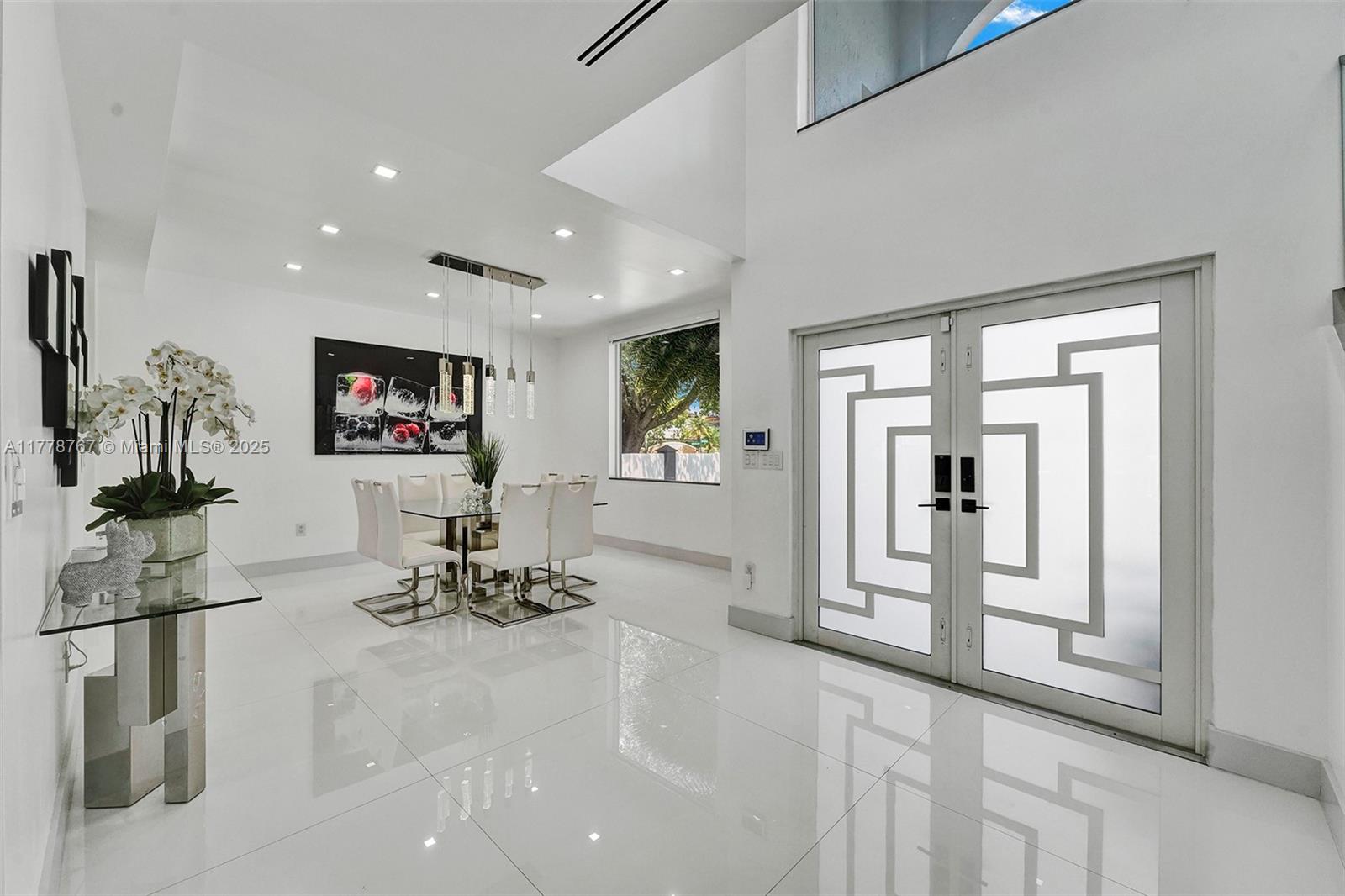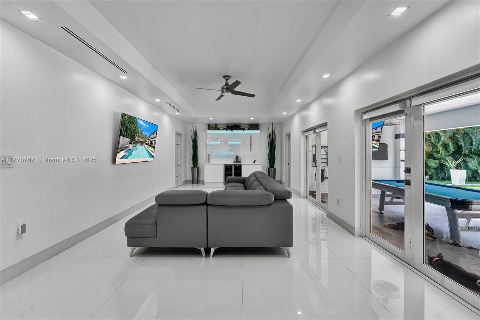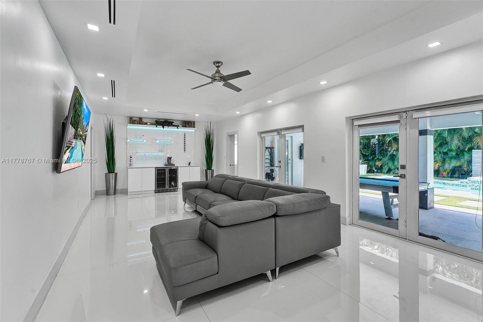 Beautiful and spacious Residence in the sought-after Royal Oaks in Miami Lakes. This home seats on a large corner lot with an extra large driveway. It offers three master bedrooms each with large walking closets, plus two more bedrooms, one of them on the first floor. The home has being completely redone with the finest materials and the most modern trends, recessed LED lights through out, impact glass doors and windows, two car garage with galvanized Steel Doors fold-up to open, kitchen with a regal and modern glass island, Italian cabinetry and top of the line appliances. The home is ideally for those looking for luxury living. It also has a large patio area with an oversized heated pool, jacuzzi, expansive cover terrace with full outdoor kitchen, perfect for gatherings.